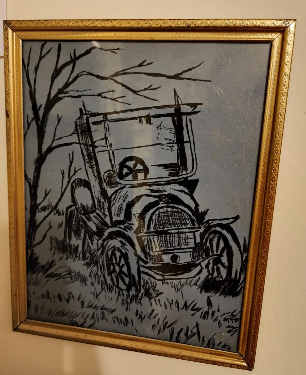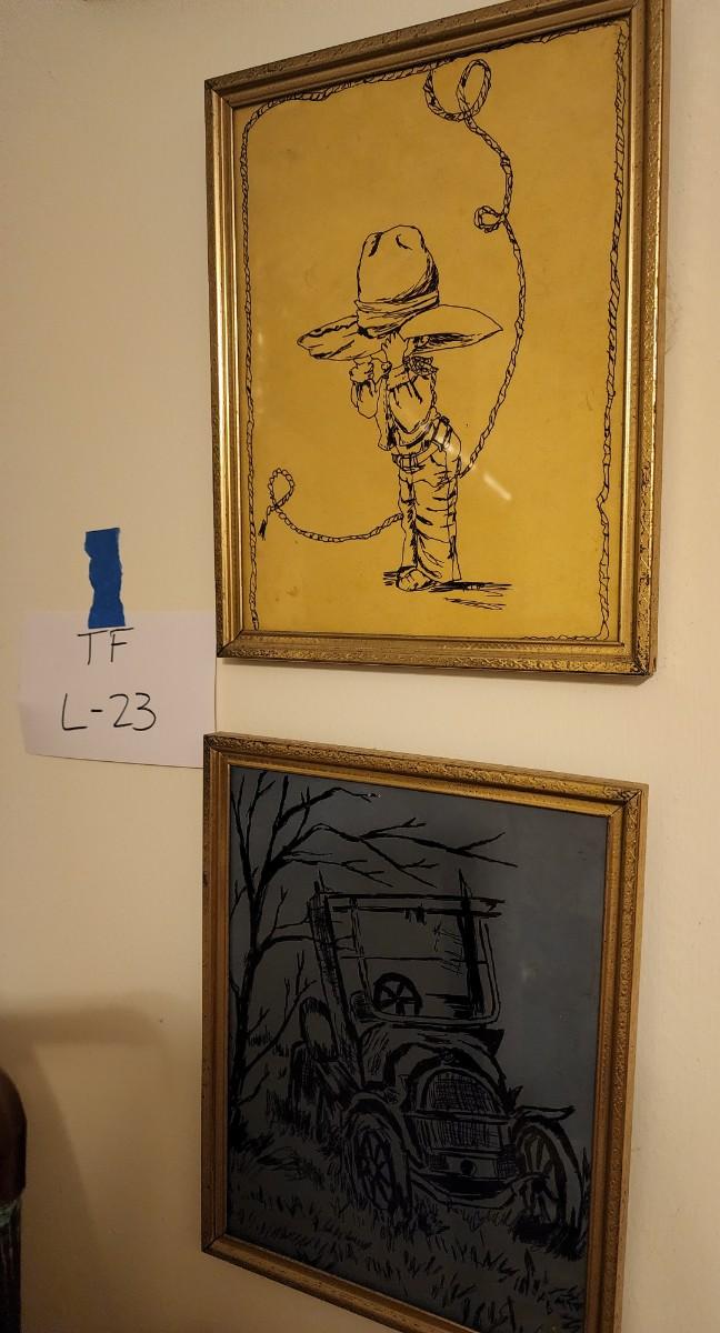 Two unique pictures, one of a car and one of a cowboy. 8x10