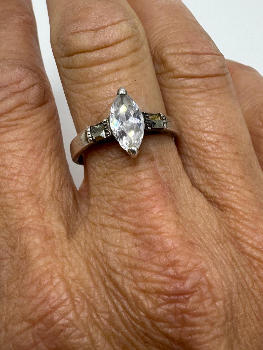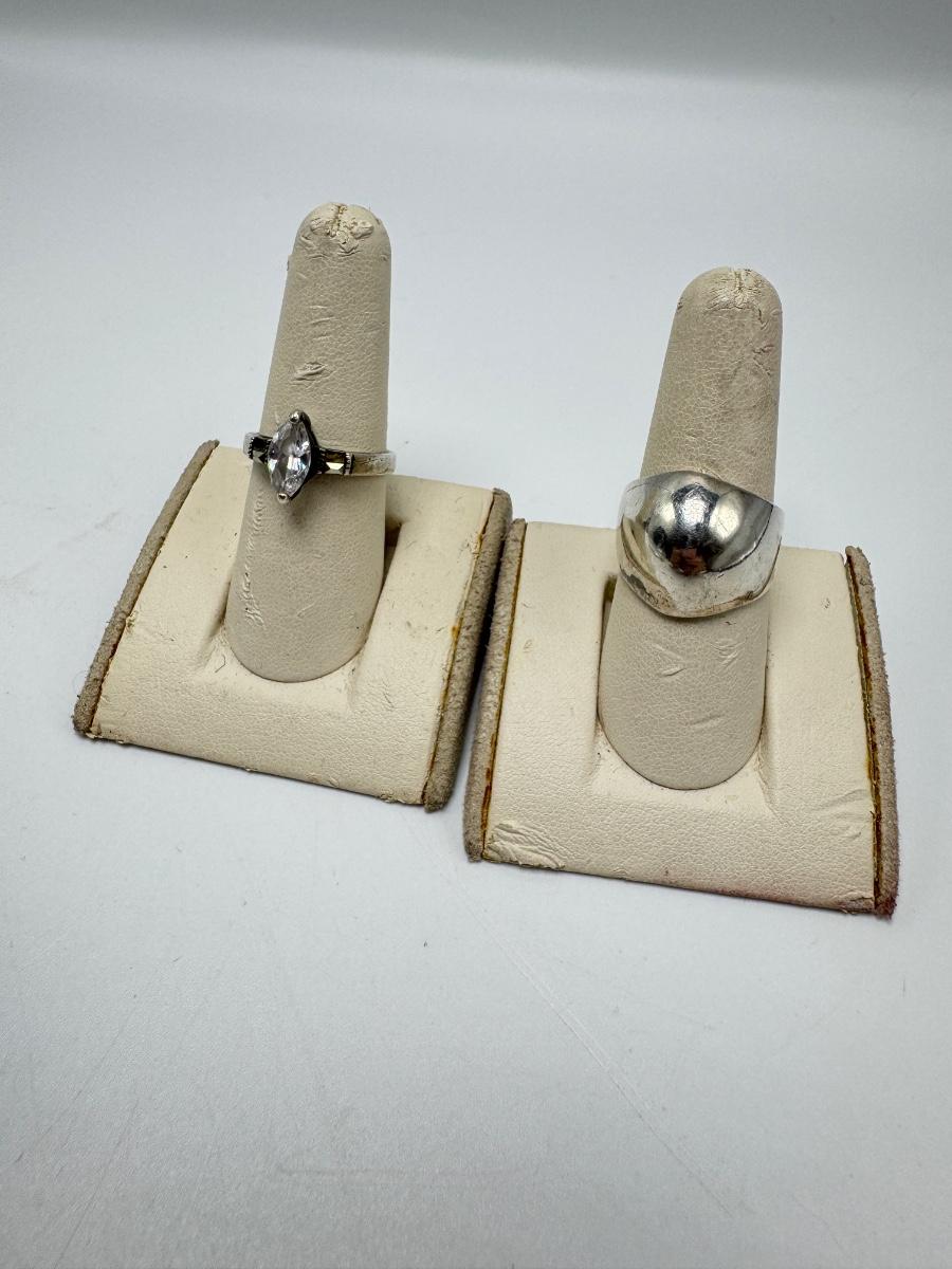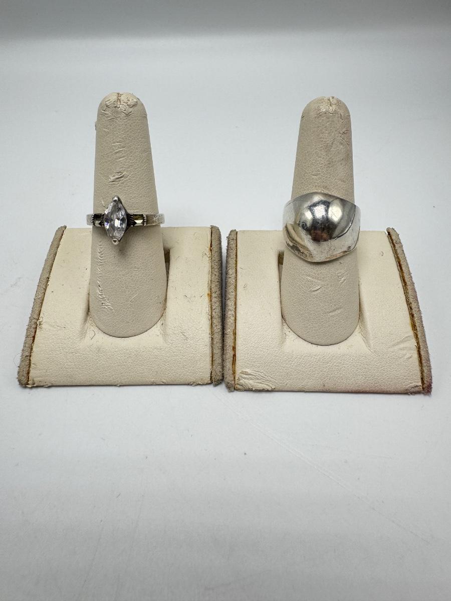 Two rings marked 925. One has brilliant cubic Zirconia stone and two unknown stones on either side. The second ring is marked 925 as well as other marks. See photo. Shipping available