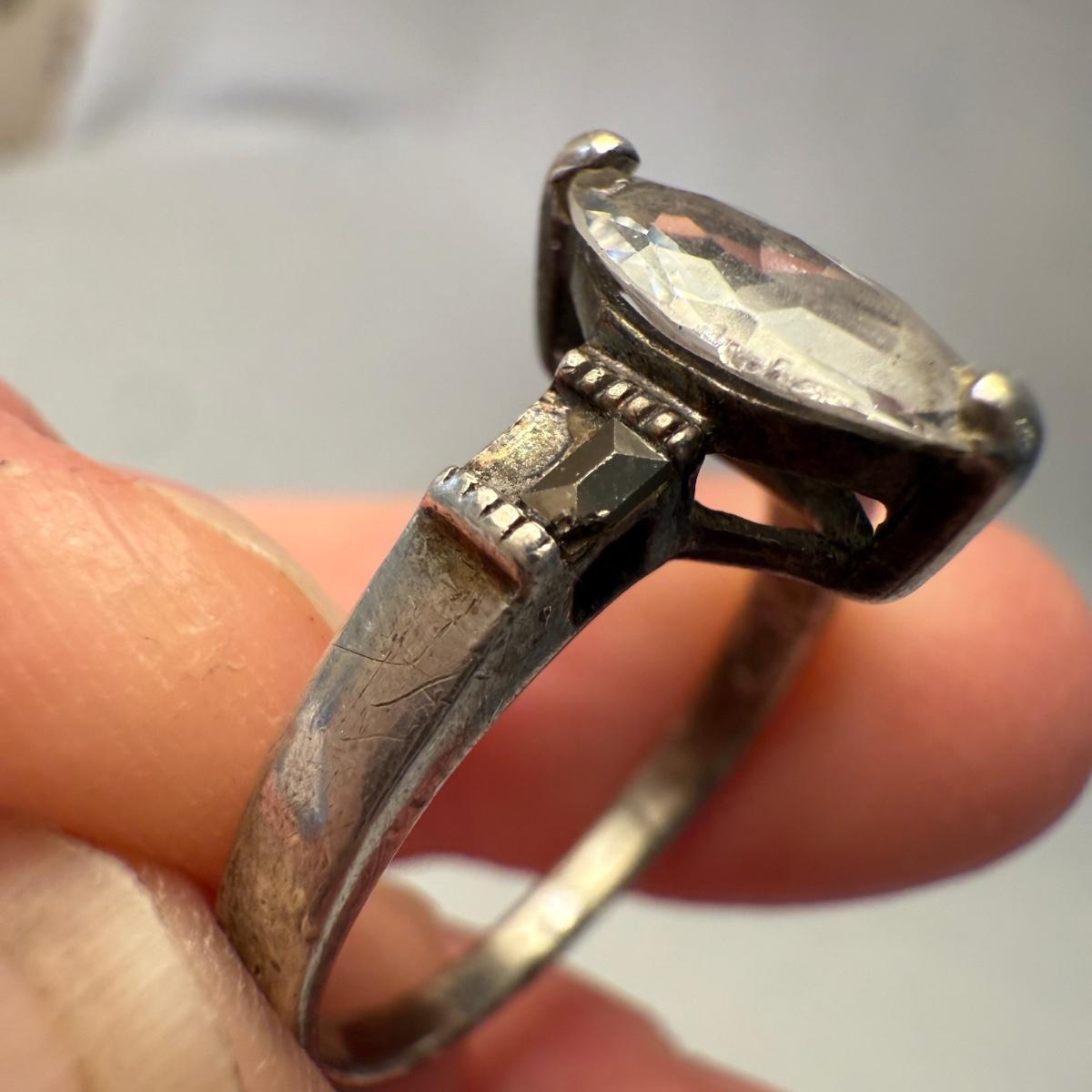 Two rings marked 925. One has brilliant cubic Zirconia stone and two unknown stones on either side. There are spots for four stones but only two are present and one is chipped. The second ring is marked 925 as well as other marks. See photos.