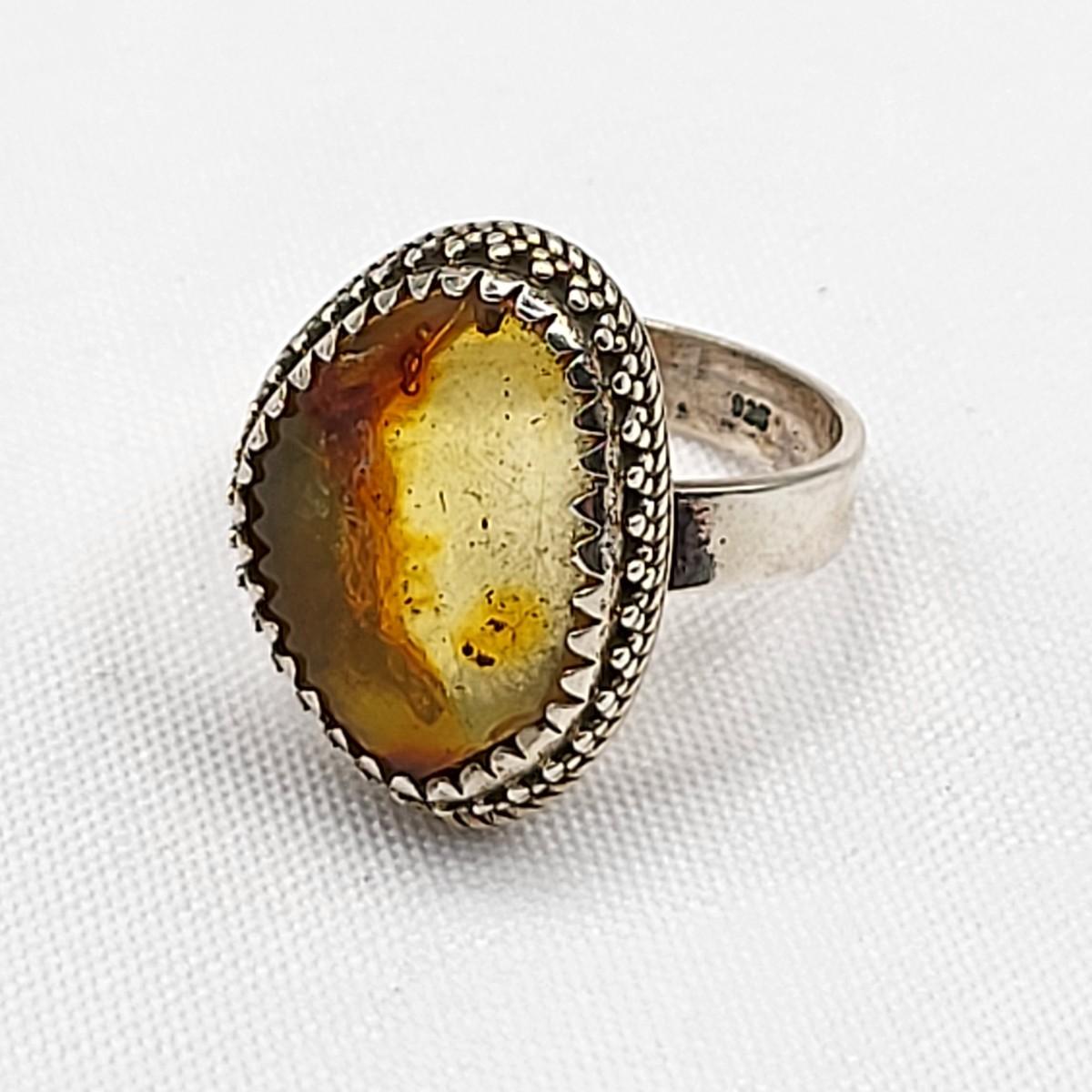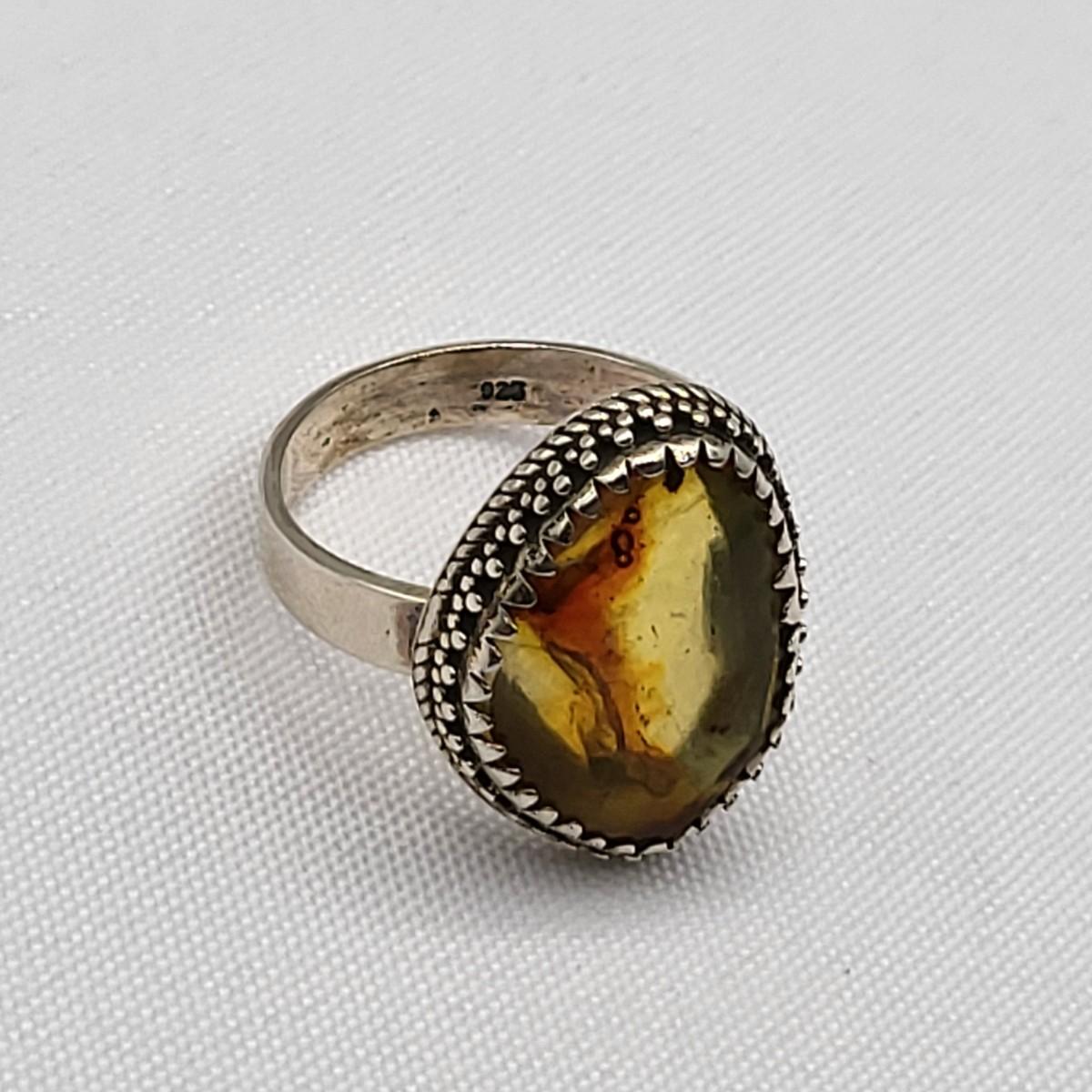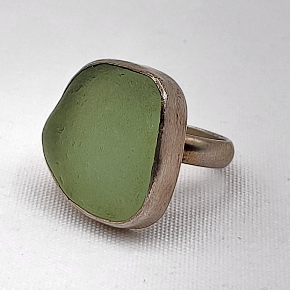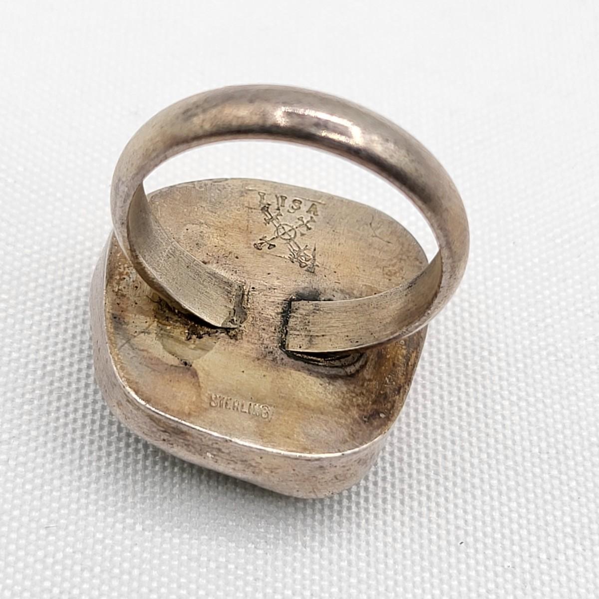 Aqua sea glass artisan signed handmade ring set in sterling silver, size 8. Stamped LISA sterling. Second ring is a unique but unknown material set decorative bezel setting, size 10. Total weight is 16.91 grams