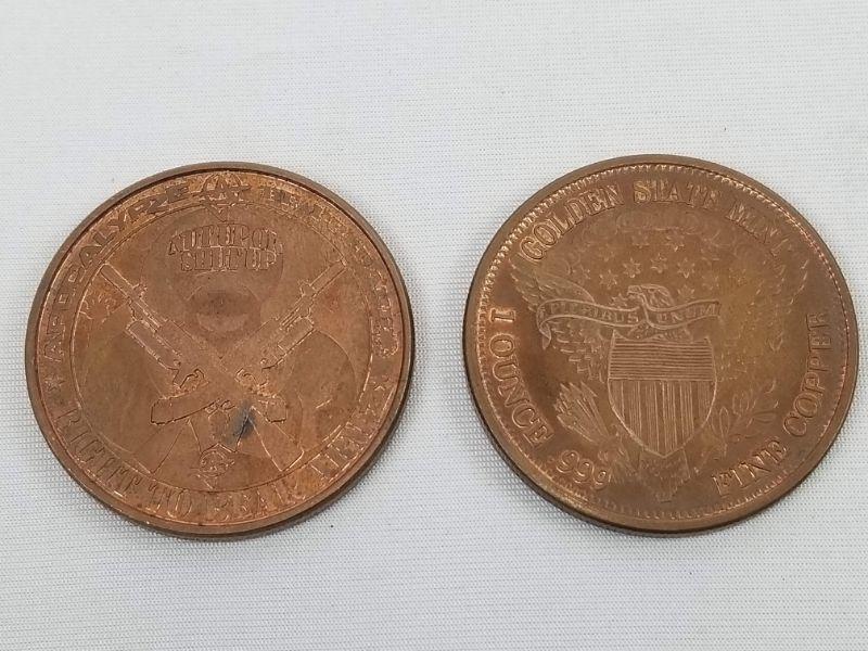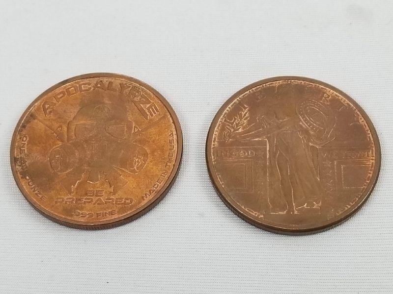 Two .999 Fine Copper Coins: Apocalypze/Right to Bear Arms, Liberty