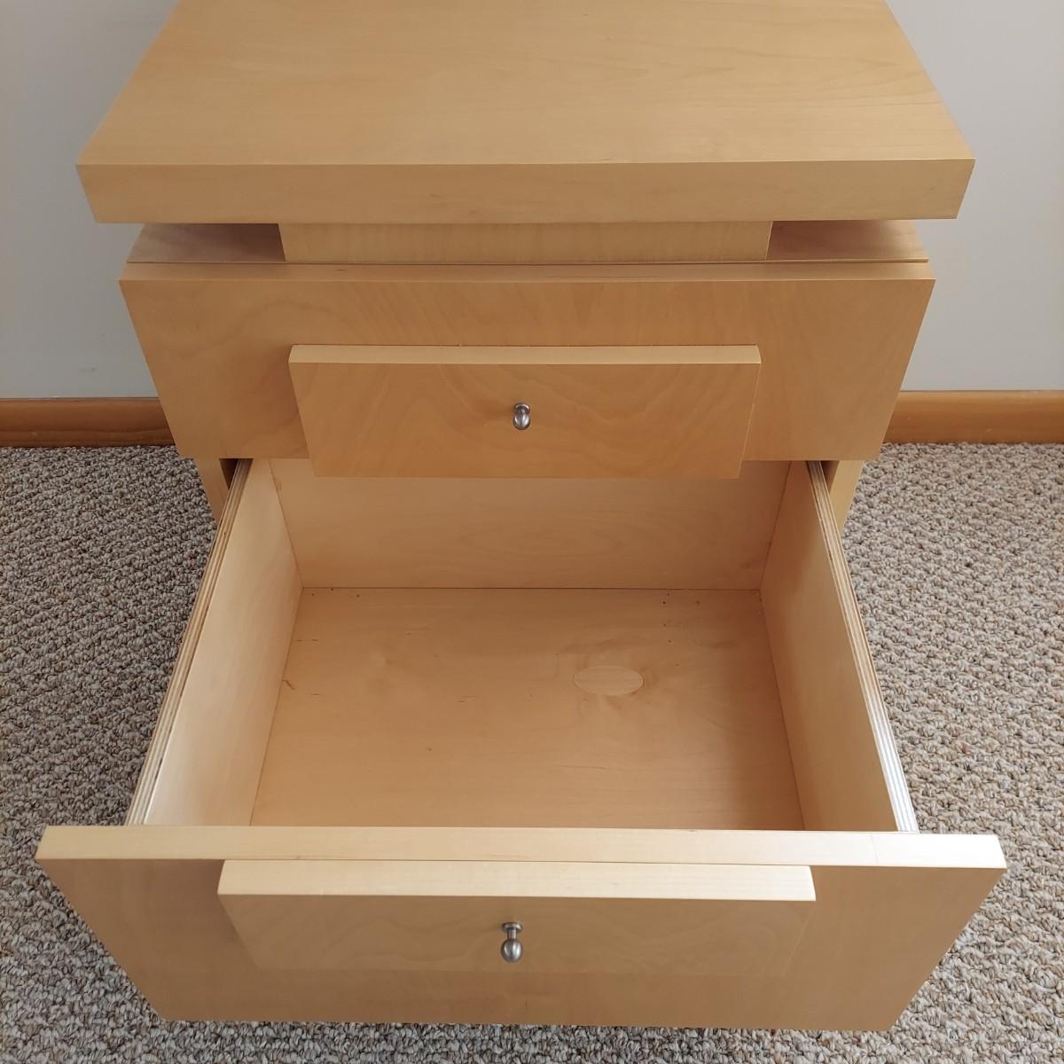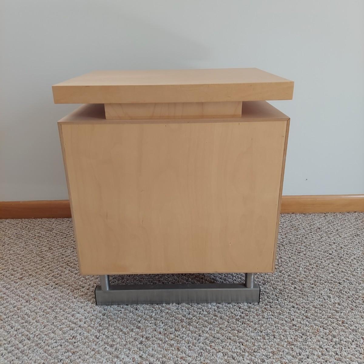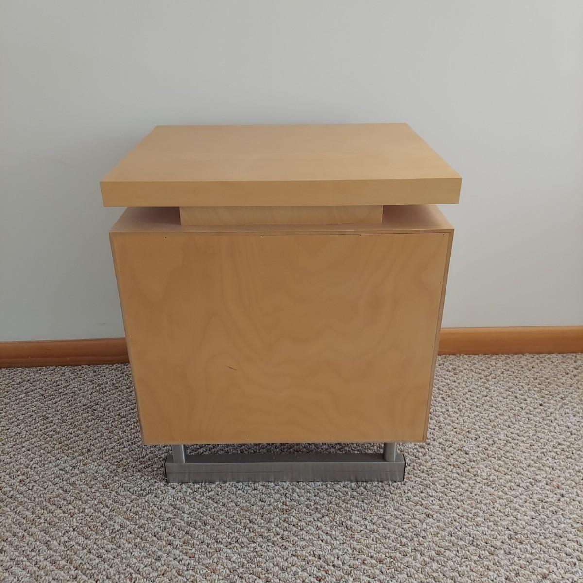 Two blonde wood night stands with metal legs that appear to be Adesso brand. Each table has two drawers. They each measure 20" x 17" x 24"H. These are sturdy and quite heavy. Local Pickup Only. Winning bidder must bring assistance to help move and load this item due to its weight and/or size.