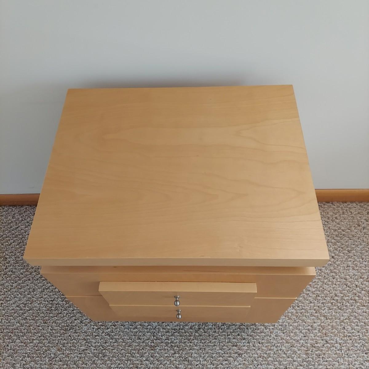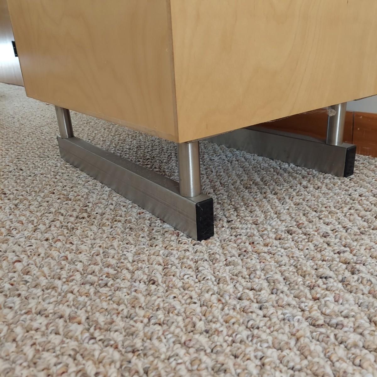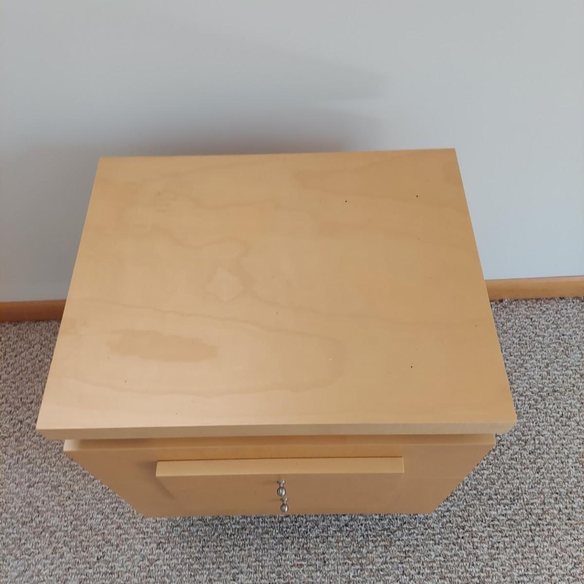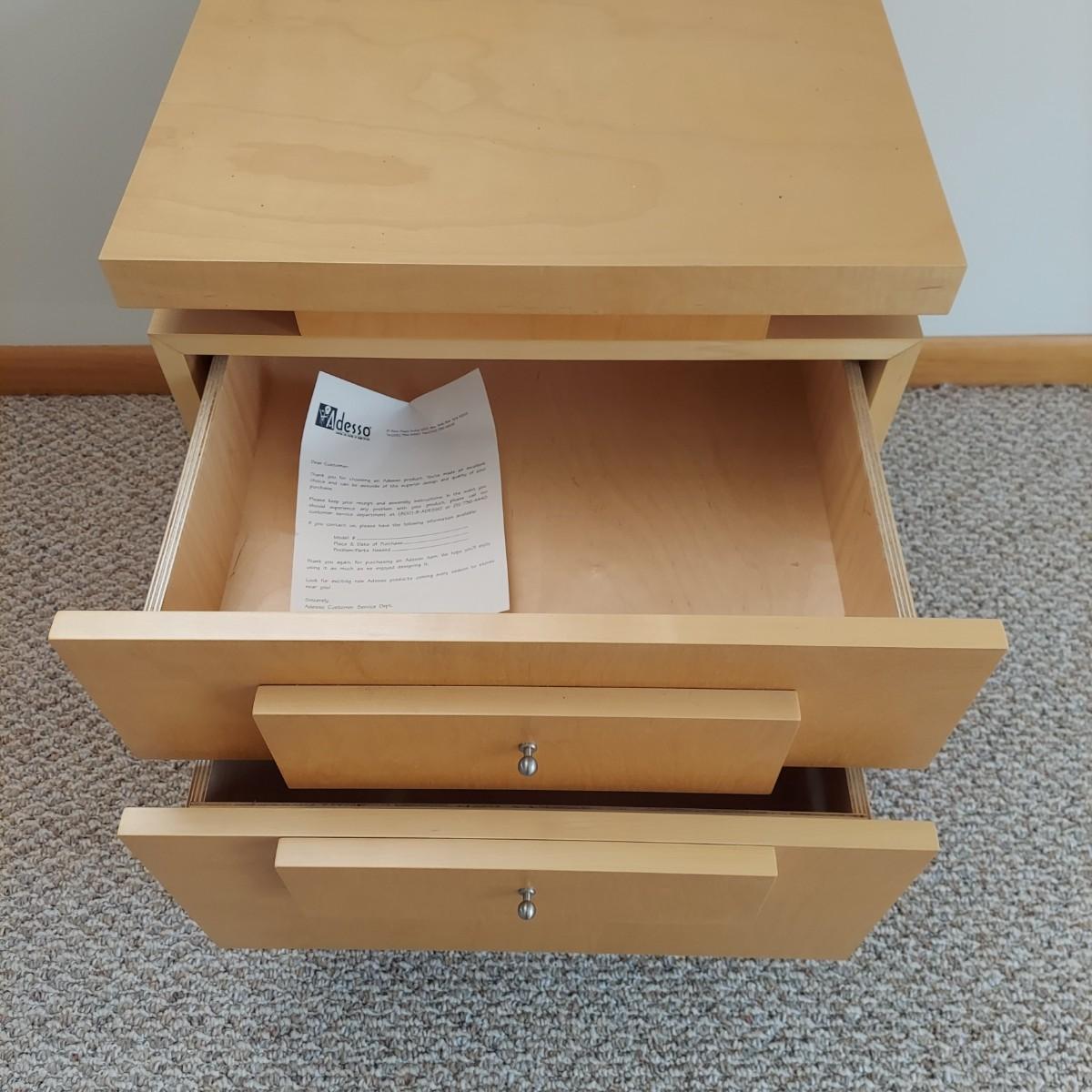 Two blonde wood night stands with metal legs that appear to be Adesso brand. Each table has two drawers. They each measure 20" x 17" x 24"H. These are sturdy and quite heavy. Local Pickup Only. Winning bidder must bring assistance to help move and load this item due to its weight and/or size.