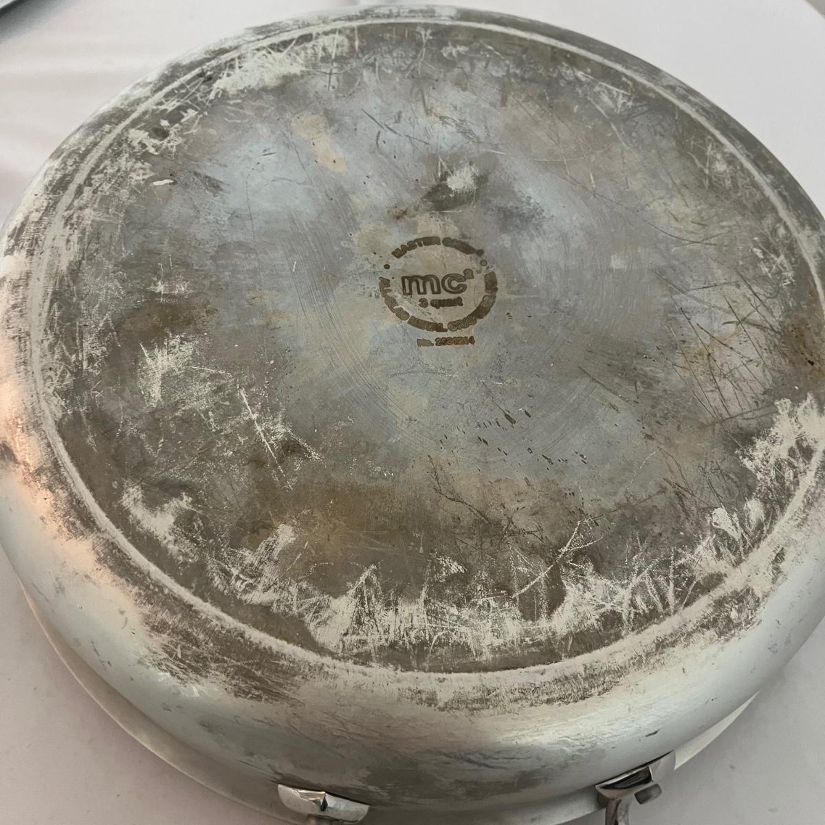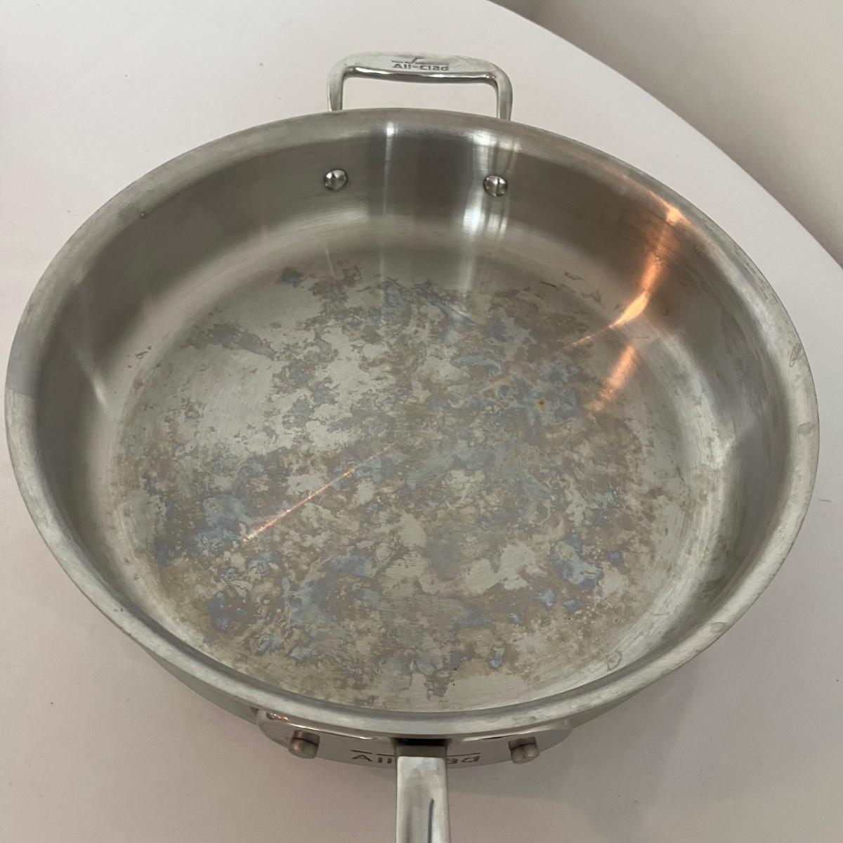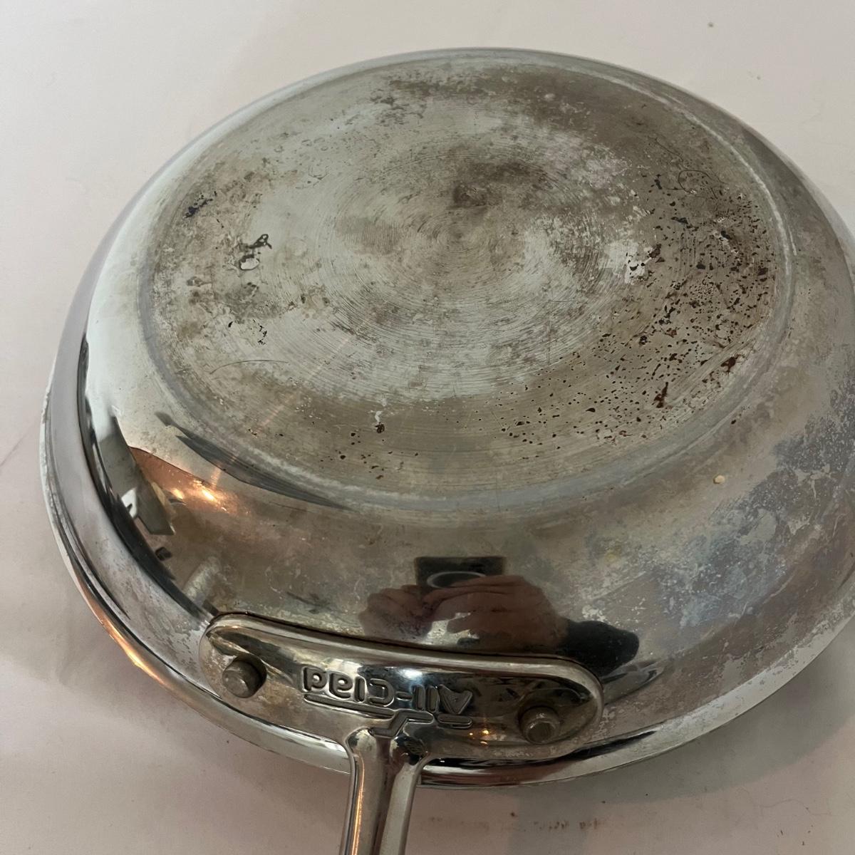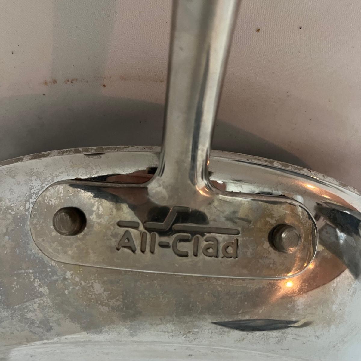 Lot includes one 10.5” All Clad frying pan with lid and an 11” All Clad frying pan with lid. Both pans show some wear, see pictures.