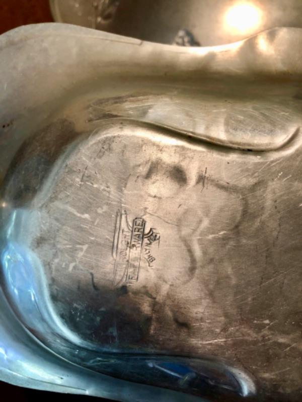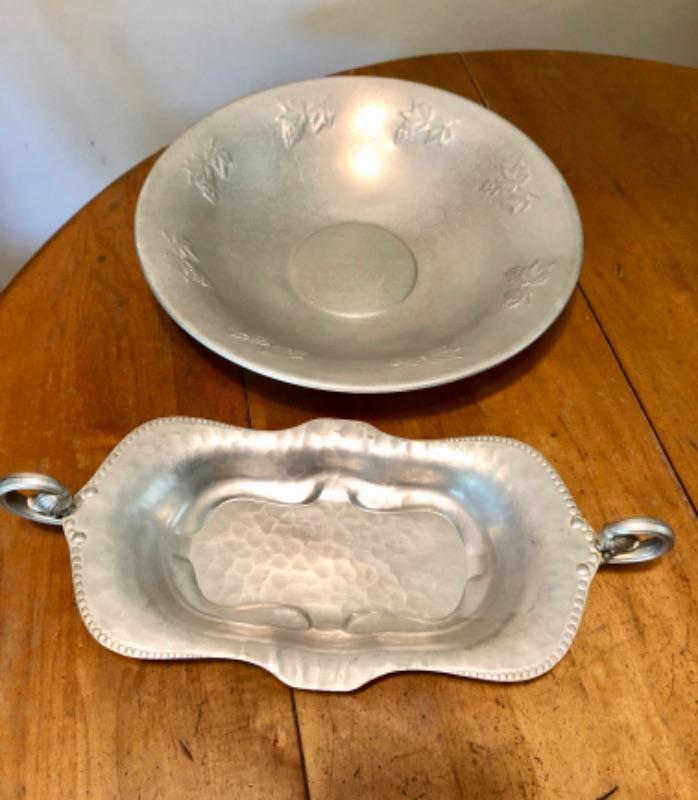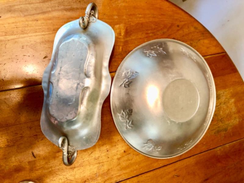 Pair of metal serving dishes. Grape pattern serving bowl and a shallow serving tray/ platter.