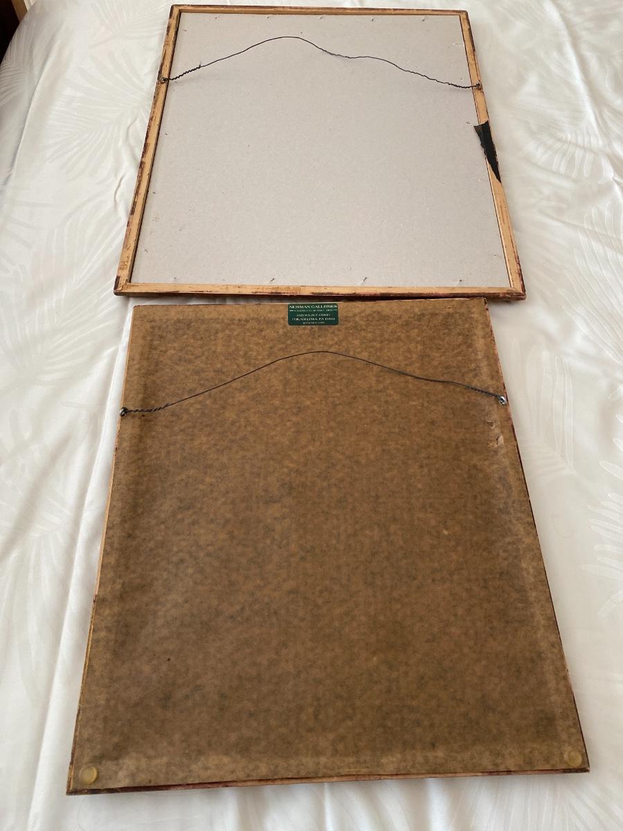 Purchased from Newman Galleries. One measures 17” x 15” and the other measures 22” x 17 1/2”. In vintage gilt frames.