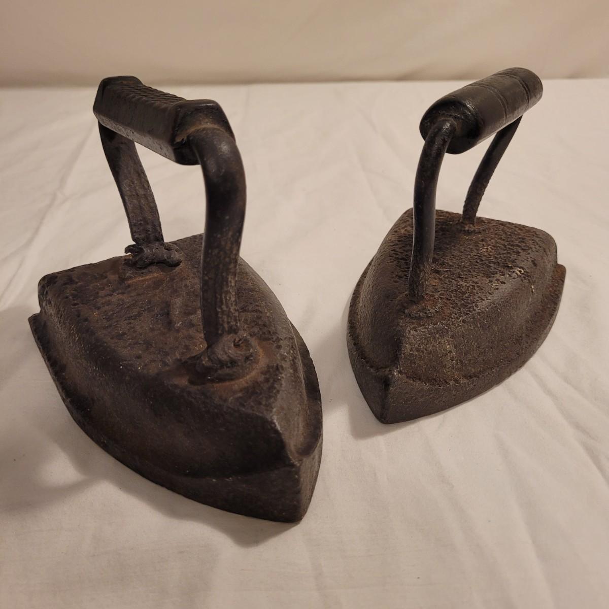 Two Antique Cast Iron Sad Irons (FE-EL)