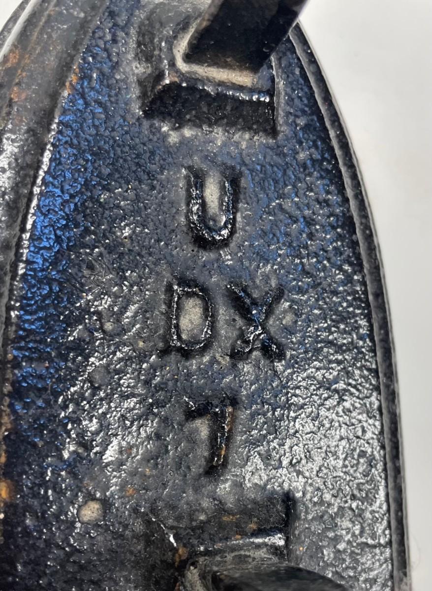 Description: Two antique cast iron Sad Flat iron with / B and D footed trivet; Both Sad irons are marked / See images; Material: Iron; Measurement approximate: 6.5 x 5 (Inches).