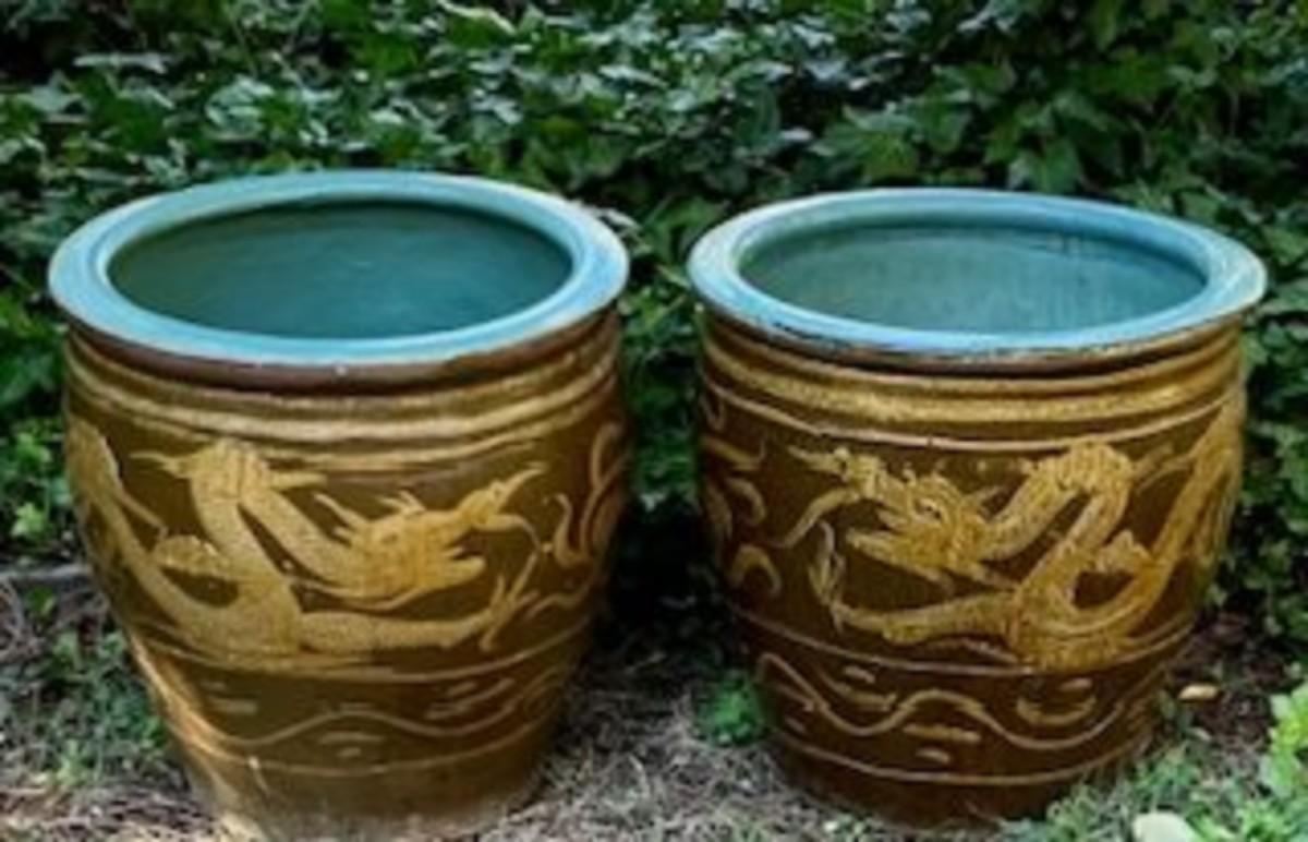 Two Antique Chinese Egg Pots With Dragon Design