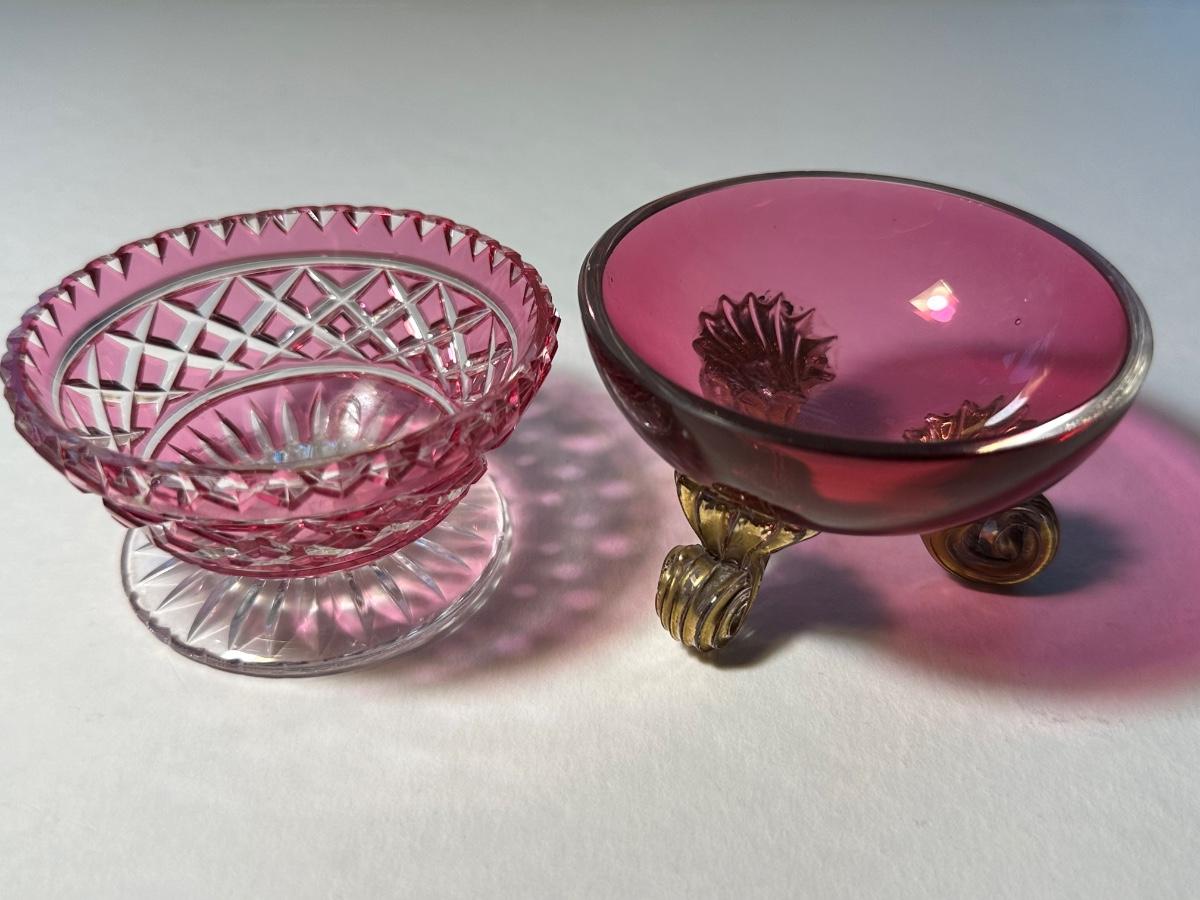 Two Antique English Cranberry Salts