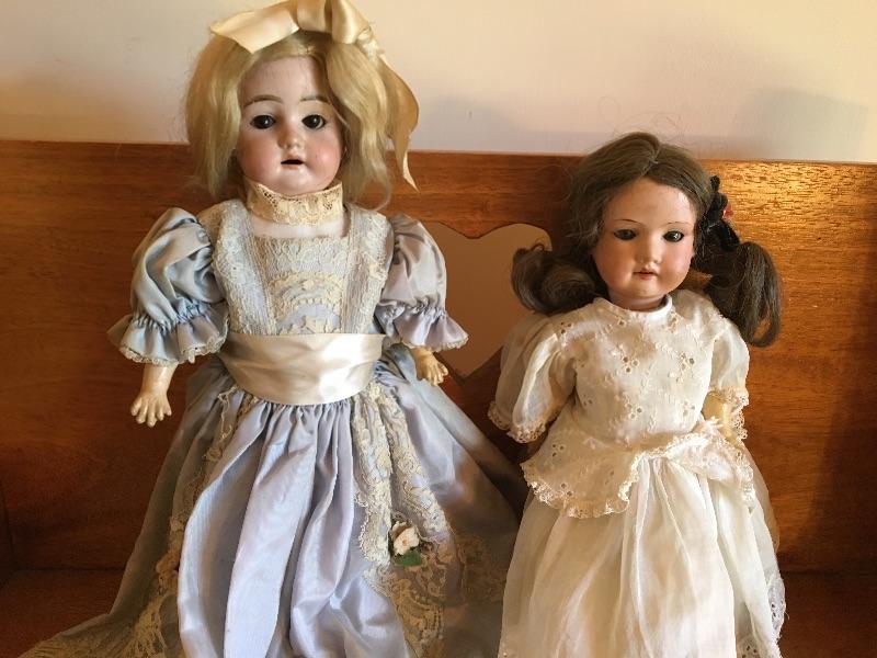 Two Antique German Porcelain Dolls with 14” Armand Marseille