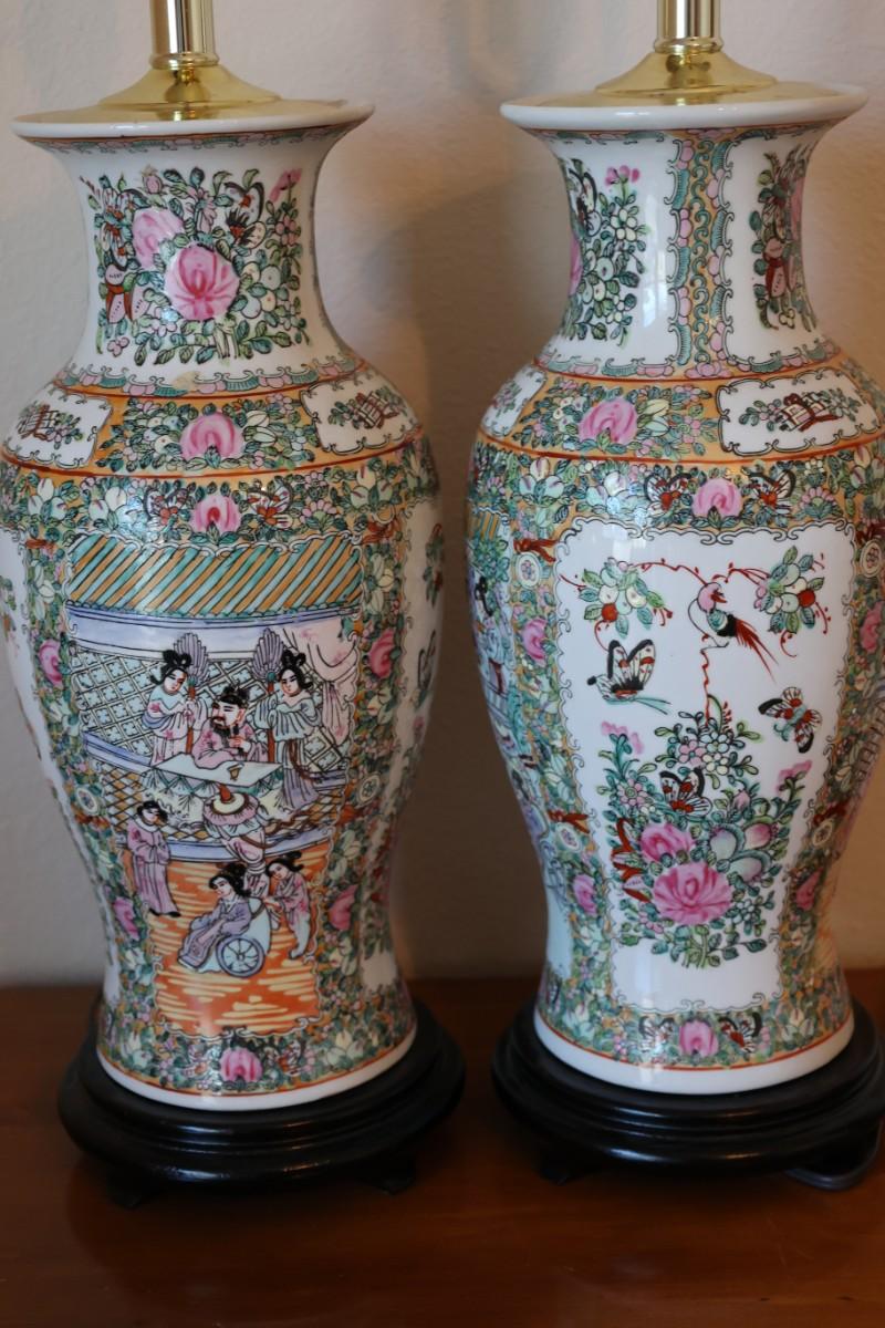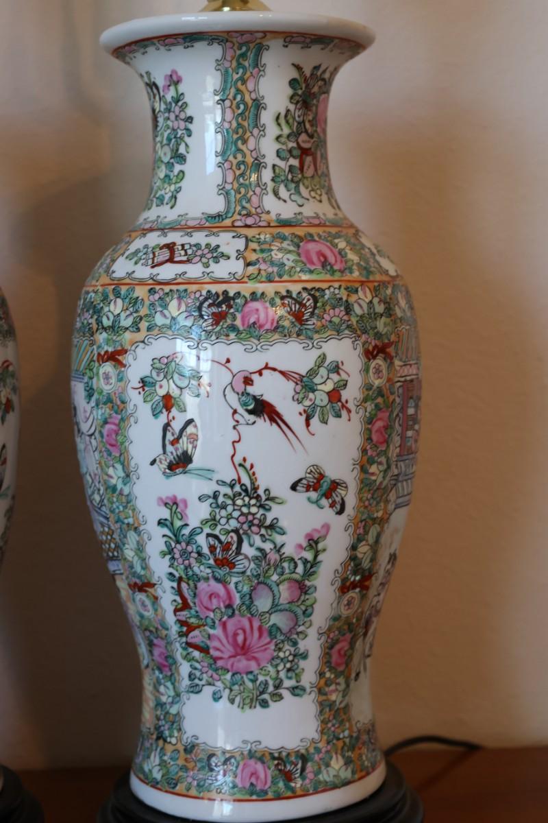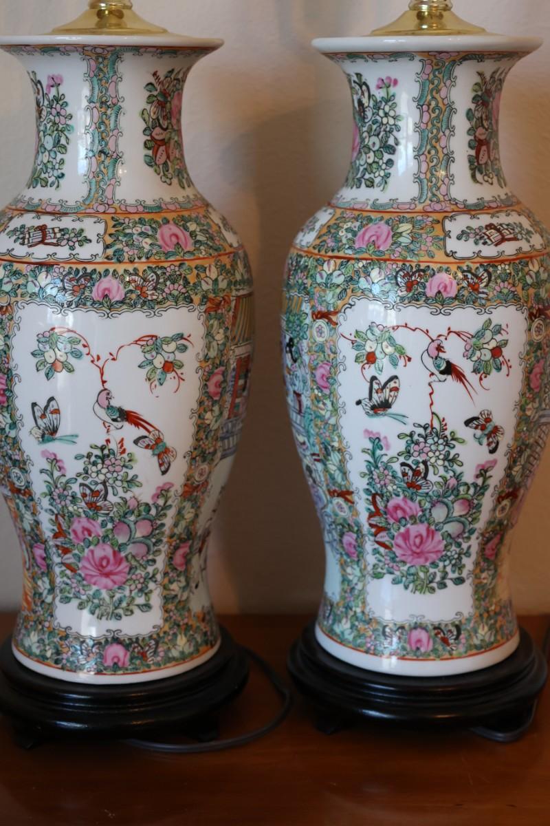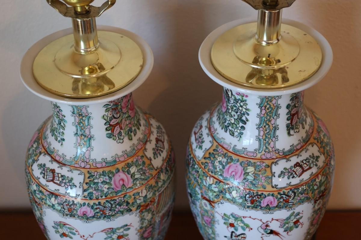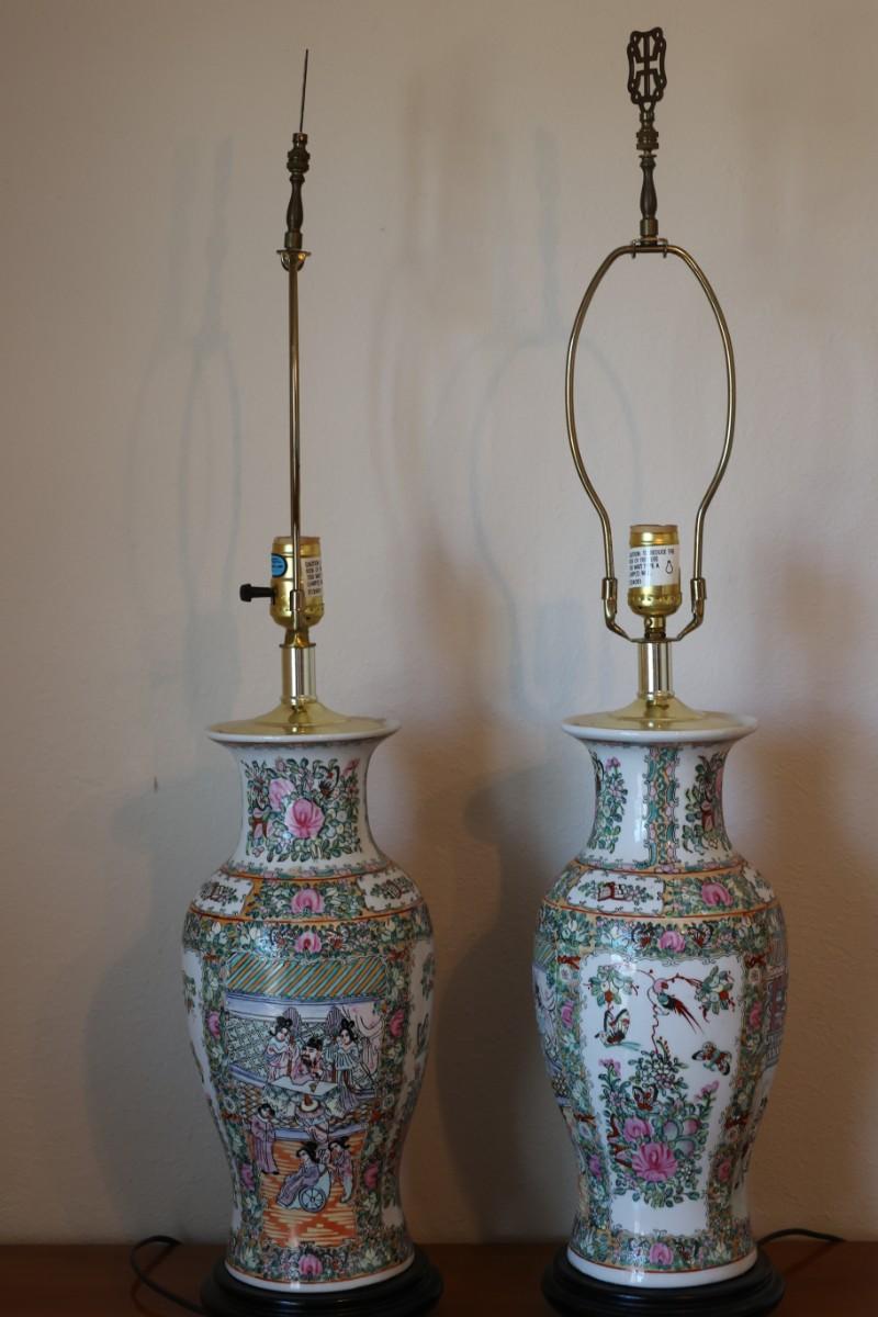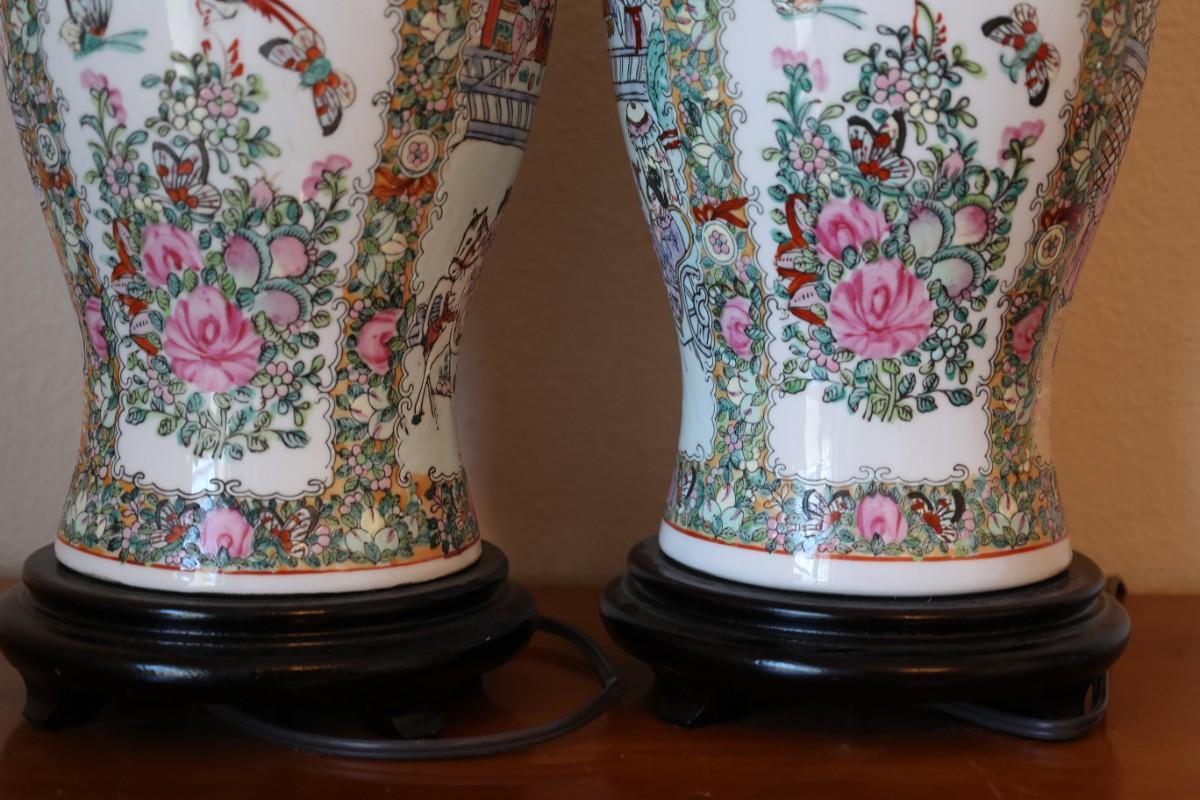 Pair of Antique Rose Medallion Famille Canton Lamps (2)