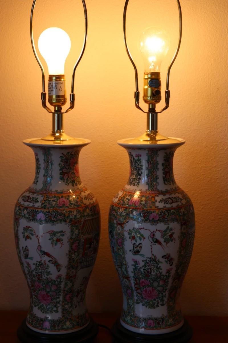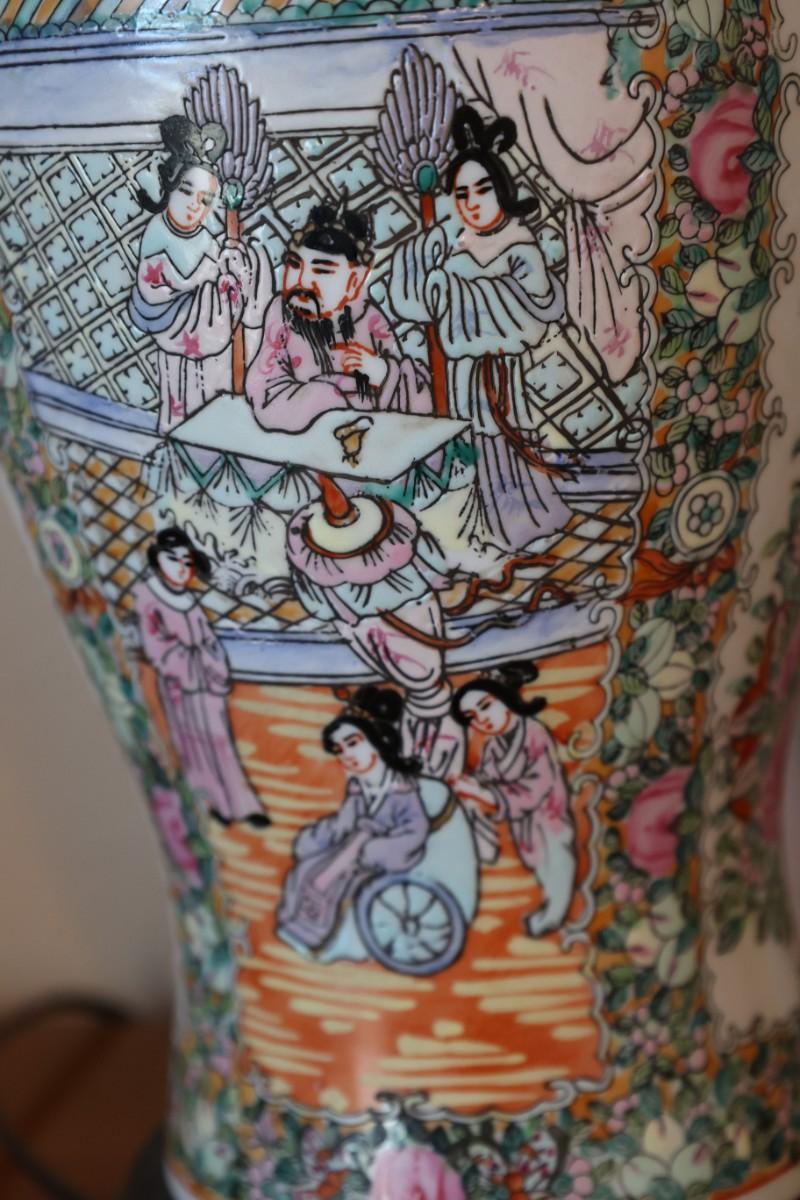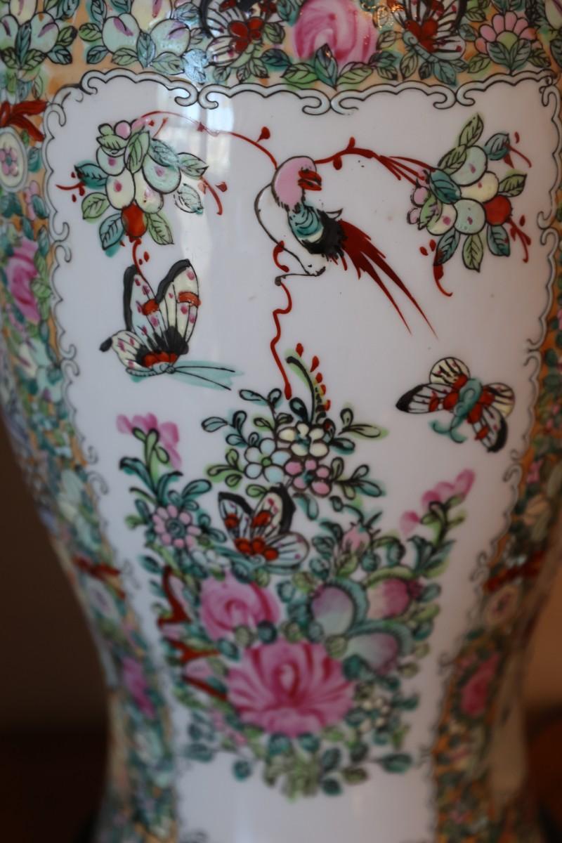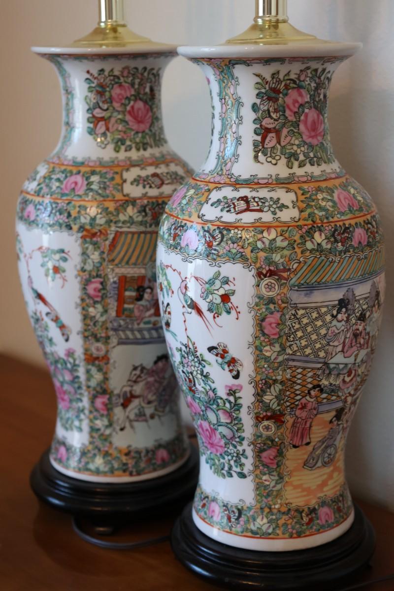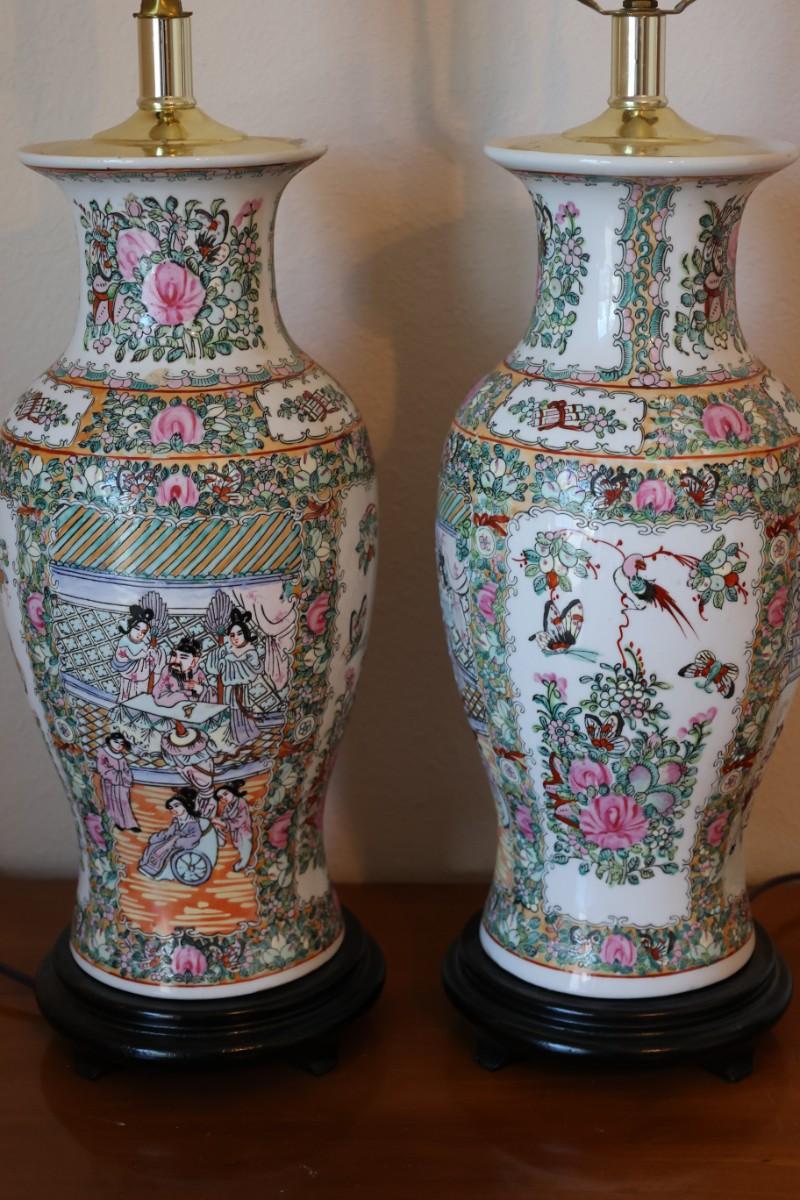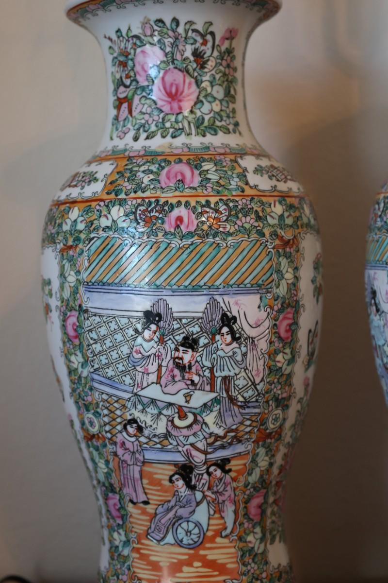 Pair of Antique Rose Medallion Famille Canton Lamps (2)