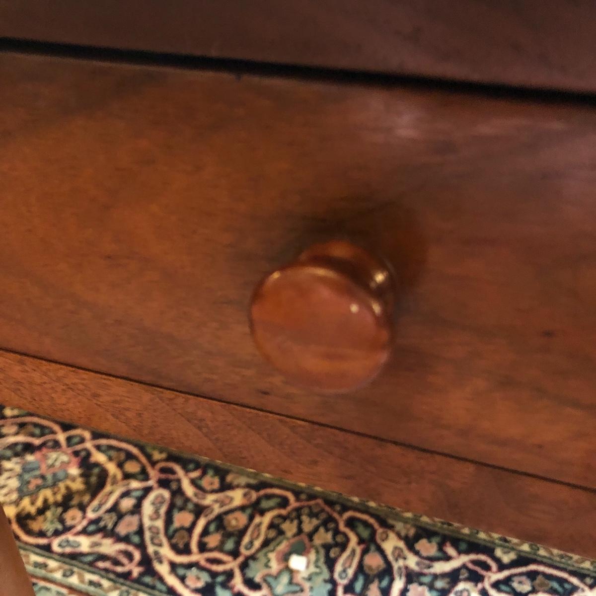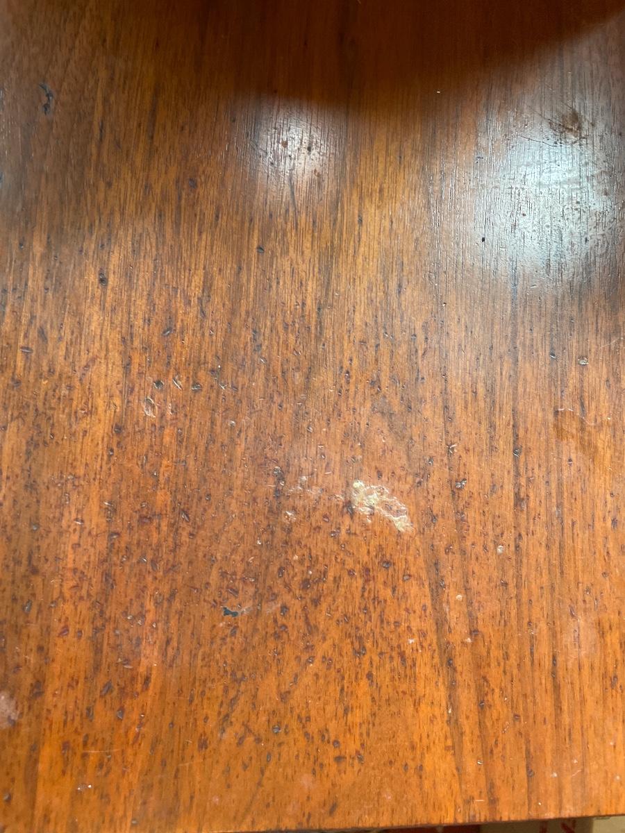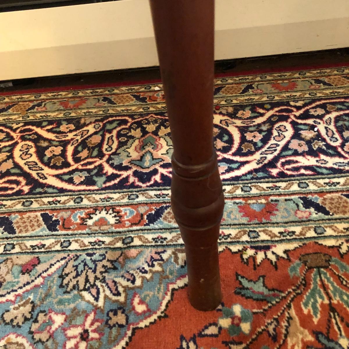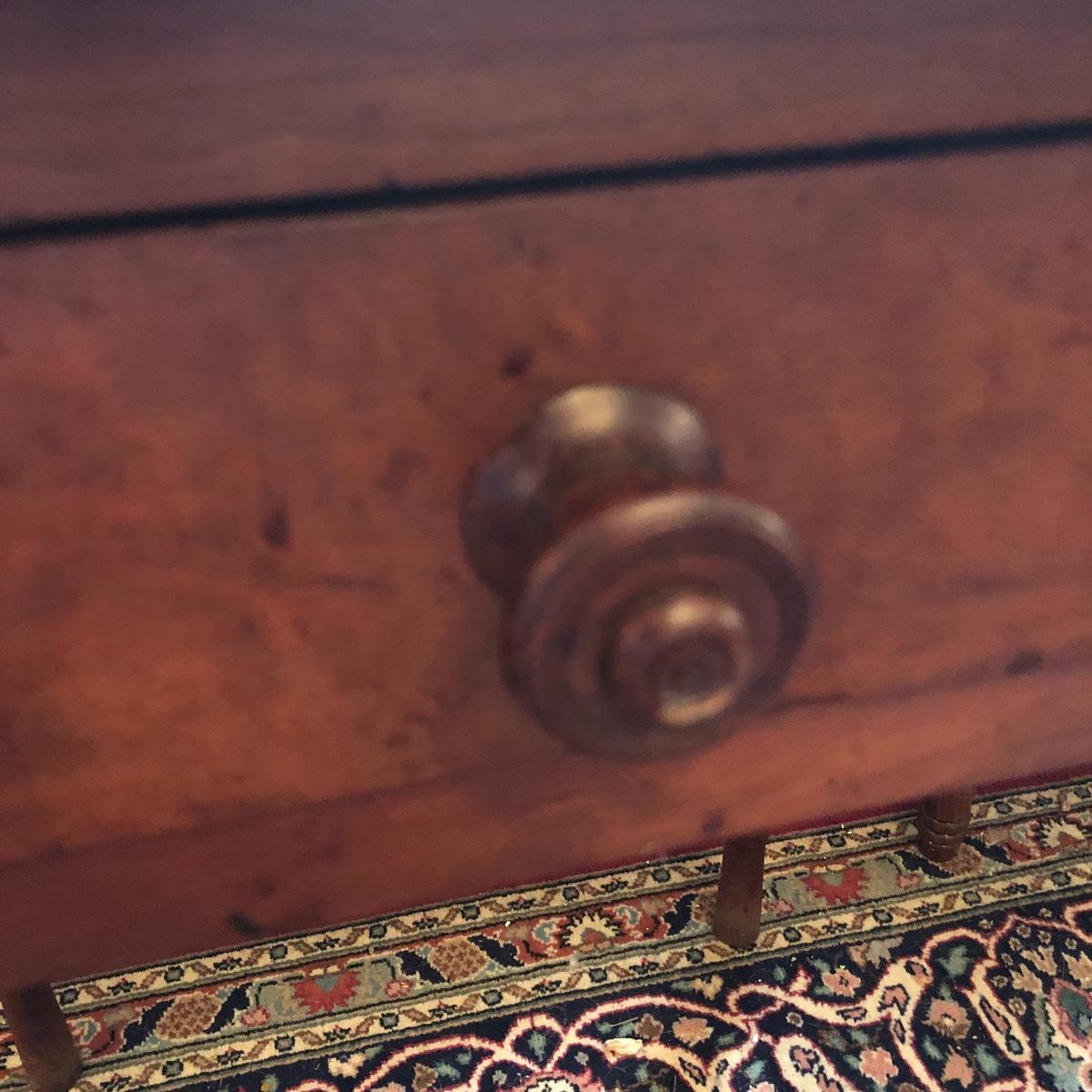 Both of these two tall tables each have one dovetailed drawer each. The darker wood larger table has a few scratches and measures 20” x 25” x 29”. The lighter table has some blemishes also, see images.