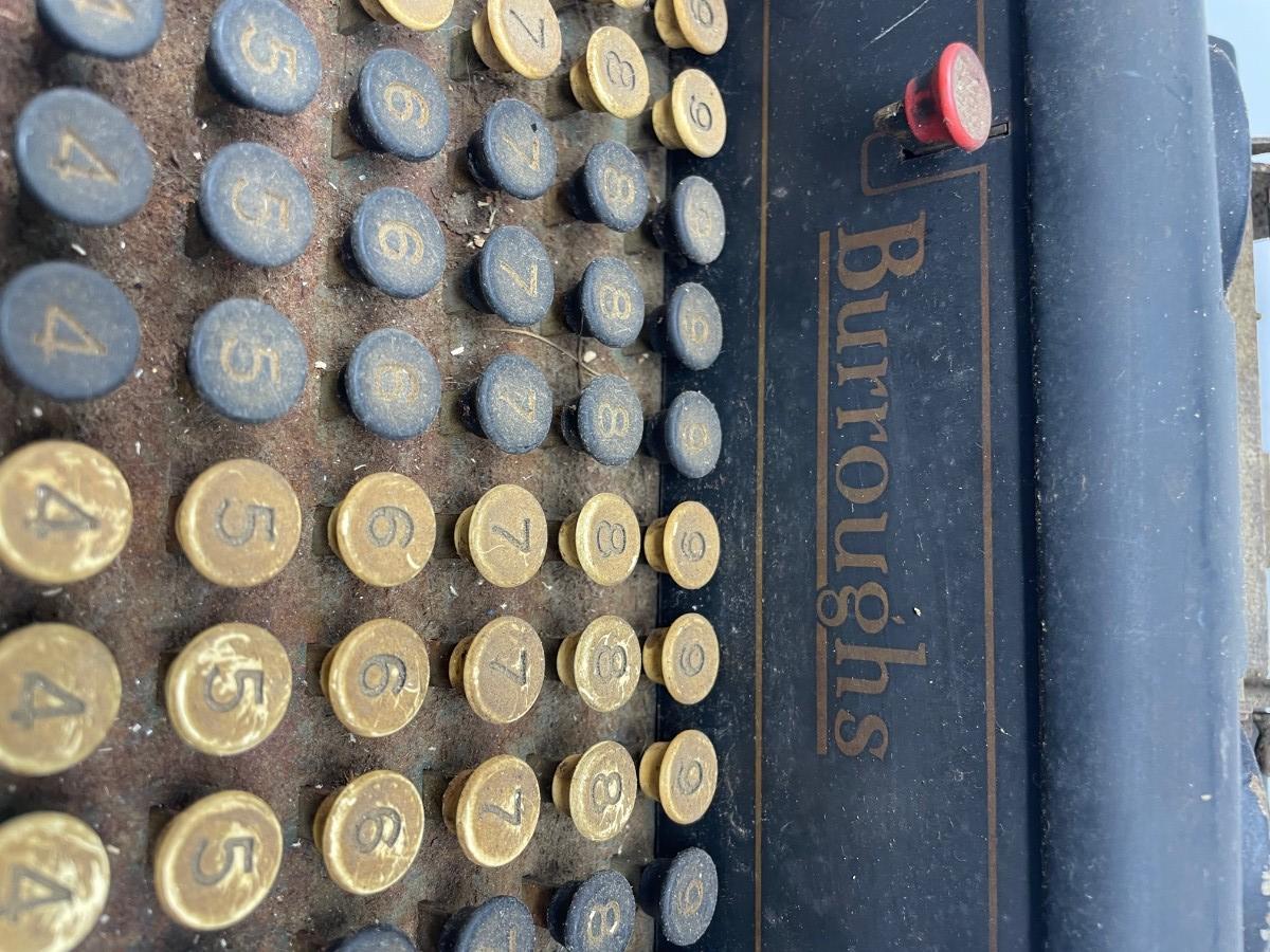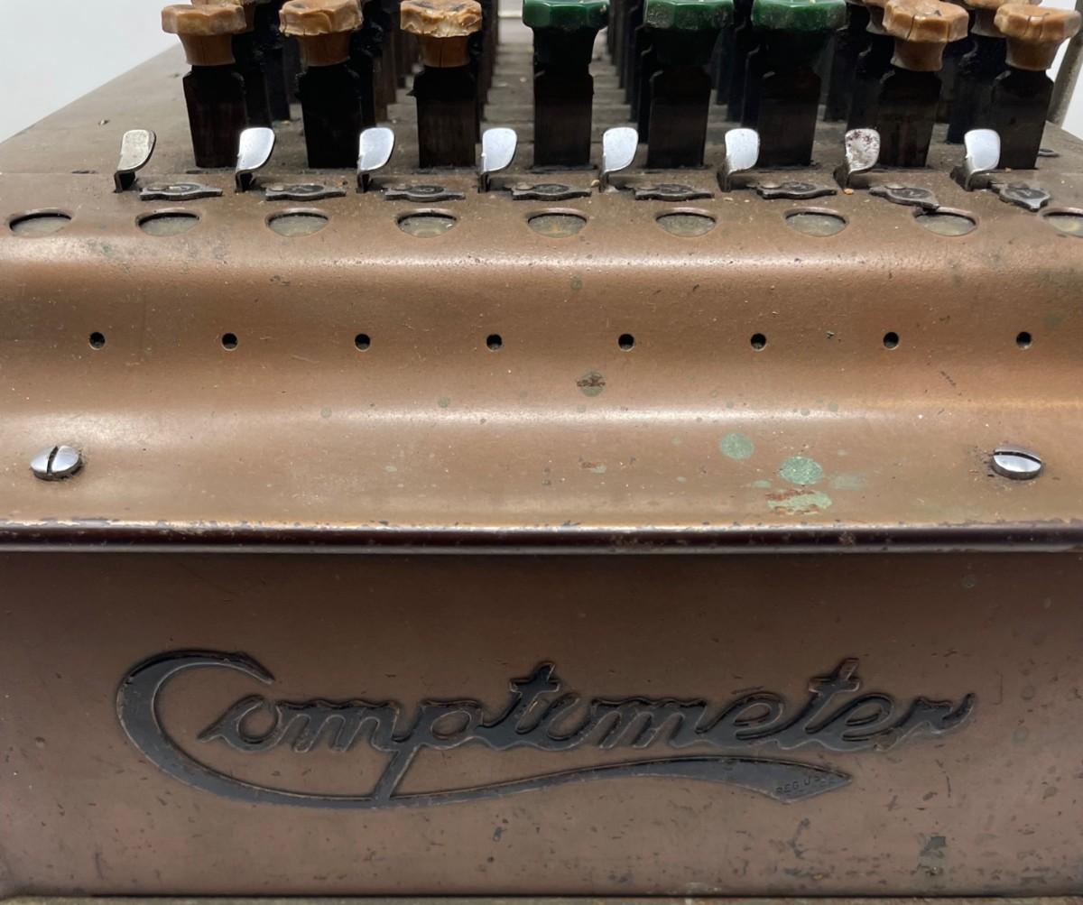 Description: COMPTOMETER CALCULATOR/ Felt & Tarrant Mfg. Co. Chicago. PAT'D and Burroughs Calculator/ Felt & Tarrant Mfg. Co. Chicago. PAT'D.. Measurement approximate: 15 x 8” (Inches).Material: Metal.