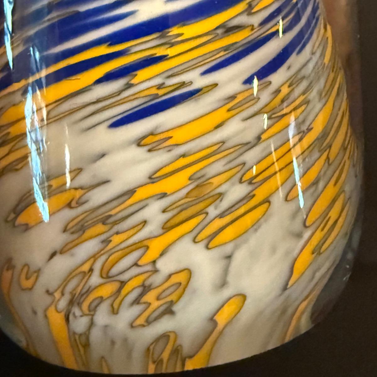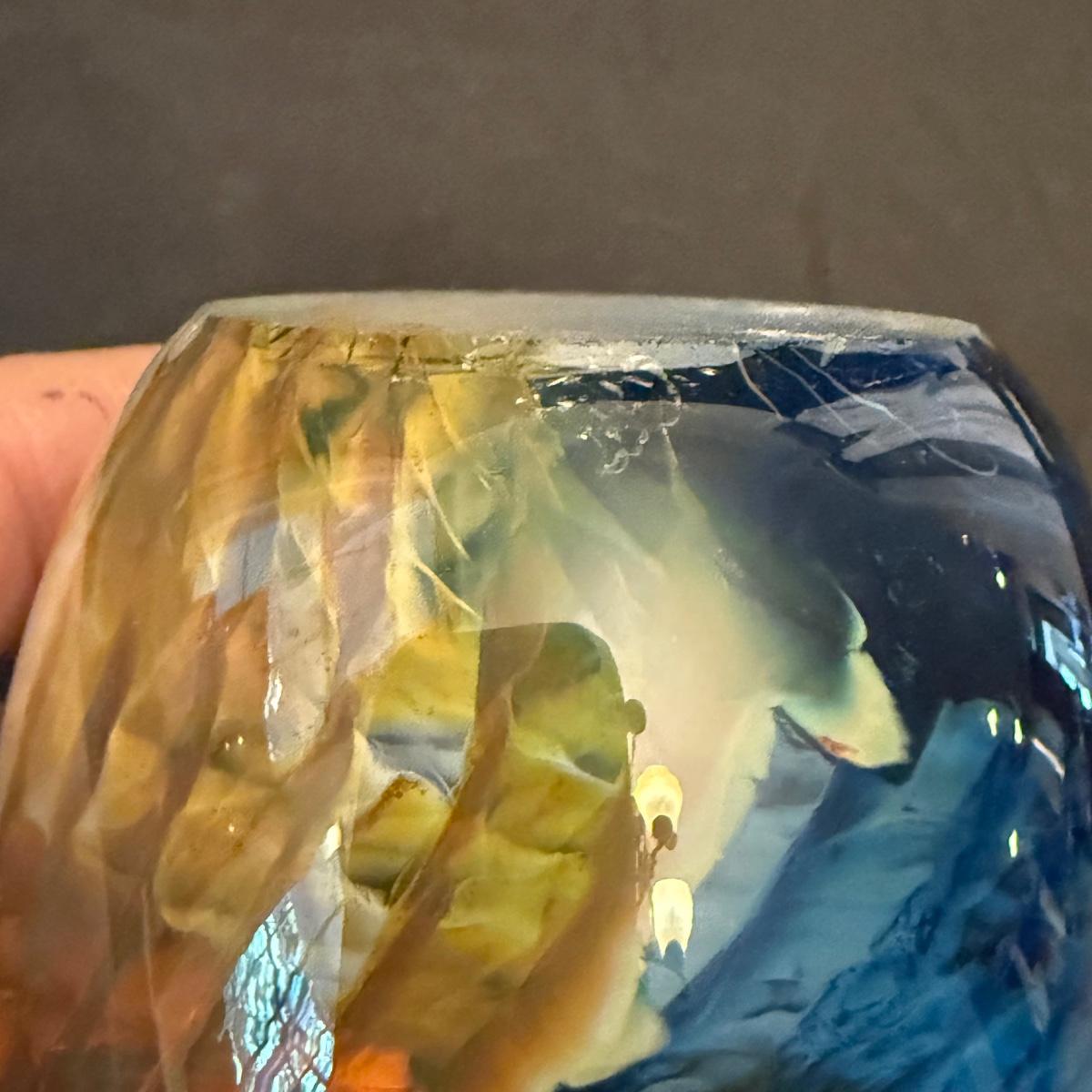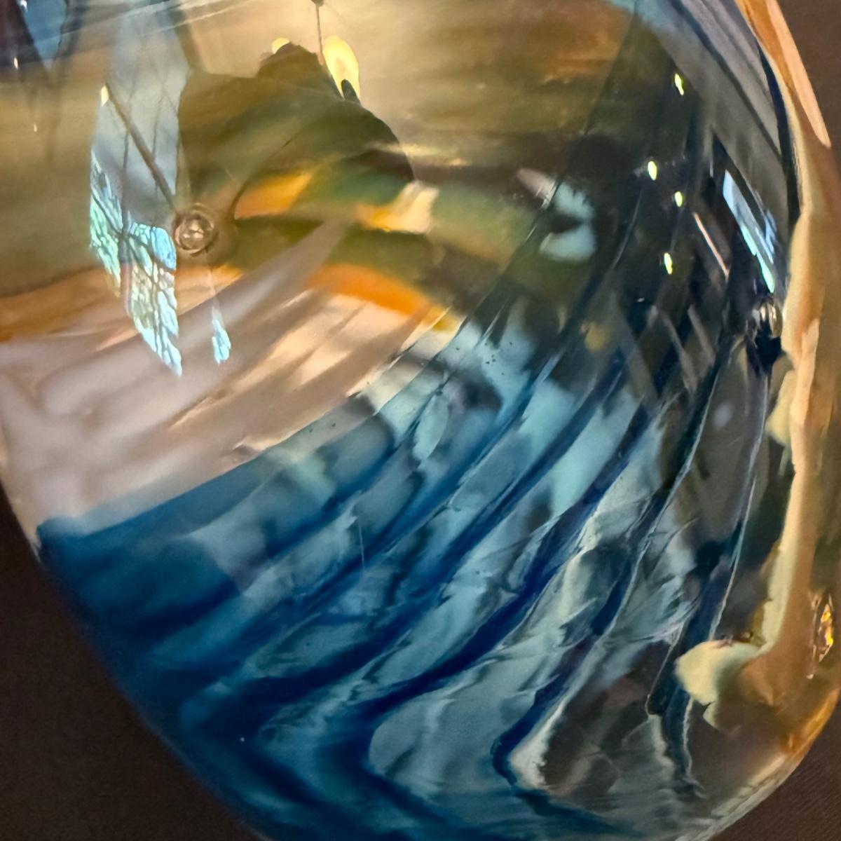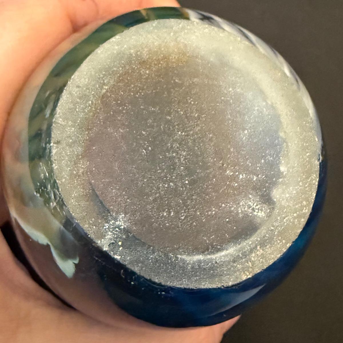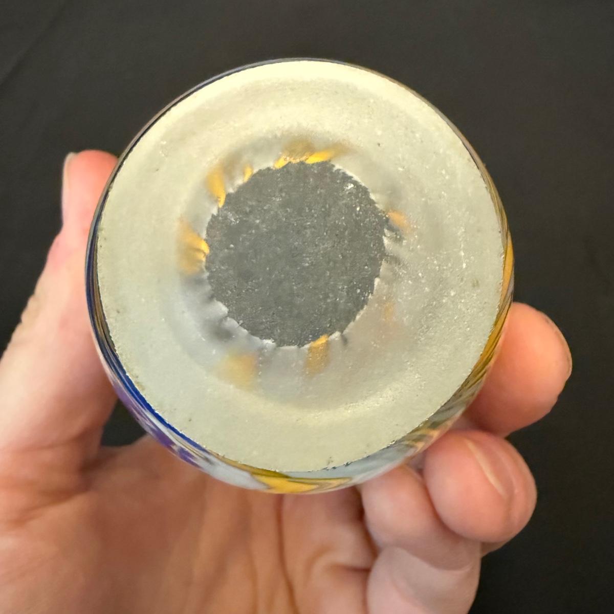 Two glass paperweights with hypnotic swirls. The larger is approximately 2.75”D x 3.75”H. No signature found on either item.