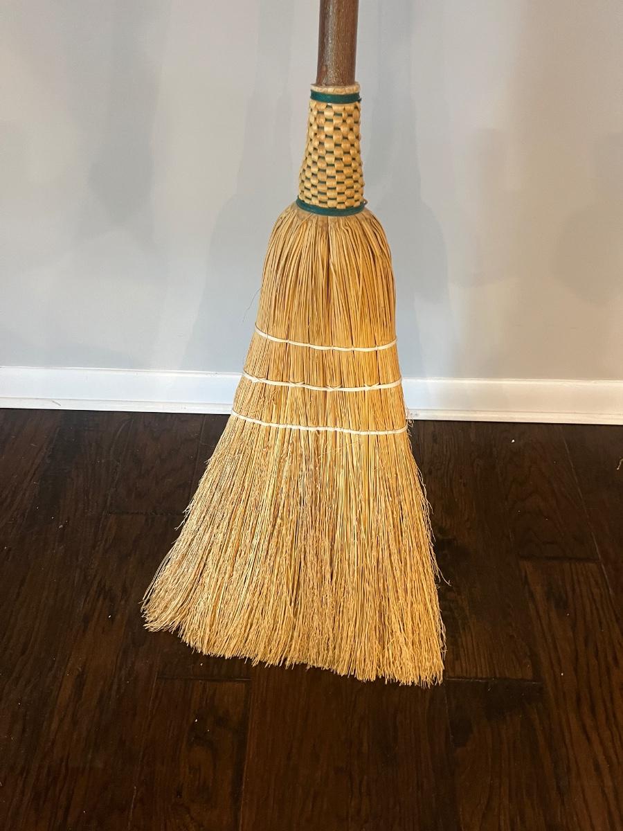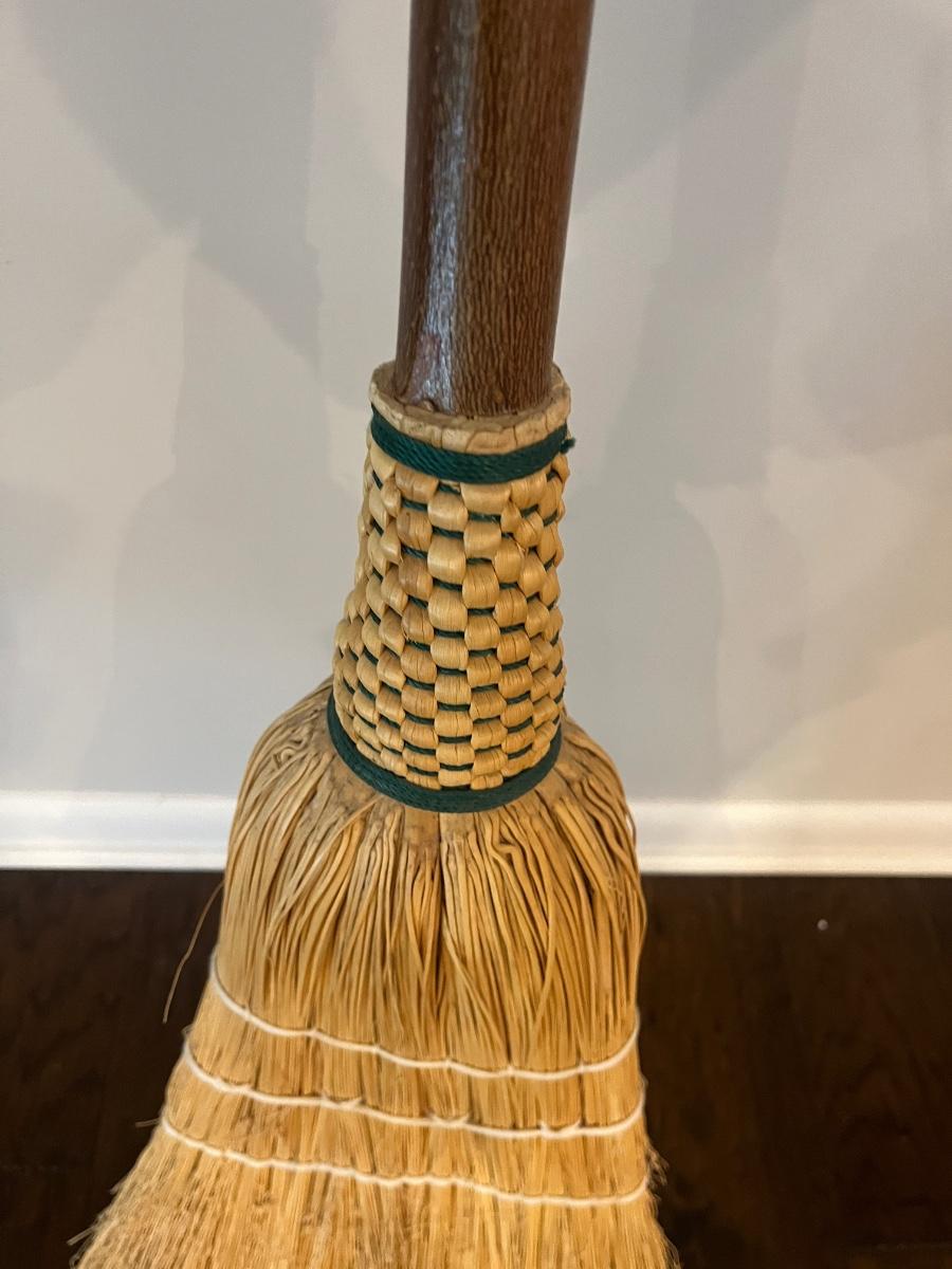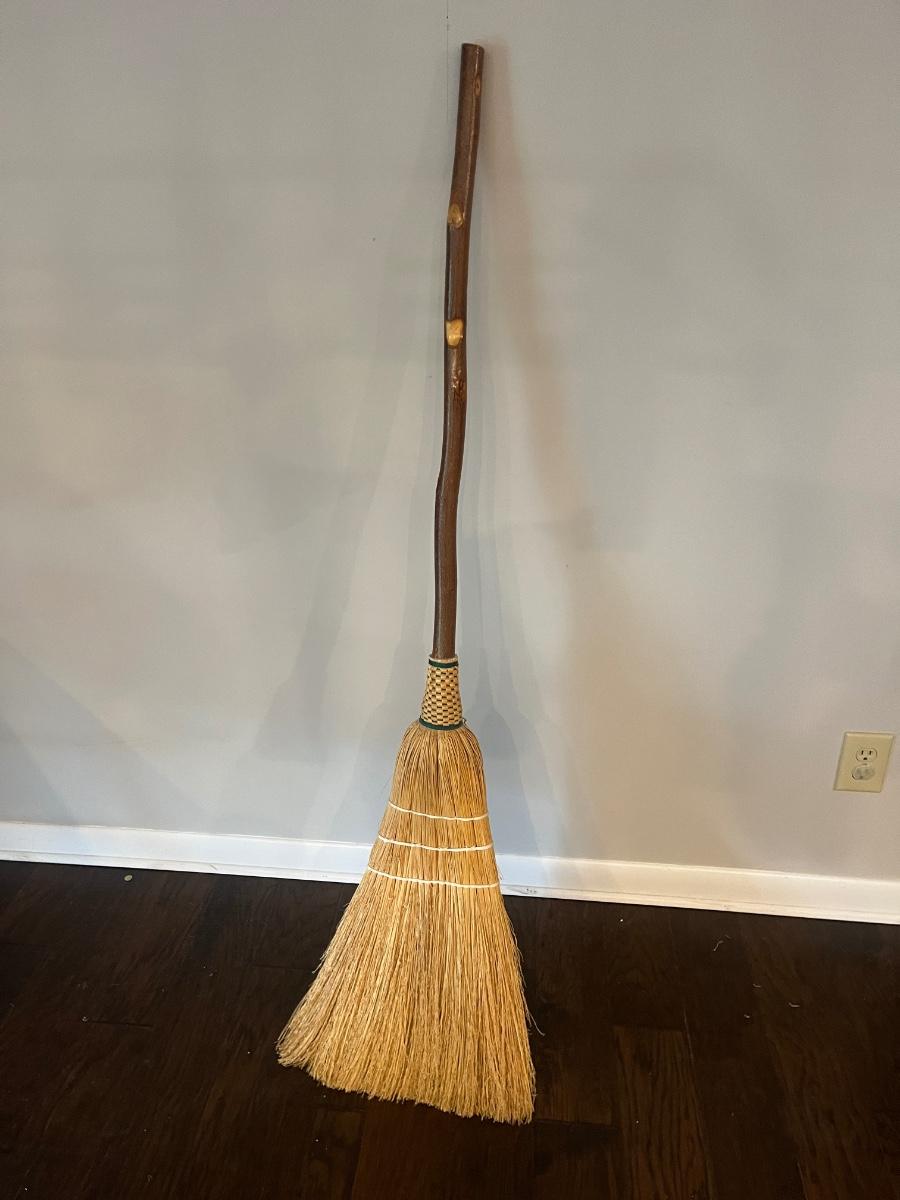 Lot includes two Artisan handmade brooms with the largest one measuring 60"H.
