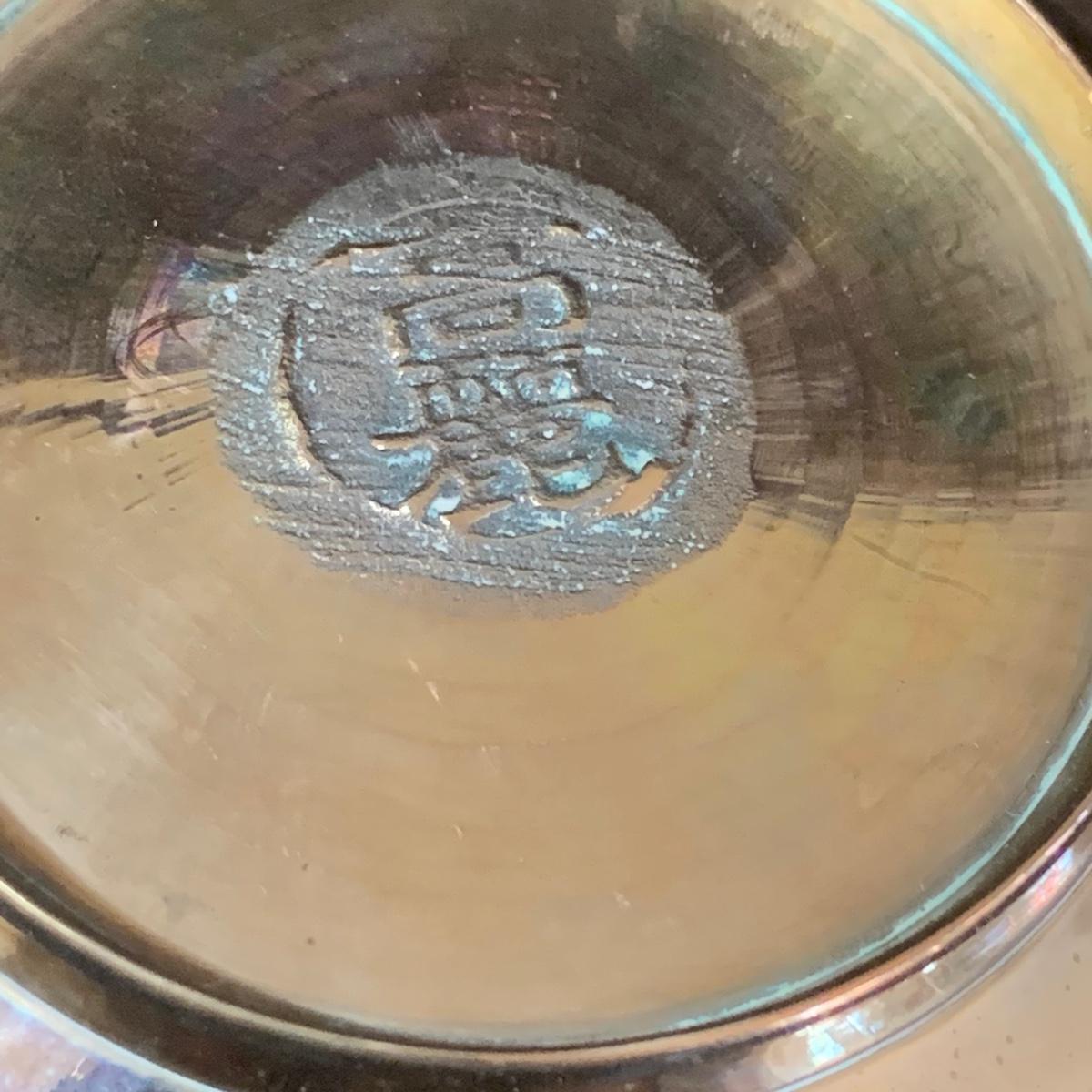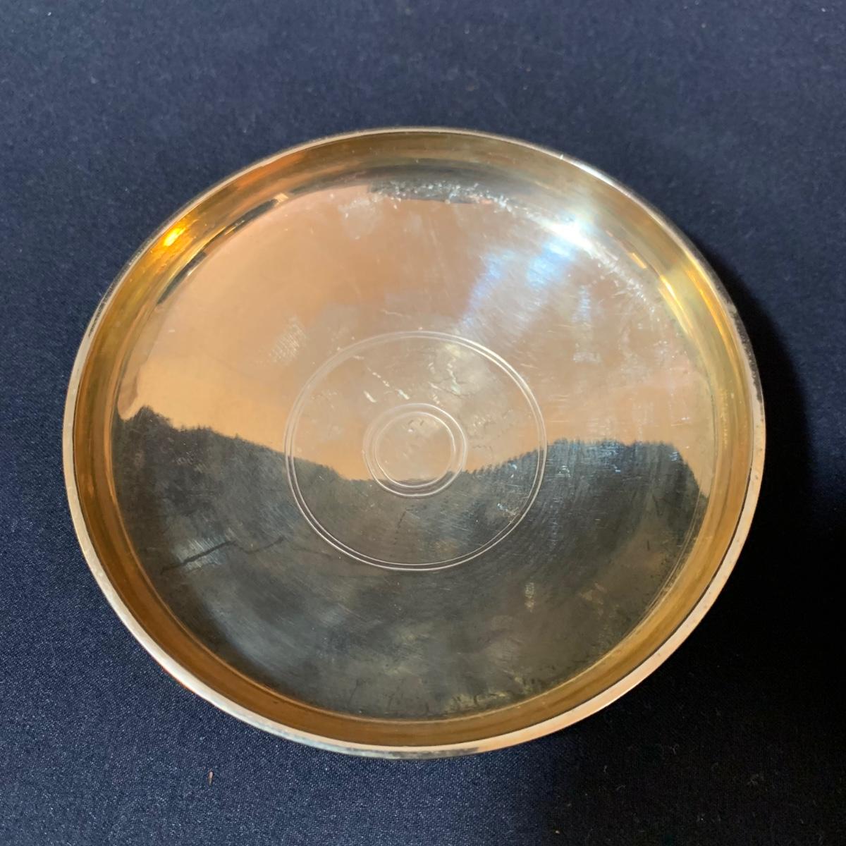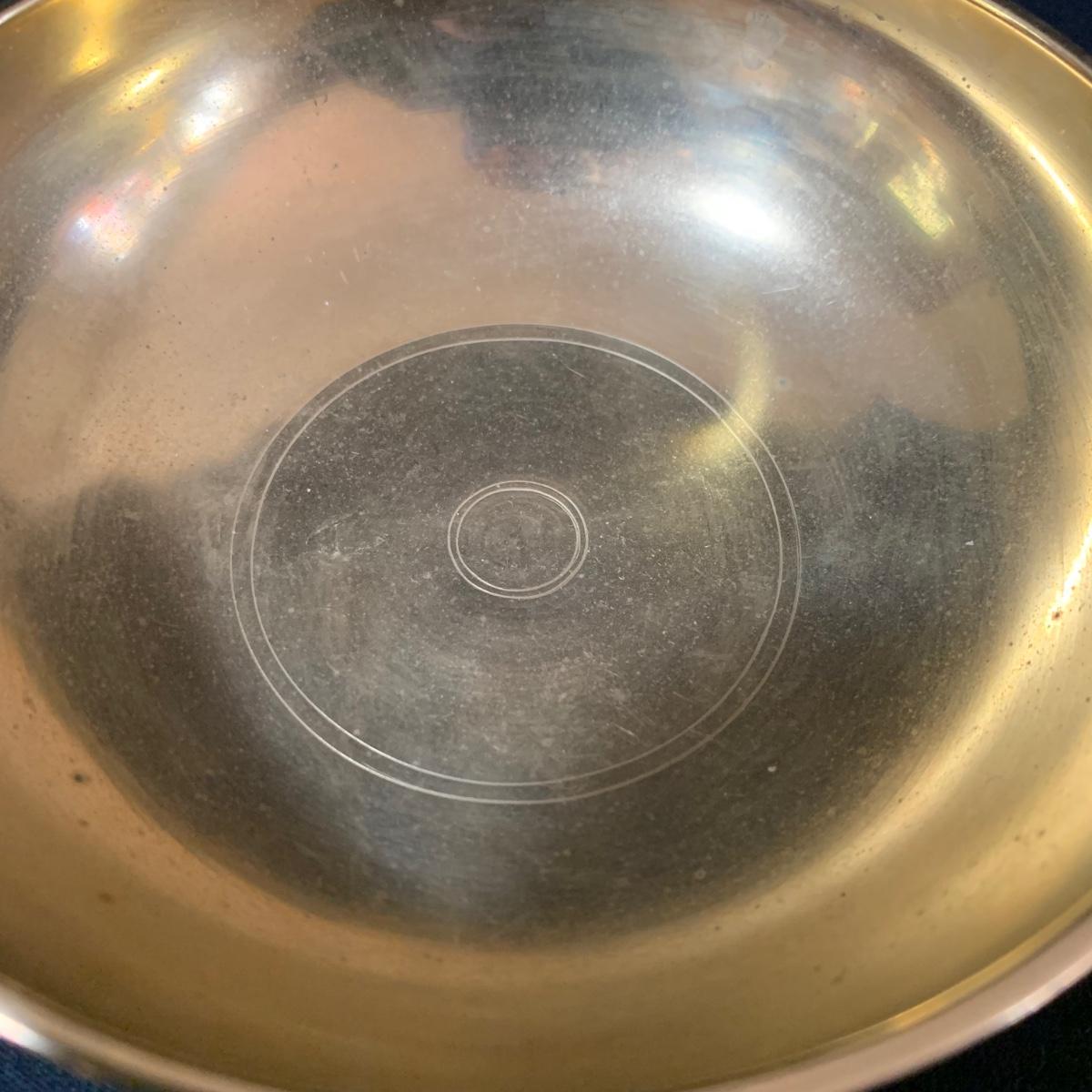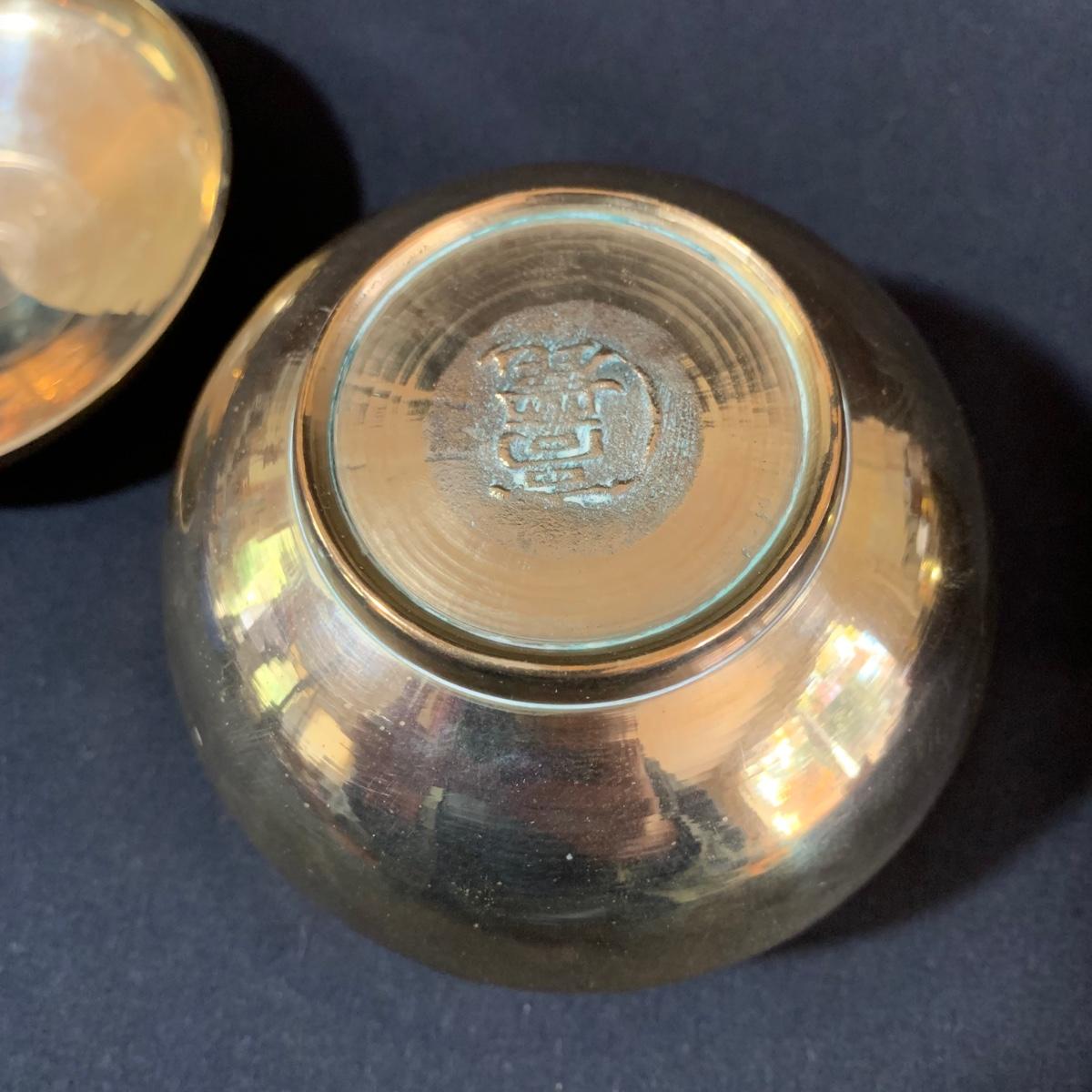 Two lovely Asian bowls that appear to be brass. One has a lid with delicate engraved designs. The bowl without the lid measures 5”D x 2”H. These are both in very good condition, with just a few small surface blemishes, shown in photos..