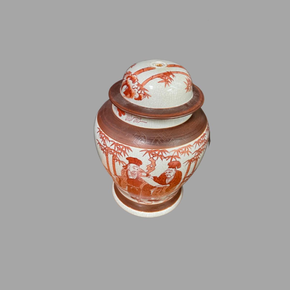 Holes have been driven through them but could also be used as planters. Top lids come off. The artwork is gorgeous. All ceramic. Measures 14"