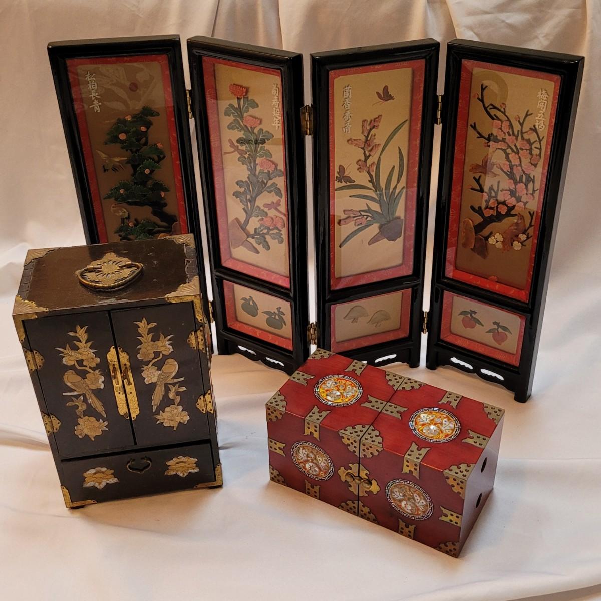 Two Asian Jewelry Boxes and Divider Screen (SR-EL)