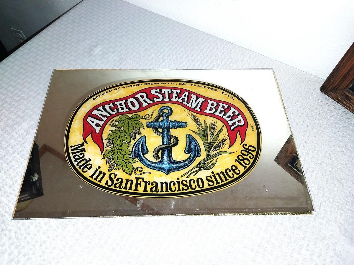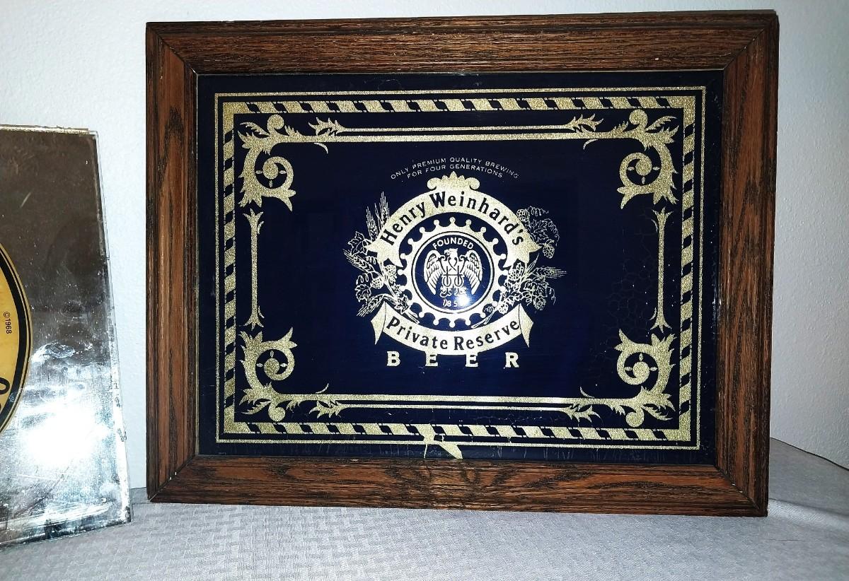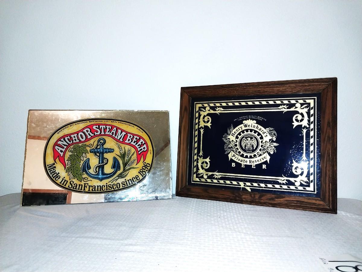 TWO BAR MIRRORS; FRAMED HENRY WEINHARD & UNFRAMED ANCHOR STEAM BEER