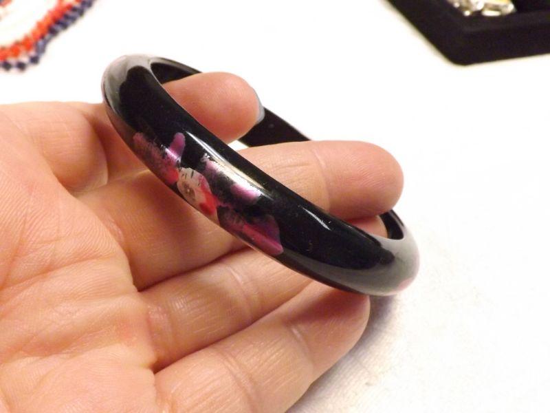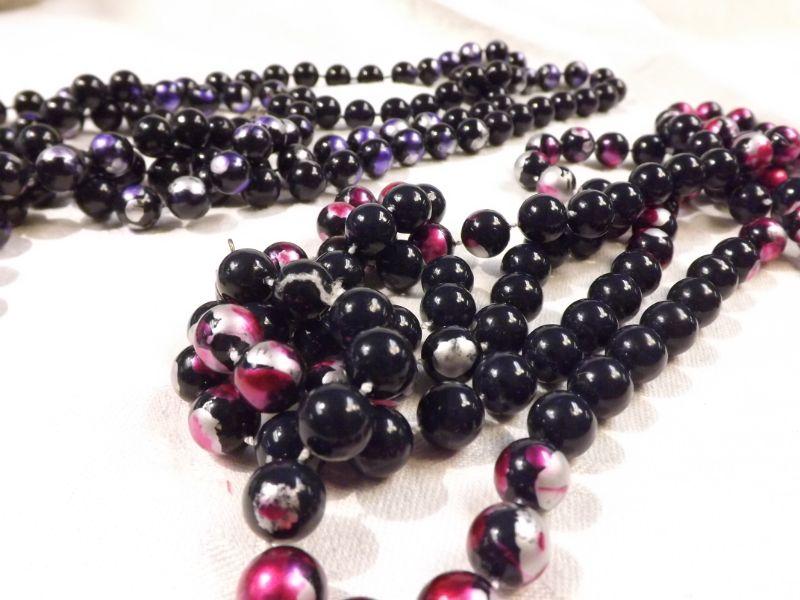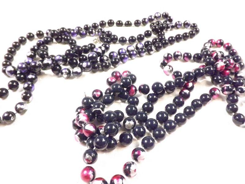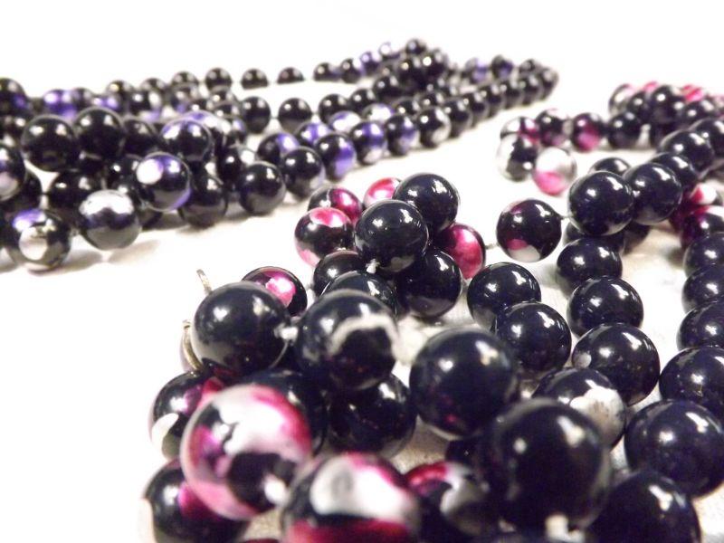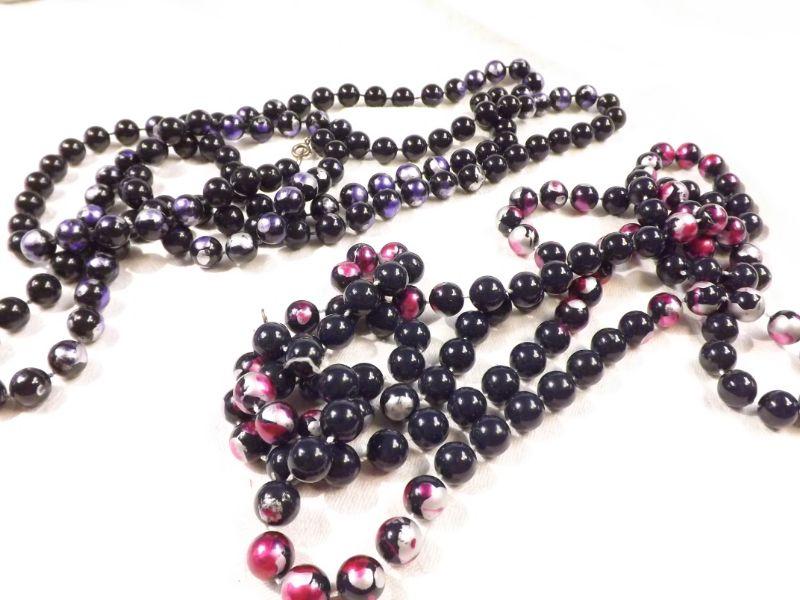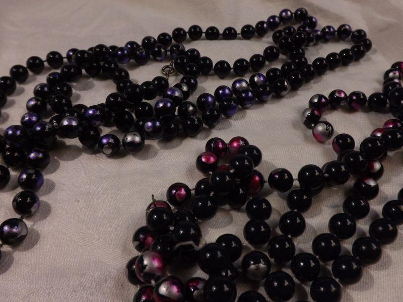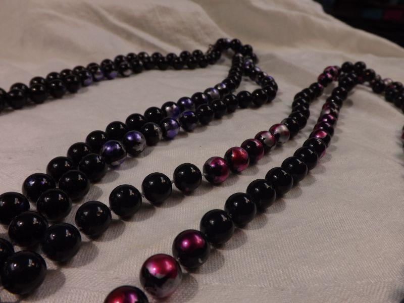 Black and purple strand and black and magenta strand with matching bangle bracelet. Necklaces are 54" each. **Please read Terms and Conditions before placing a bid. Pick up is Wednesday, September 25 from 4pm to 7pm and Saturday, September 28 from 9am to 1pm in Williamstown, NJ. All sales are final. All sales are as is, where is. Please review all photos. Any props included in photos are not included in listing. All measurements are approximate.