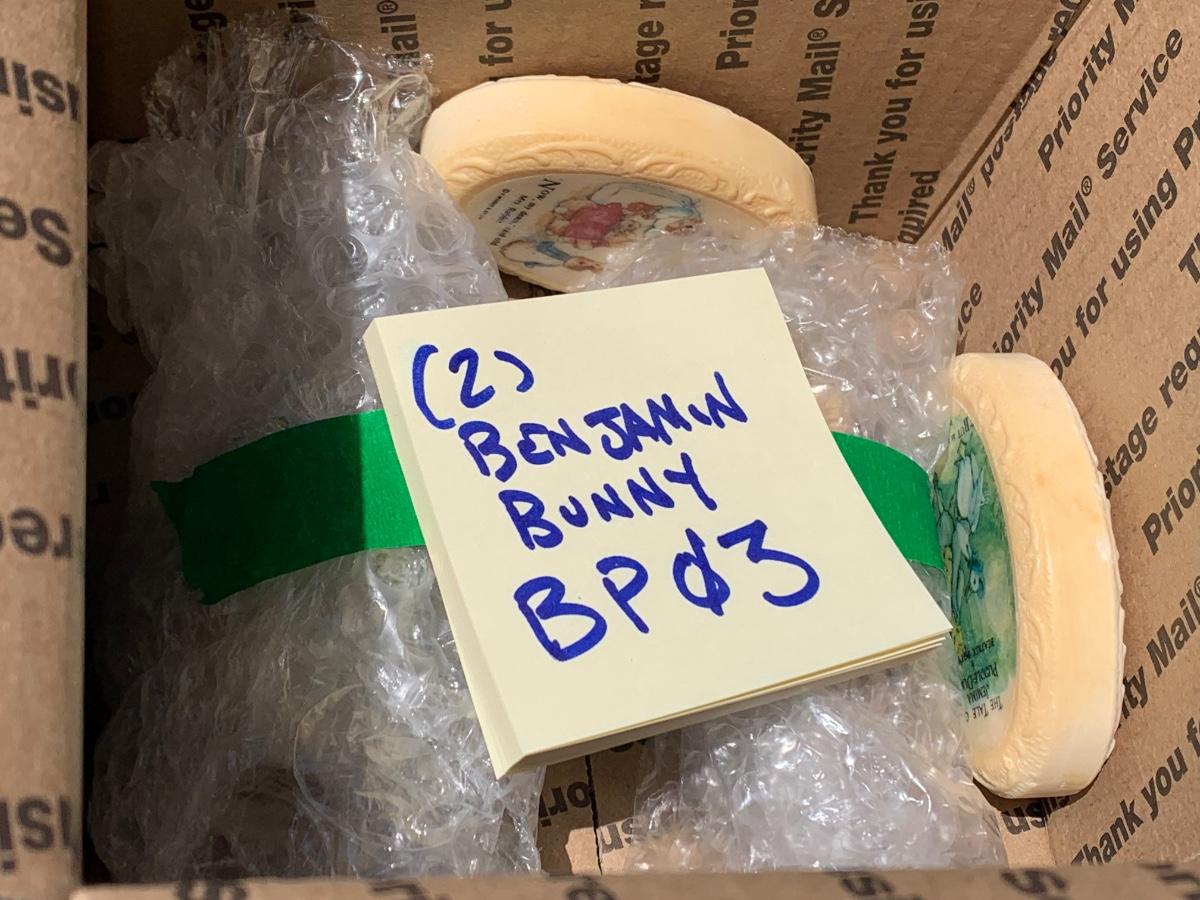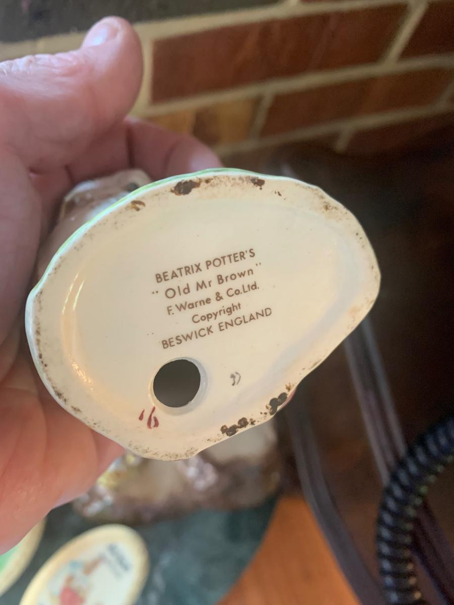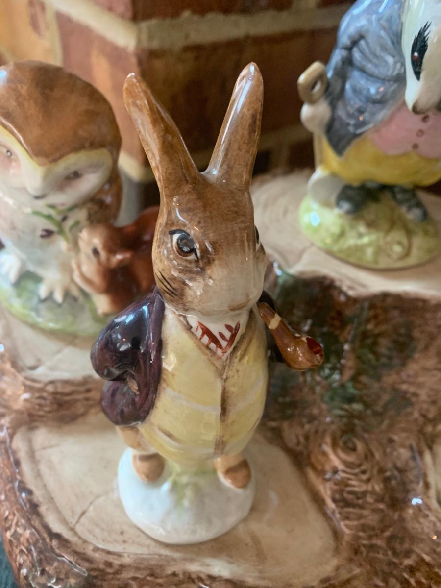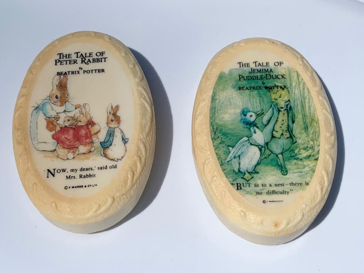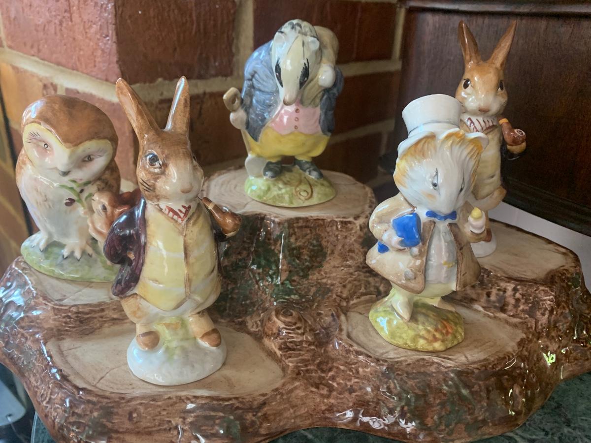 5 Beatrix Potter Figurines w Display Stand - No Copyright Date + 2 Soap