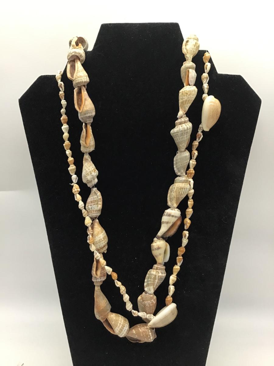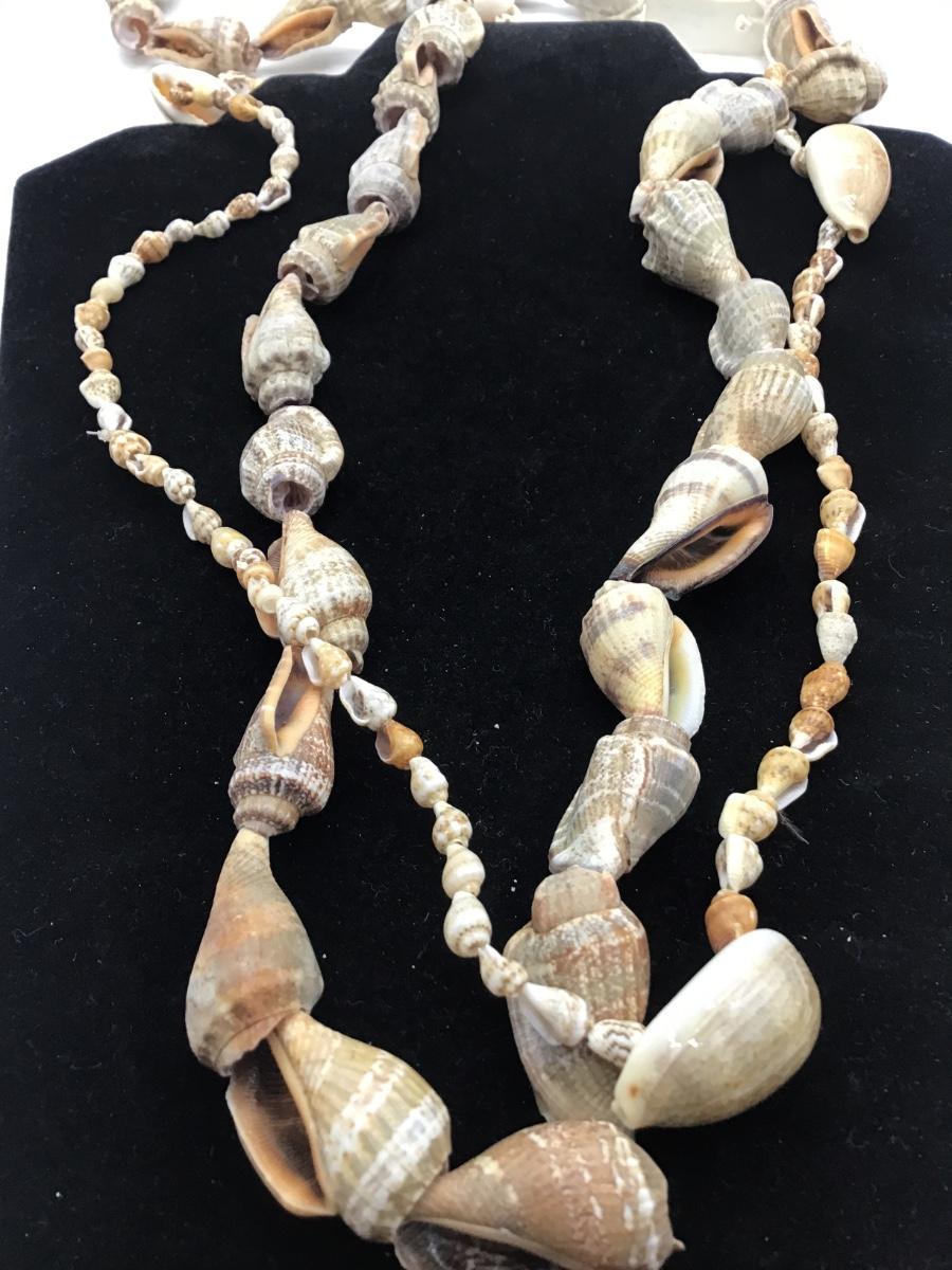 Two Beautiful Vintage Cowrie and Small Conch Sea Shell Necklaces