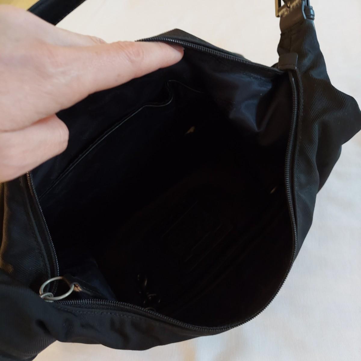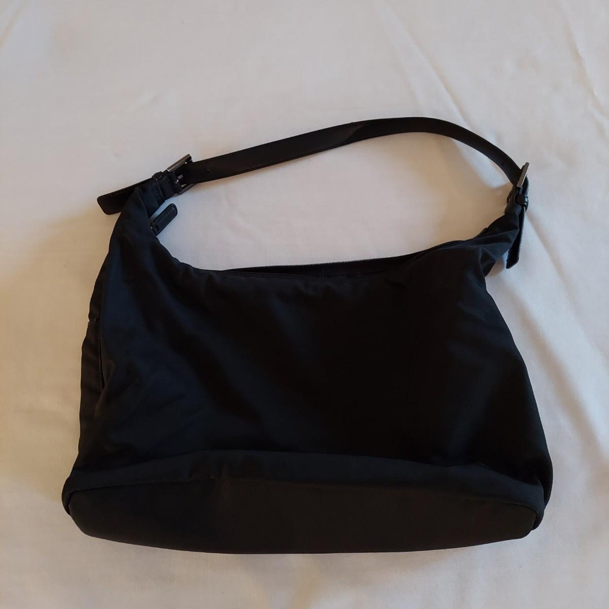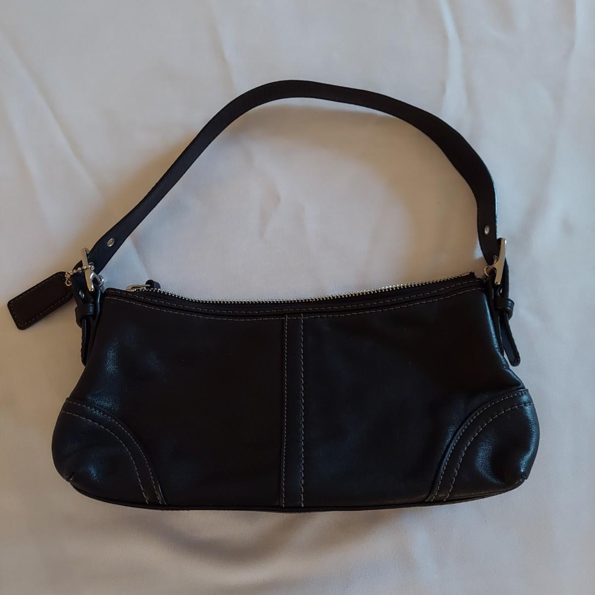 Lot includes two black Coach purses. The small leather bag is 10" x 2.5" x 6"H. The nylon shoulder bag is 13" x 5" x 12"H. Shipping available