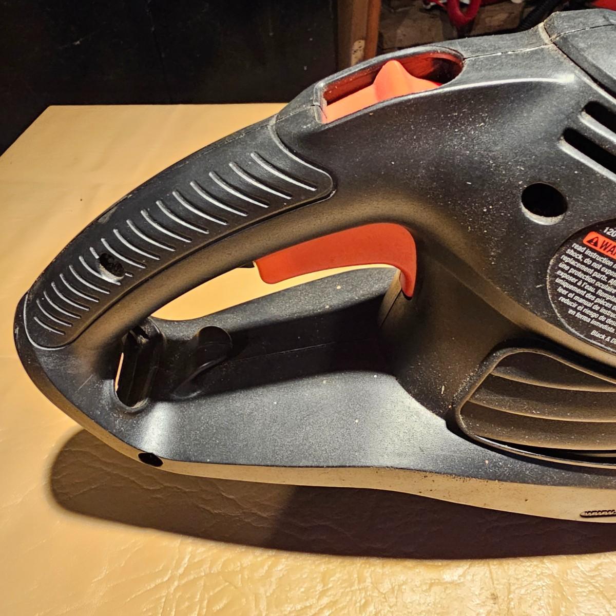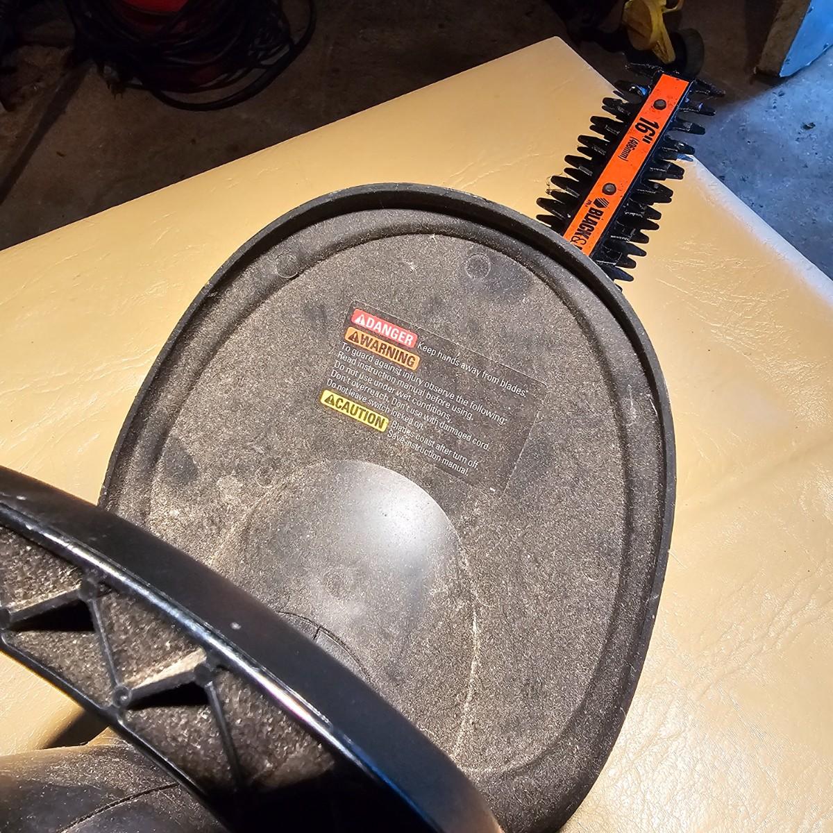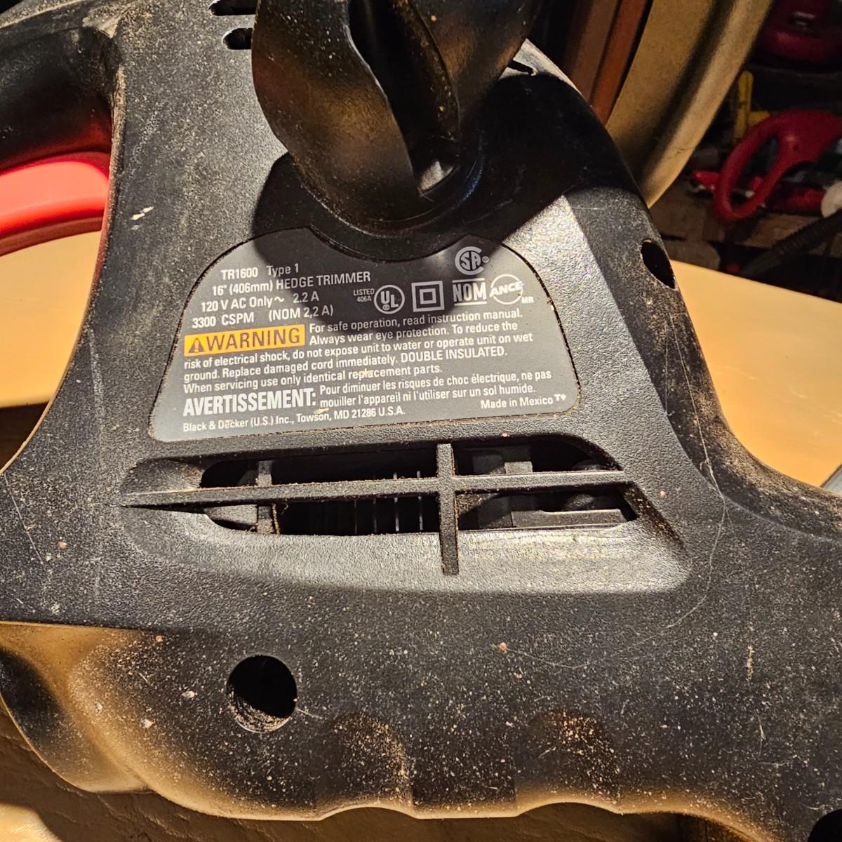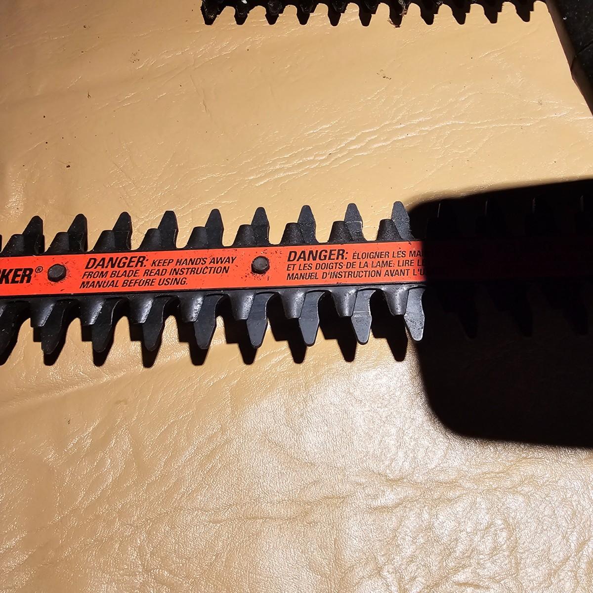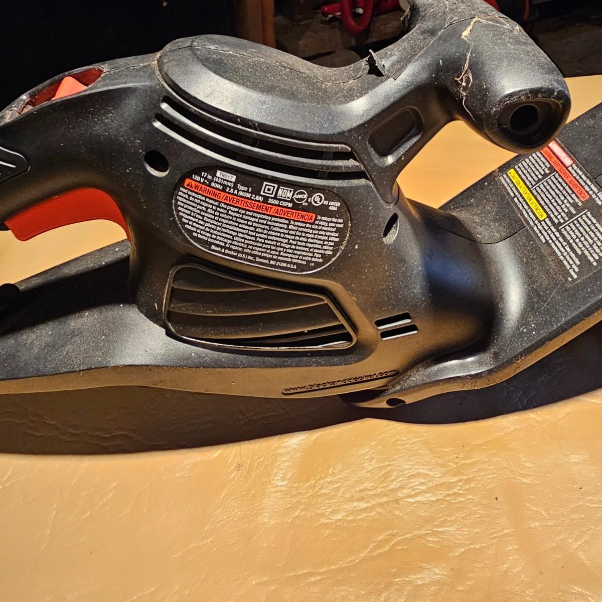 A pair of electric hedge trimmers by Black & Decker, one 16" and one 17". Handles and handguards, all pladtic bodies. Both powered on when plugged in. See photos for details. Local pickup only.
