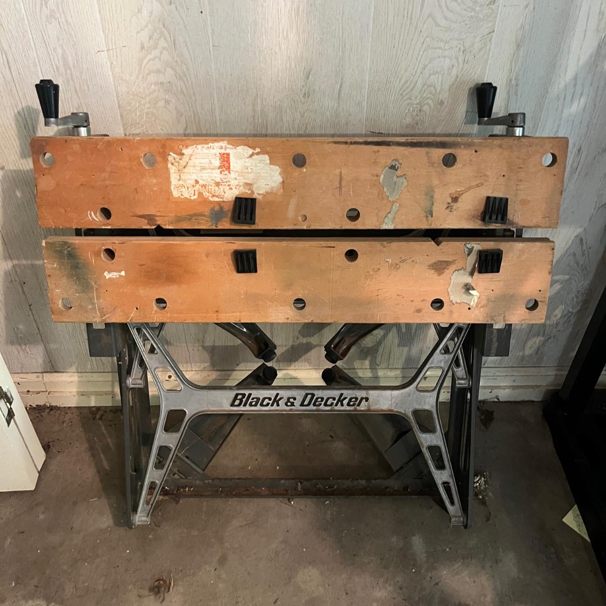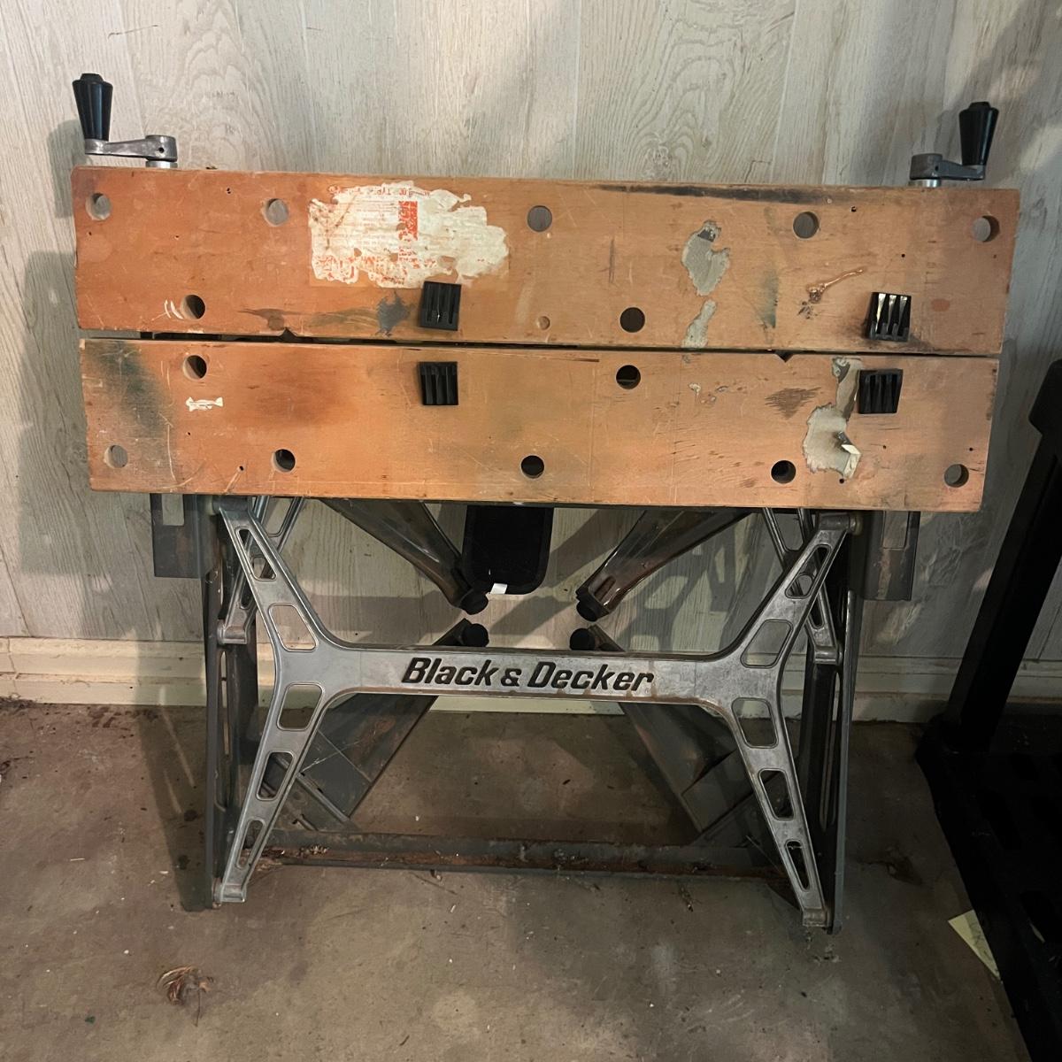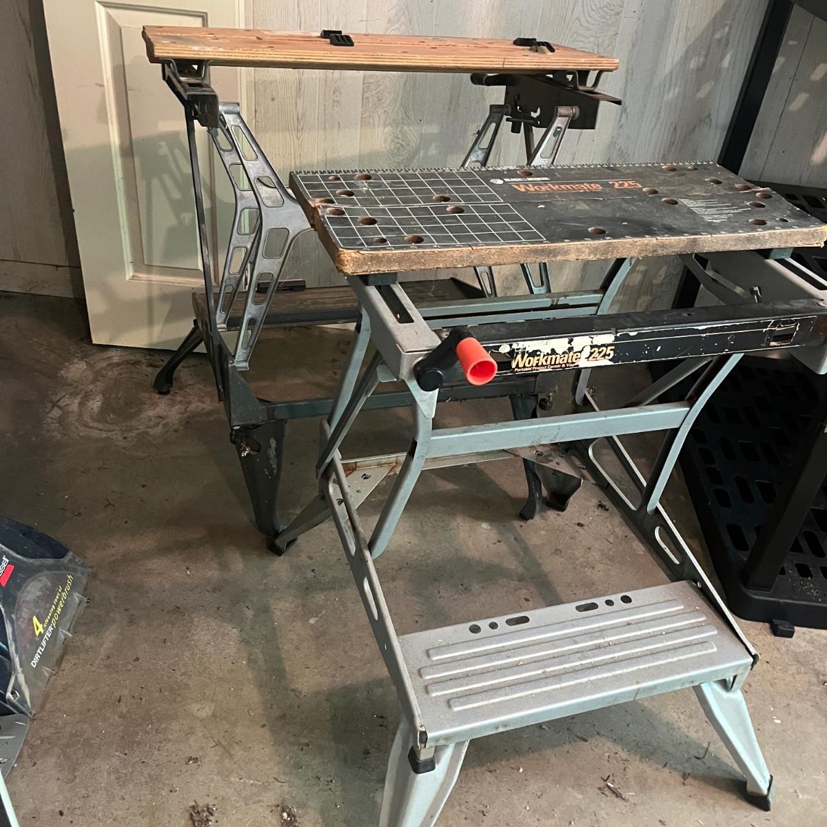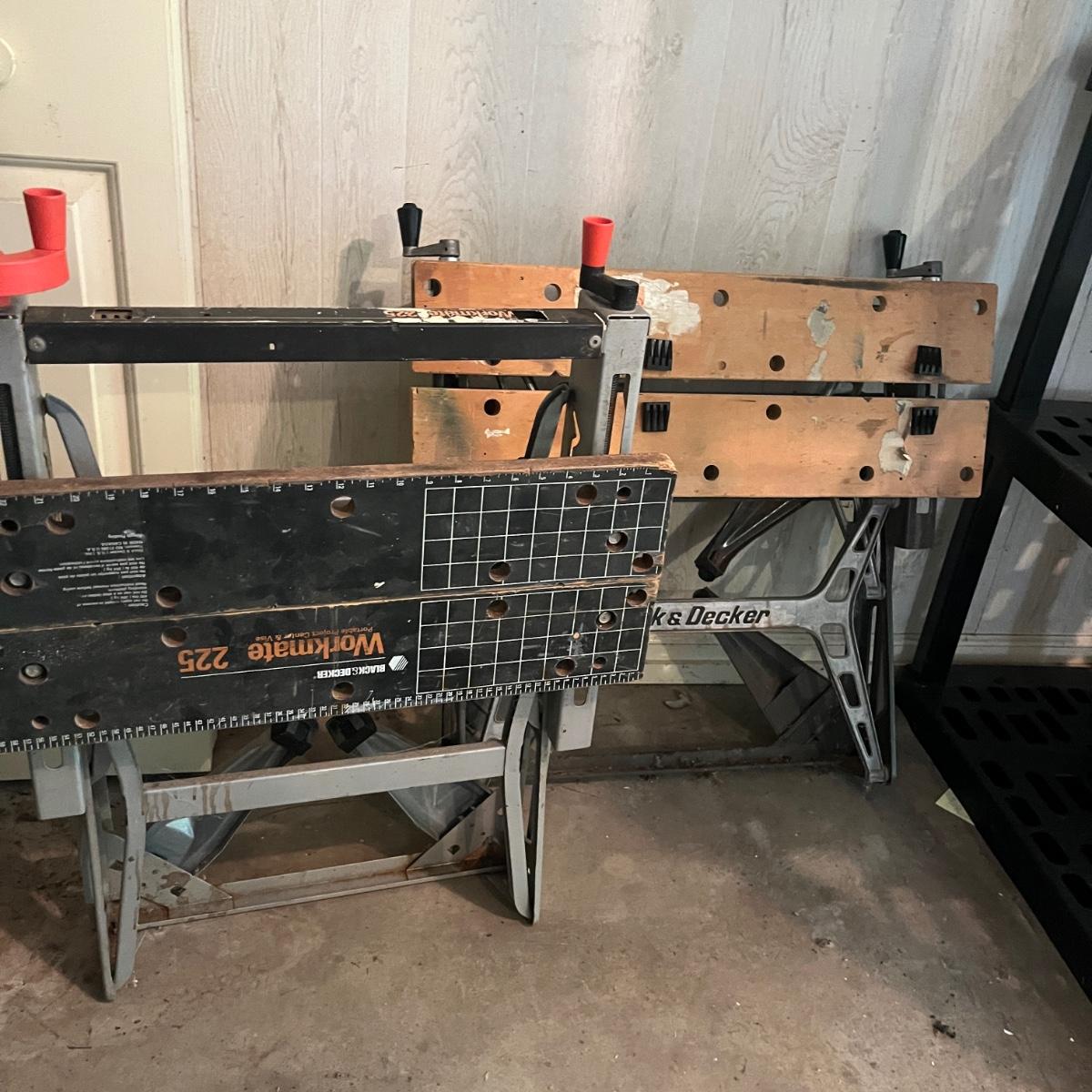 Lot includes two Black & Decker Workmates. Largest Workmate measures 26” x 24” x 33”H when open.