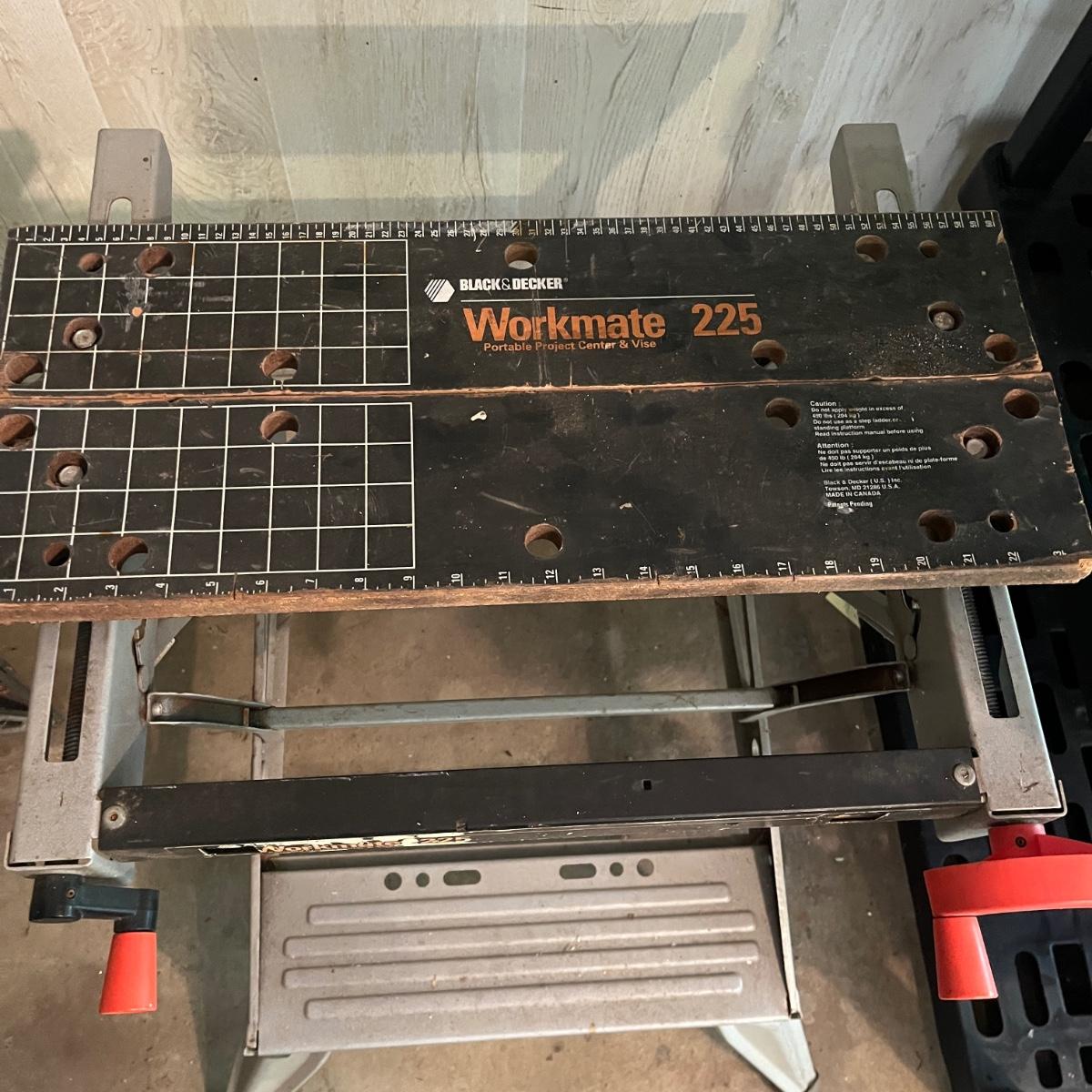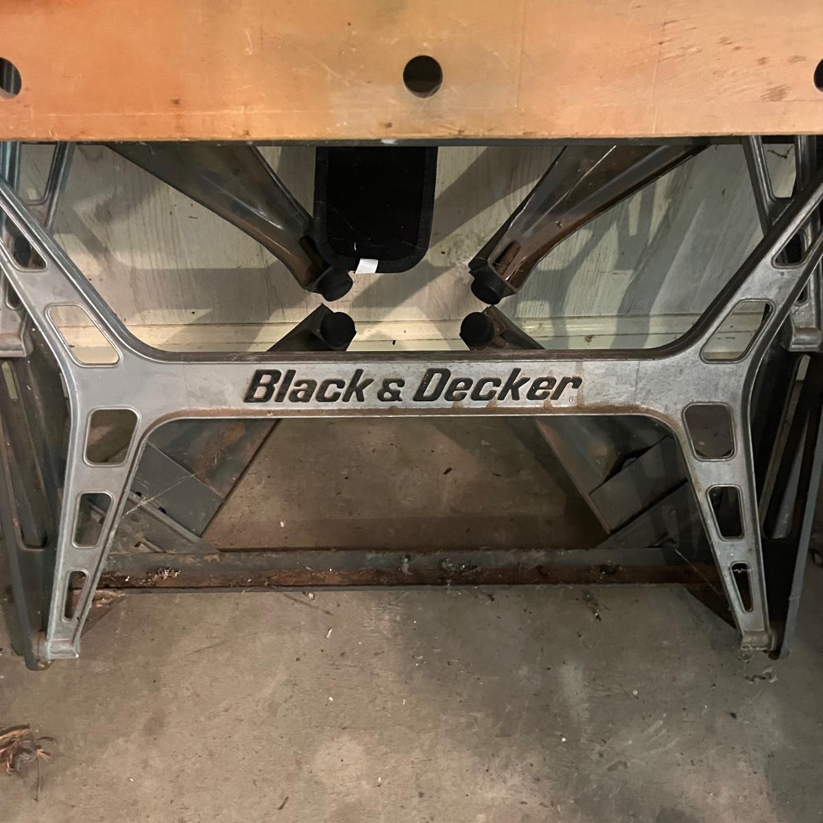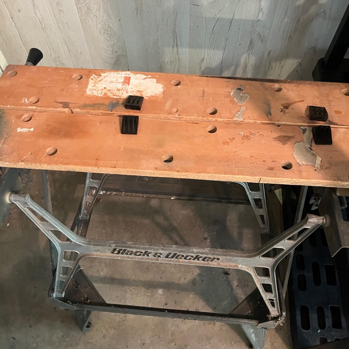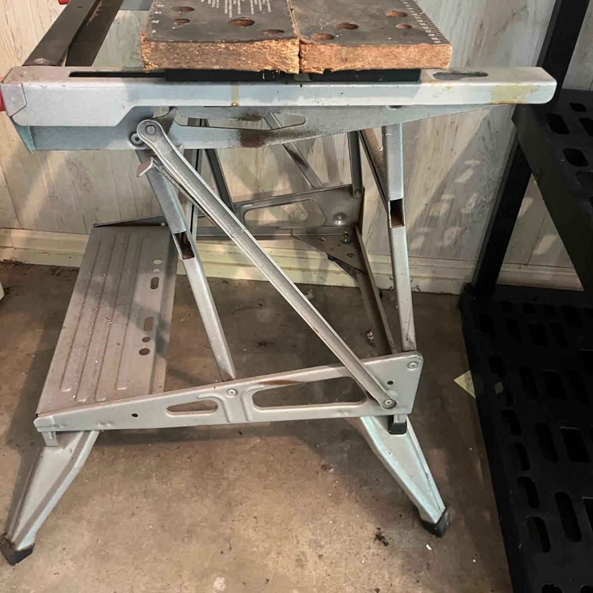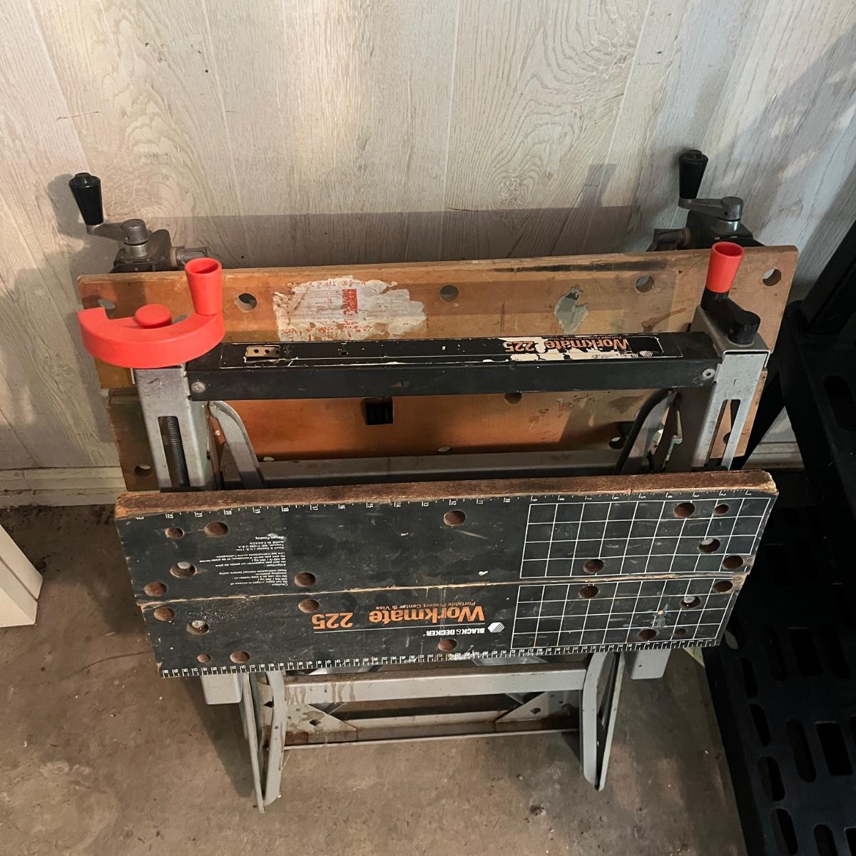 Lot includes two Black & Decker Workmates. Largest Workmate measures 26” x 24” x 33”H when open.