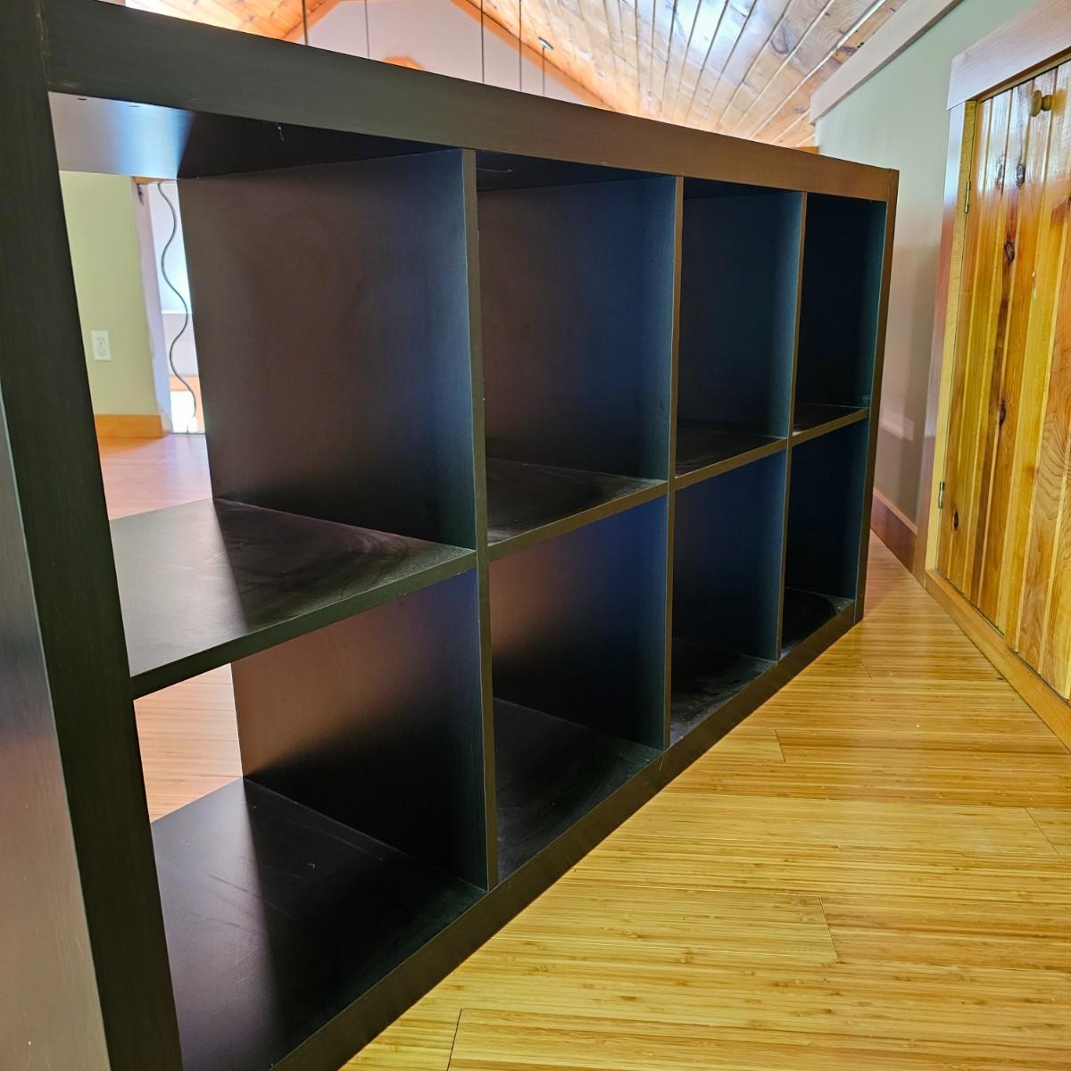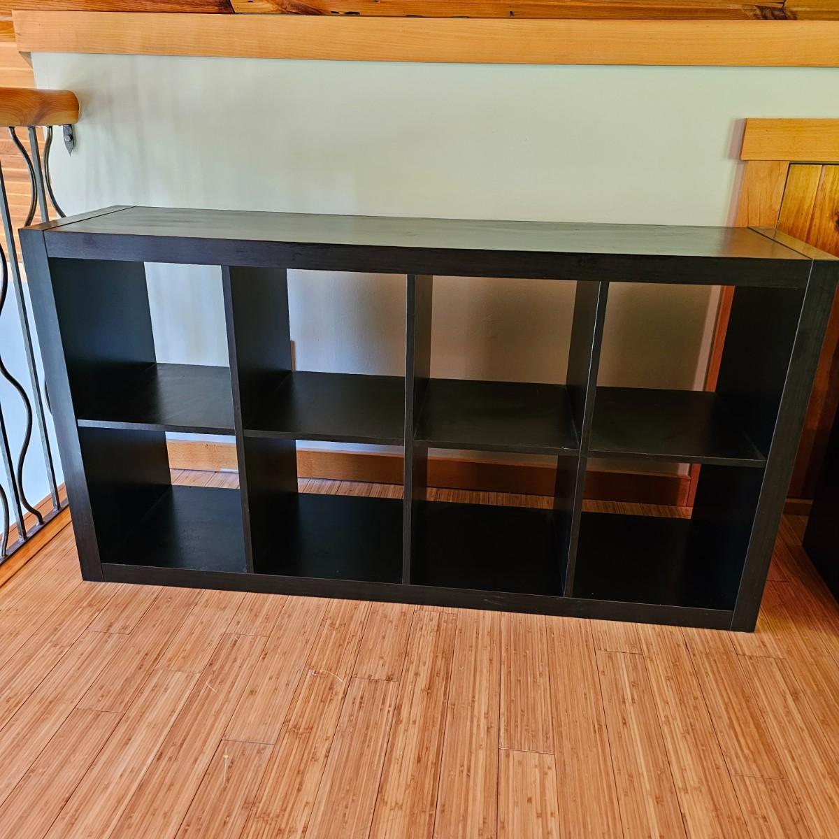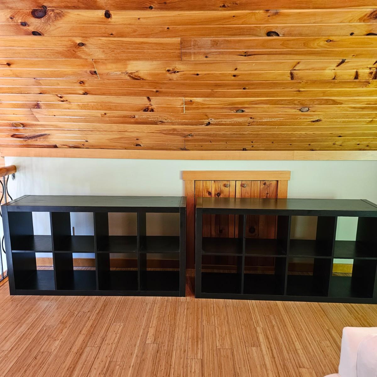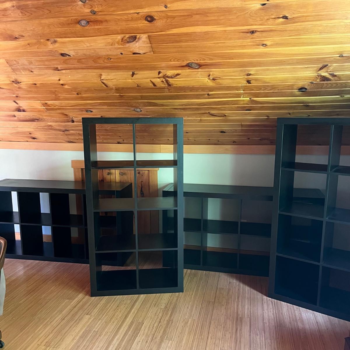 Four Ikea shelf units. Open shelf design, units can be used vertical or horizontal. Shelves measure 59" x 15.5" x 31"H. Or 31” x 15.5” x 59”H. See photos for details.
