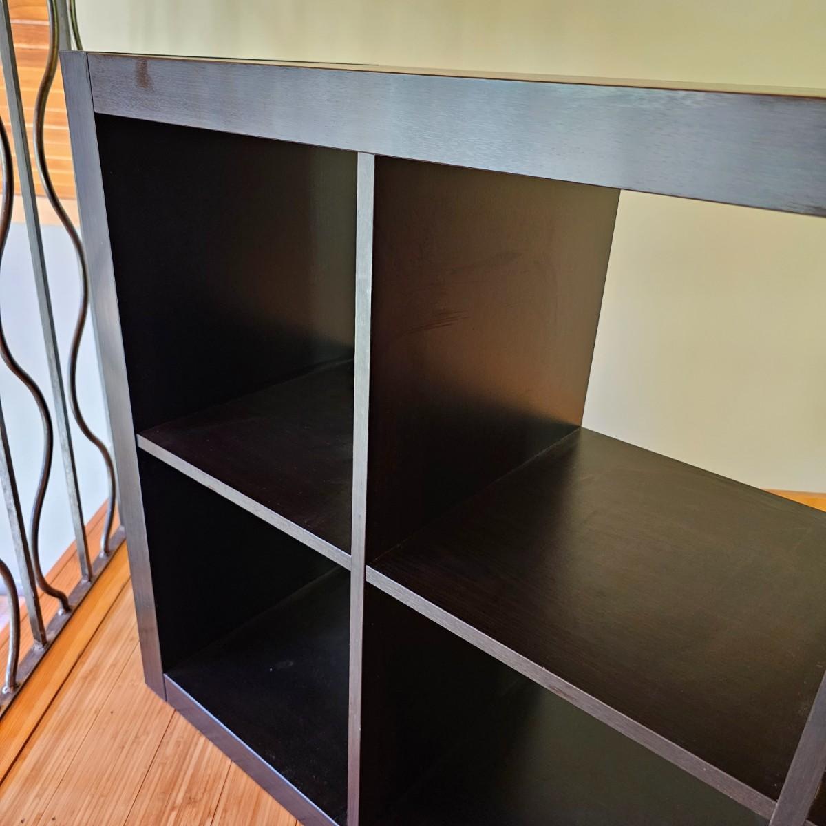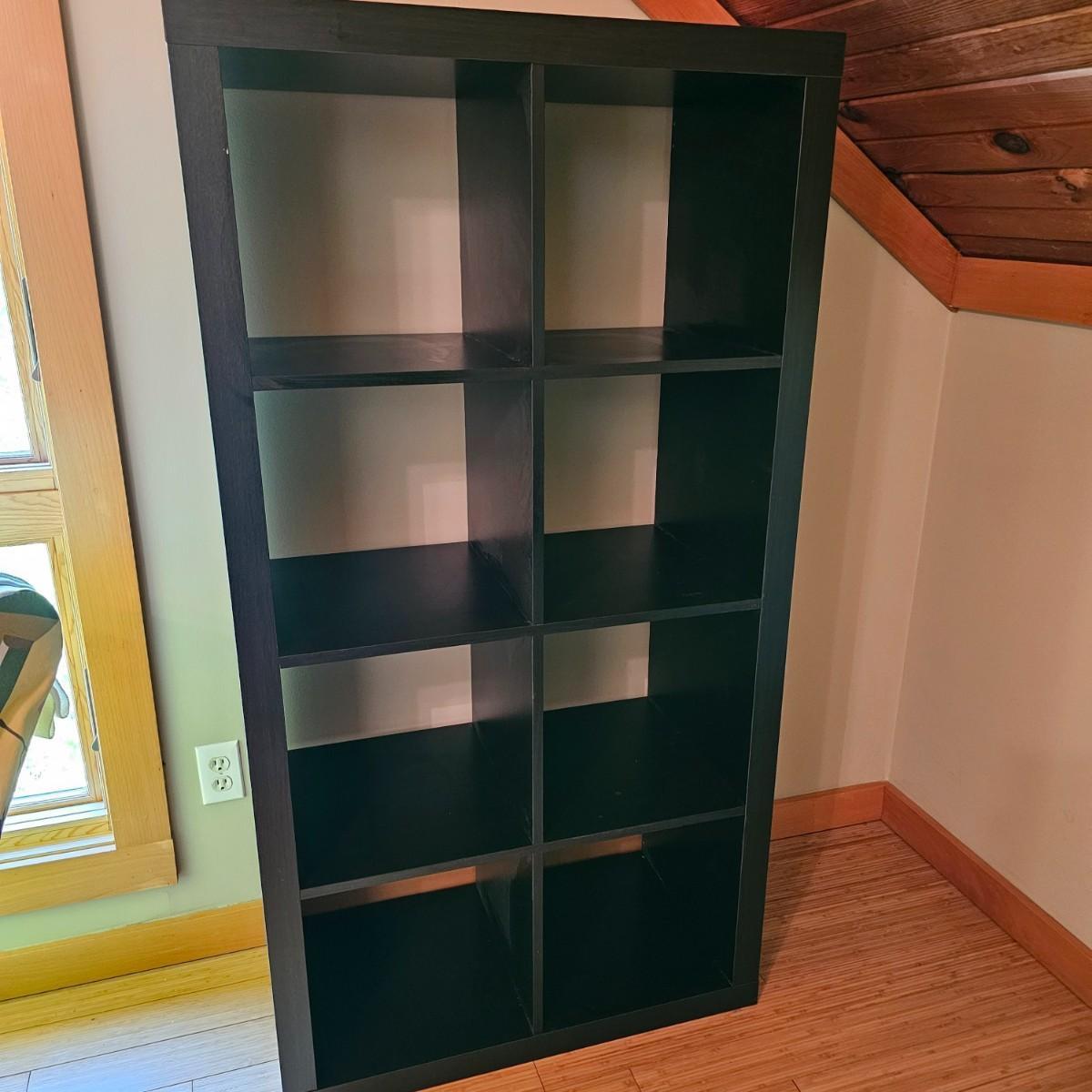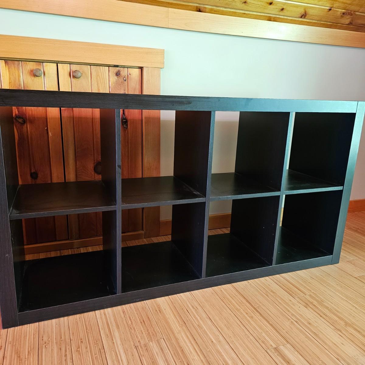 Four Ikea shelf units. Open shelf design, units can be used vertical or horizontal. Shelves measure 59" x 15.5" x 31"H. Or 31” x 15.5” x 59”H. See photos for details.