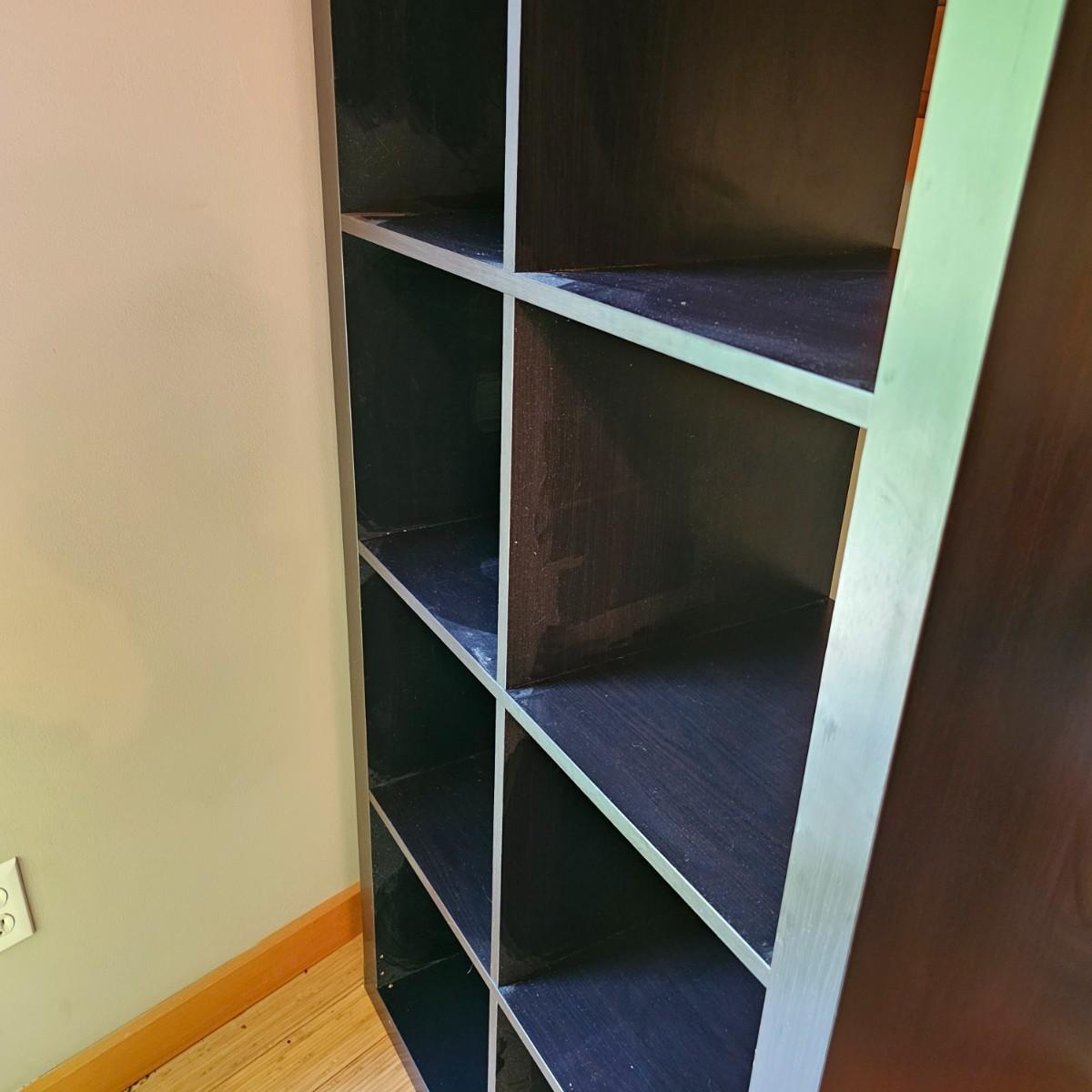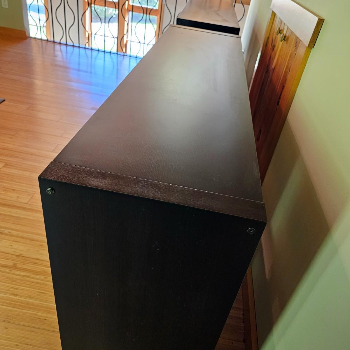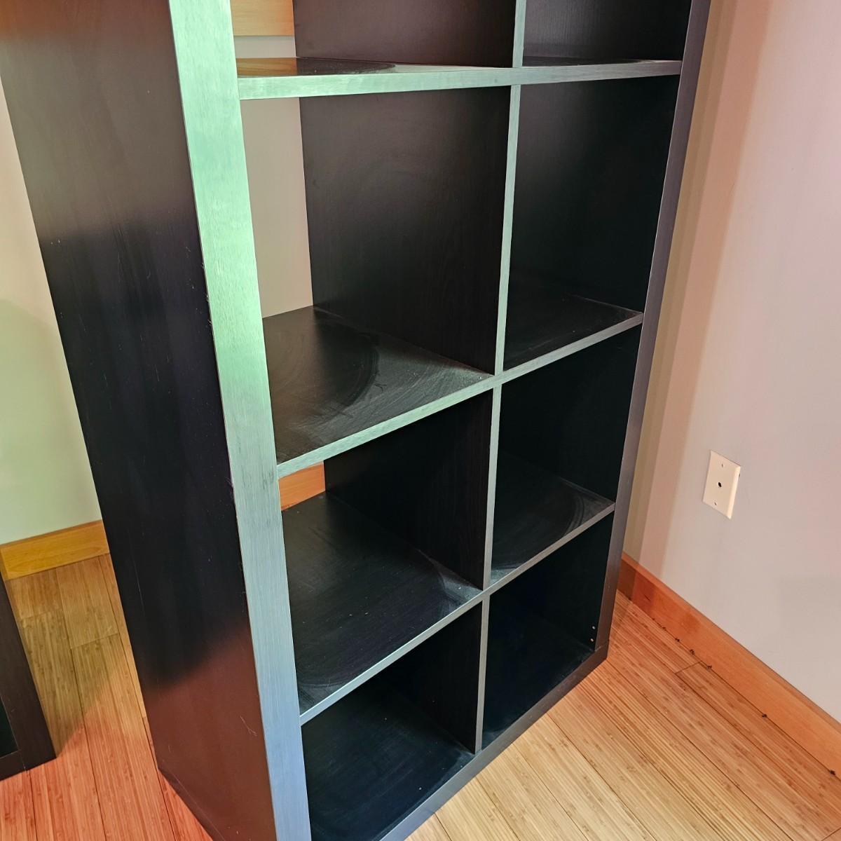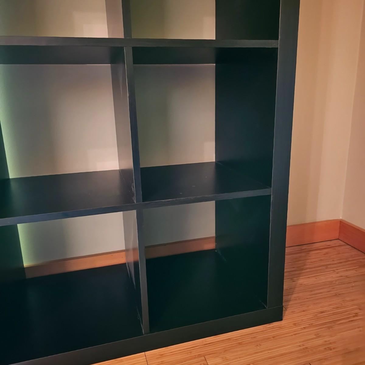 Four Ikea shelf units. Open shelf design, units can be used vertical or horizontal. Shelves measure 59" x 15.5" x 31"H. Or 31” x 15.5” x 59”H. See photos for details.