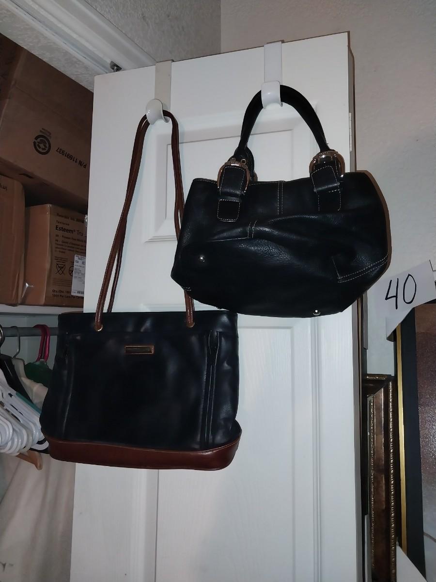 TWO BLACK LEATHER HANDBAGS