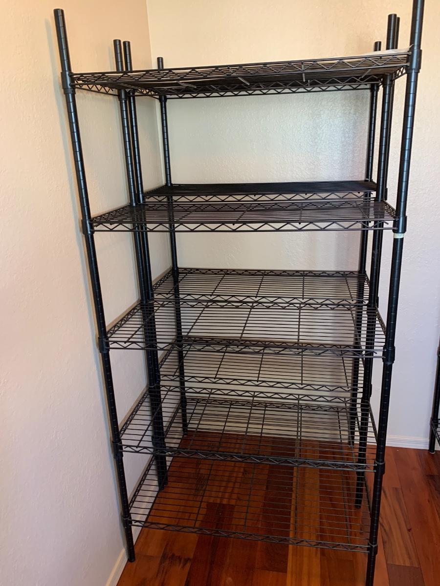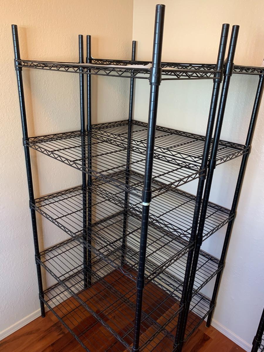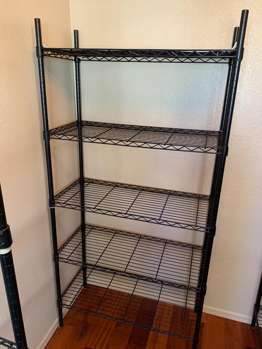 Two Black Wire Metal Shelving Units (35inLx73inTx16inD)
