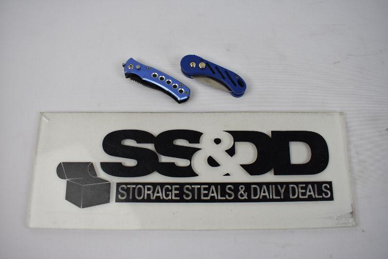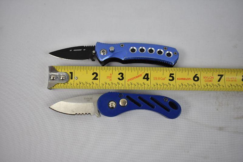Two Blue Stainless Steel Switch Blades - Both About 5"