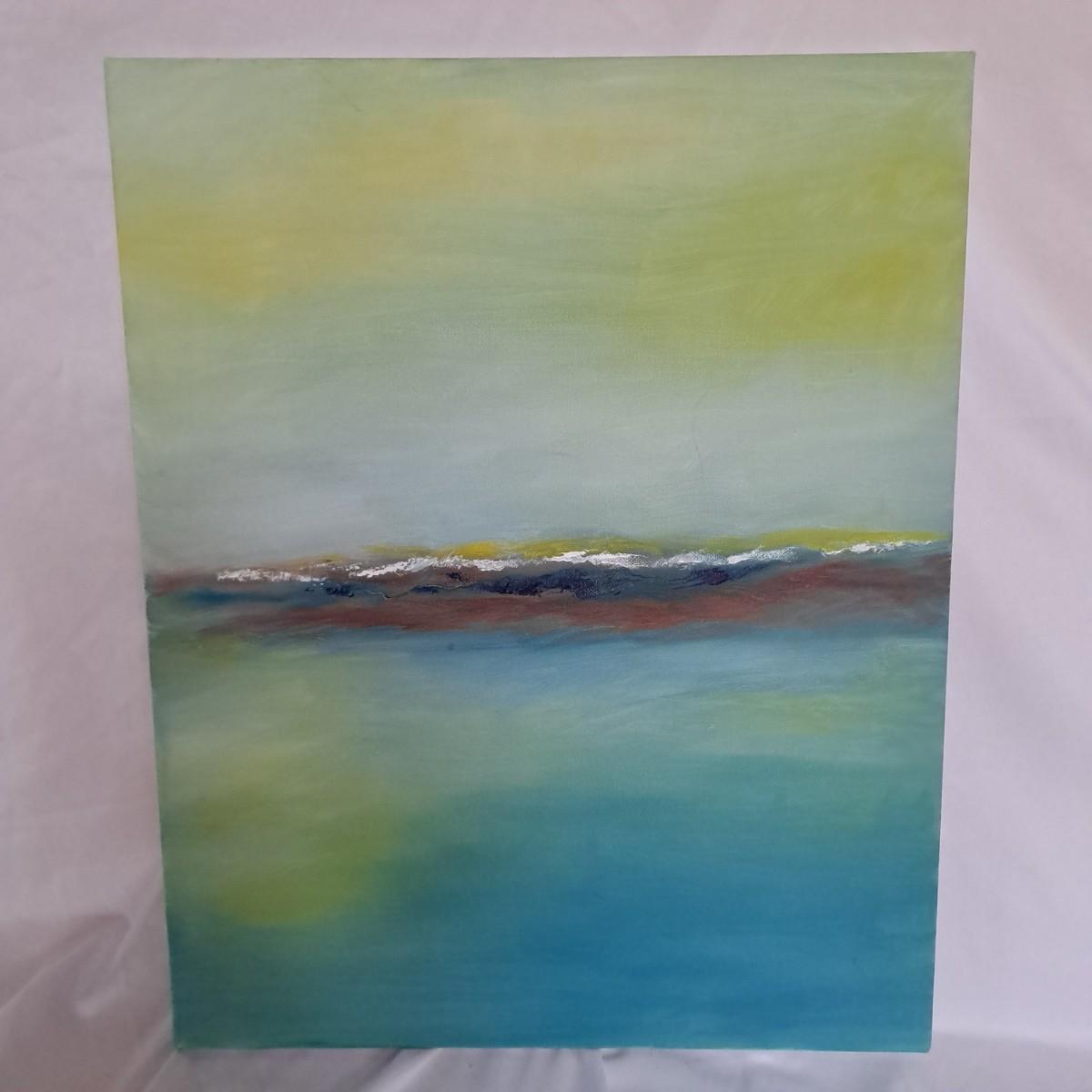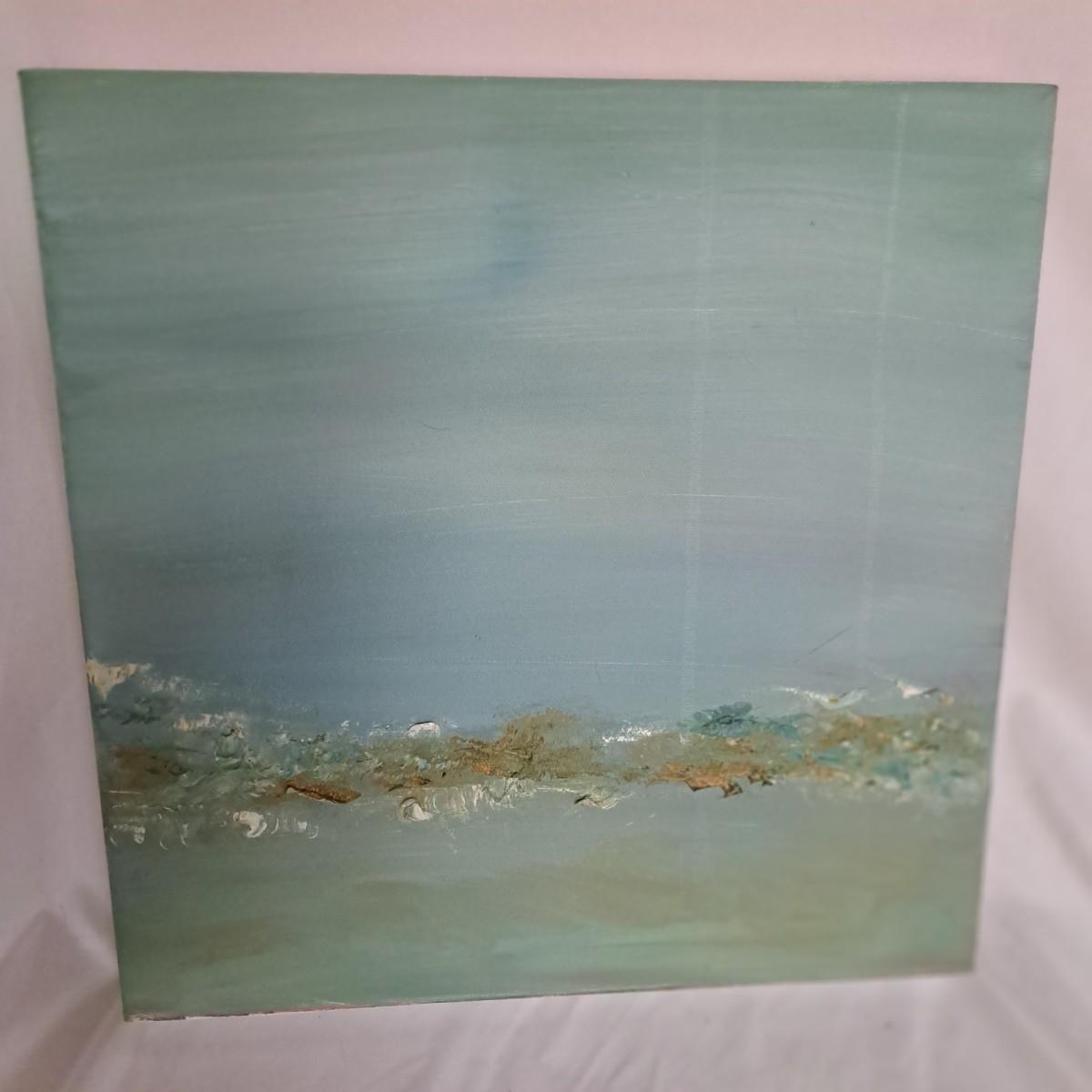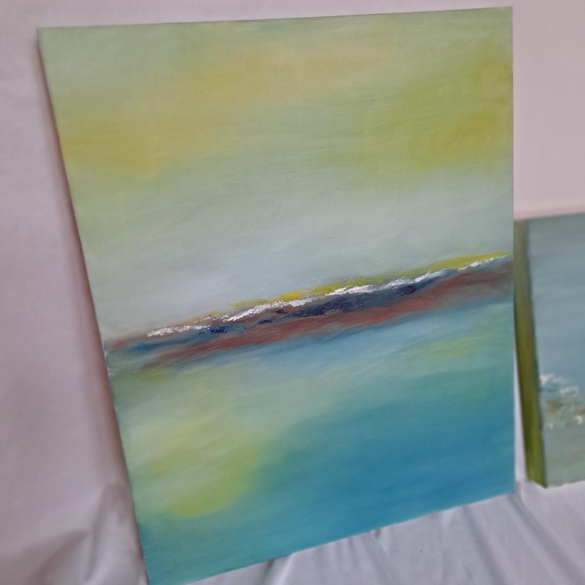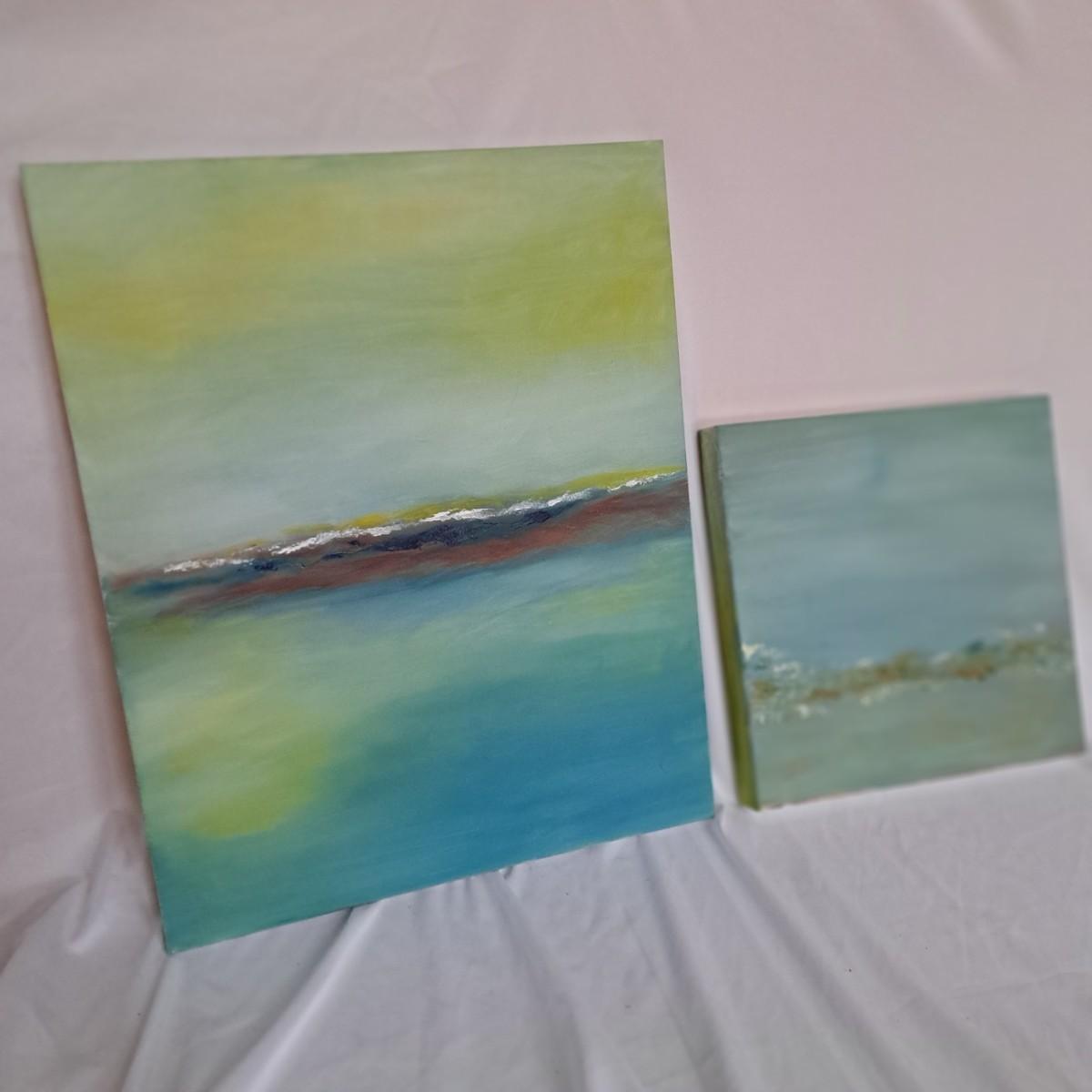 Two Blue/Green Abstract Paintings on Canvas (P-SD)