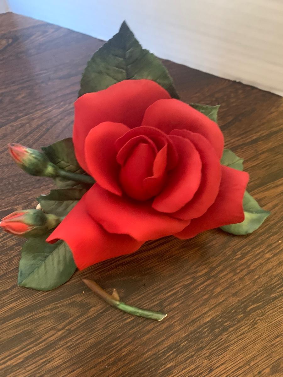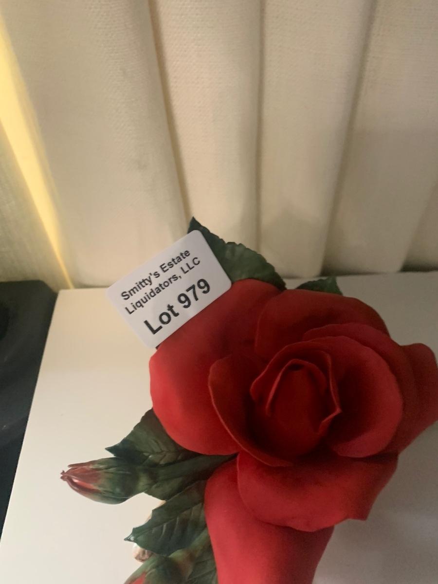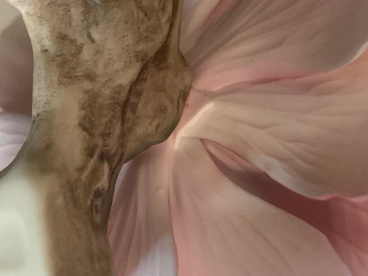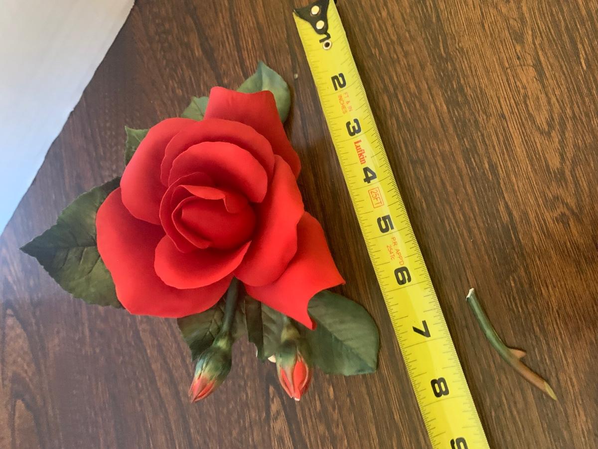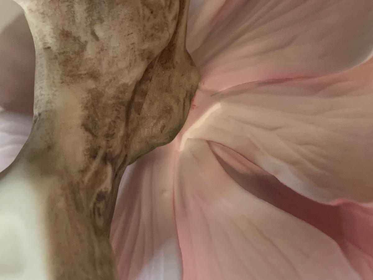 See ALL PHOTOS at the pink one has two petals here but cleanly broken off - rose has stem also with clean break. Since these are extremely rare we figure someone may want to have them repaired since all the pieces are here. Buying as is, as found.