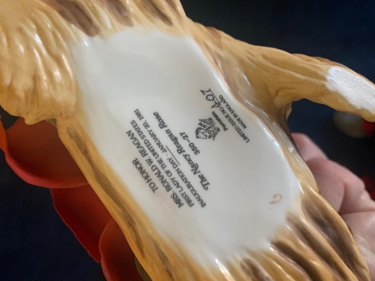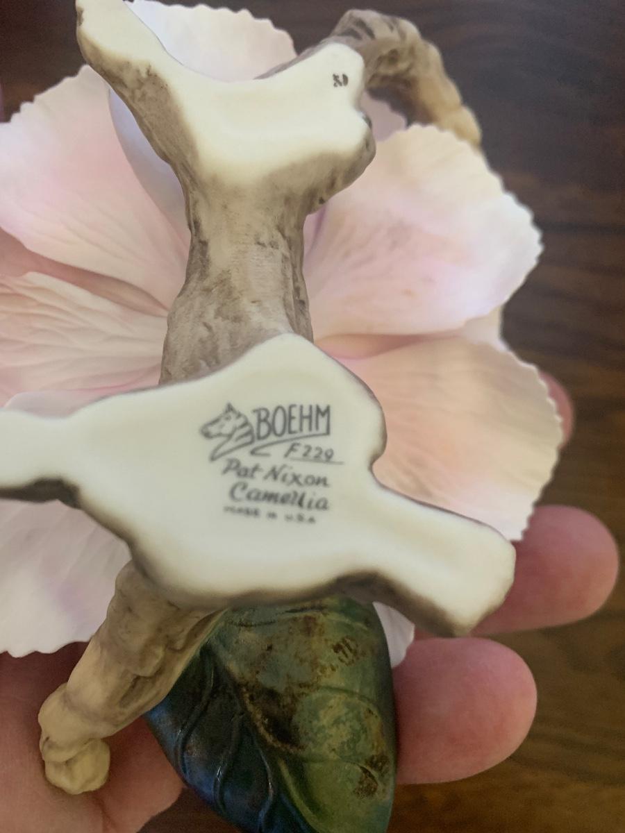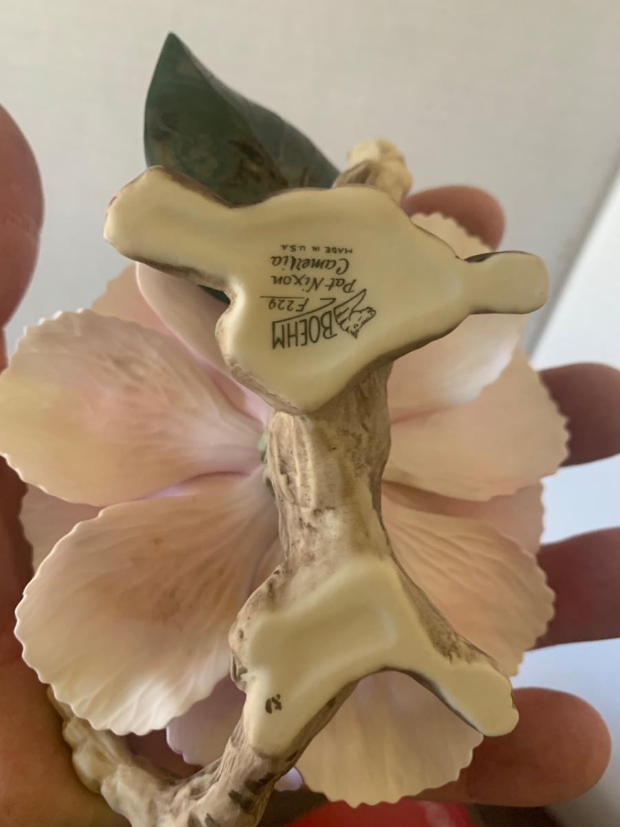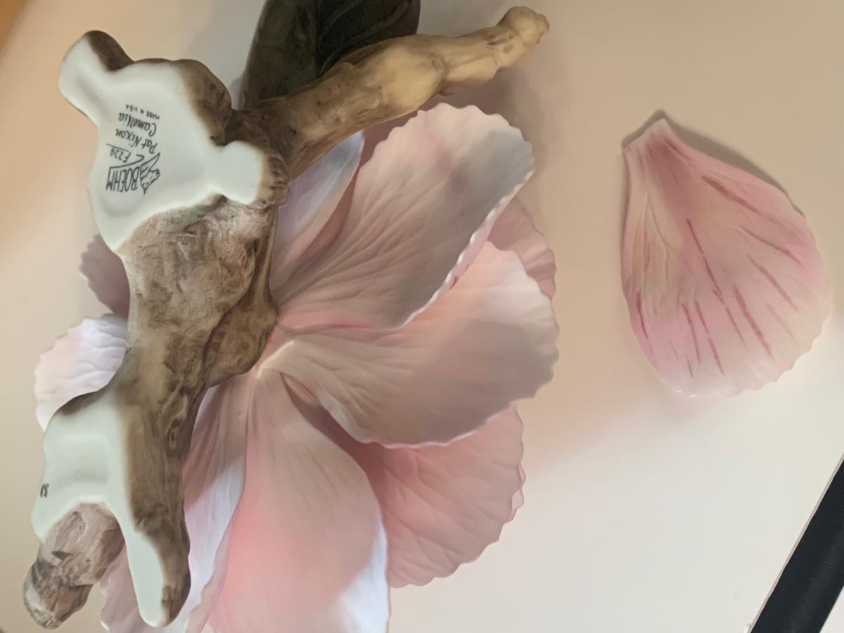 TWO Boehm Porcelain Flowers Pat Nixon Camellia & Nancy Reagan Rose - Both Damaged