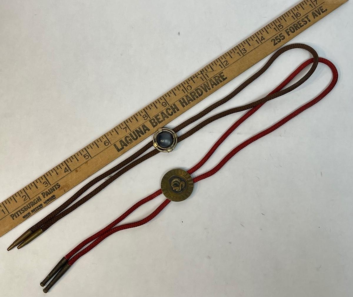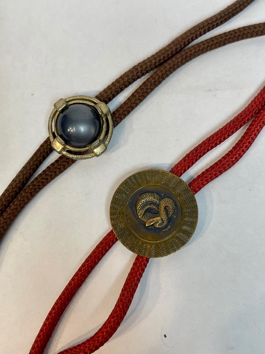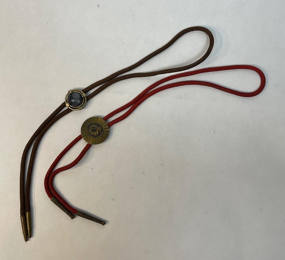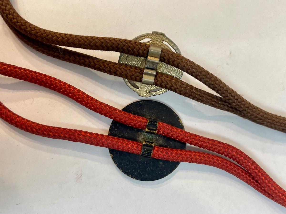 Pair of Retro Western Wear Bolo Ties. Corded bolo ties with metal tips.