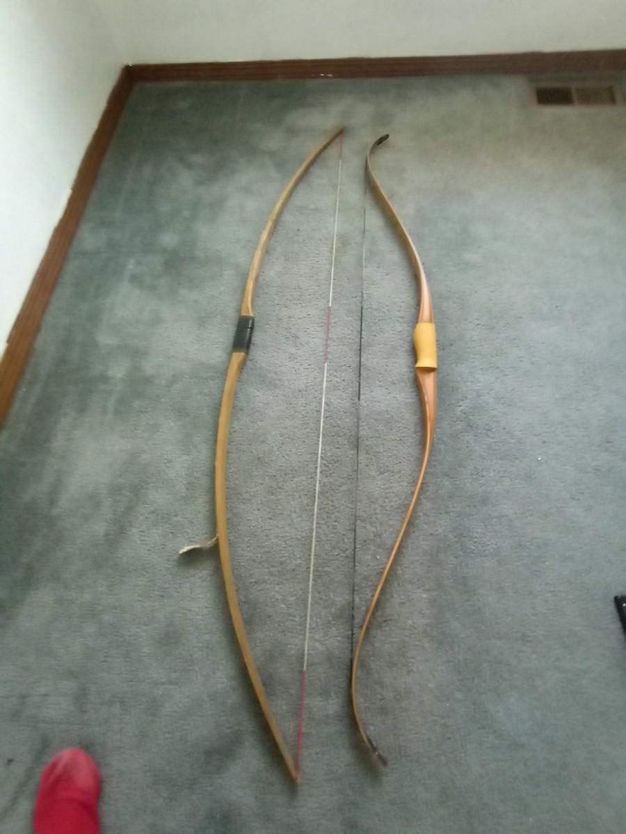 TWO BOWS MADE IN USA ONE IS IN NEED OF SOME TLC APPROX. 62"