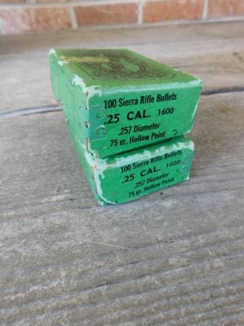 Two Boxes of .25 Cal Sierra .257 dia. Hollow Pt. 75gr. Rifle Reload Bullets