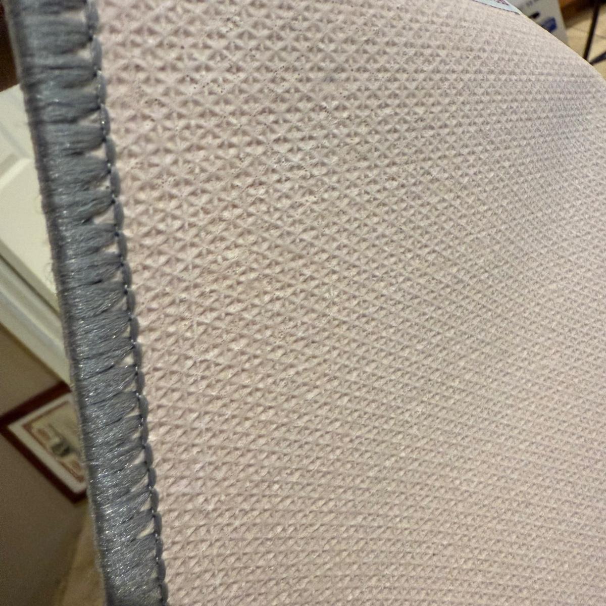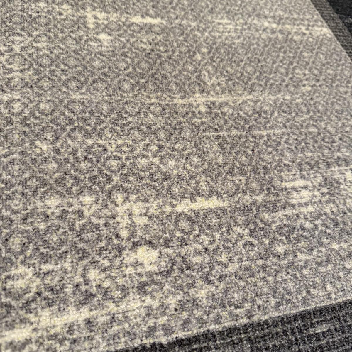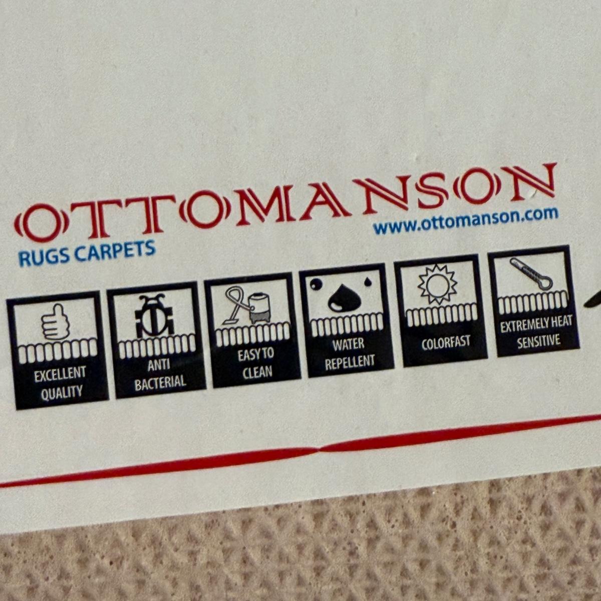 Two Ottomanson Homeline Collection runner rugs, brand new in packaging. We opened one to show the design and get the measurement. They appear to be identical. They are light gray with white and navy blue and measure 31” x 118” (2’7” x 9’10”). They have a rubber backing.