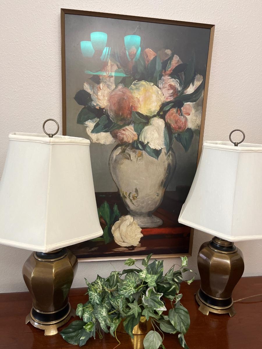 See pics. Quality lamps. Lamps 26 inch high to finial. 21x31.5” picture