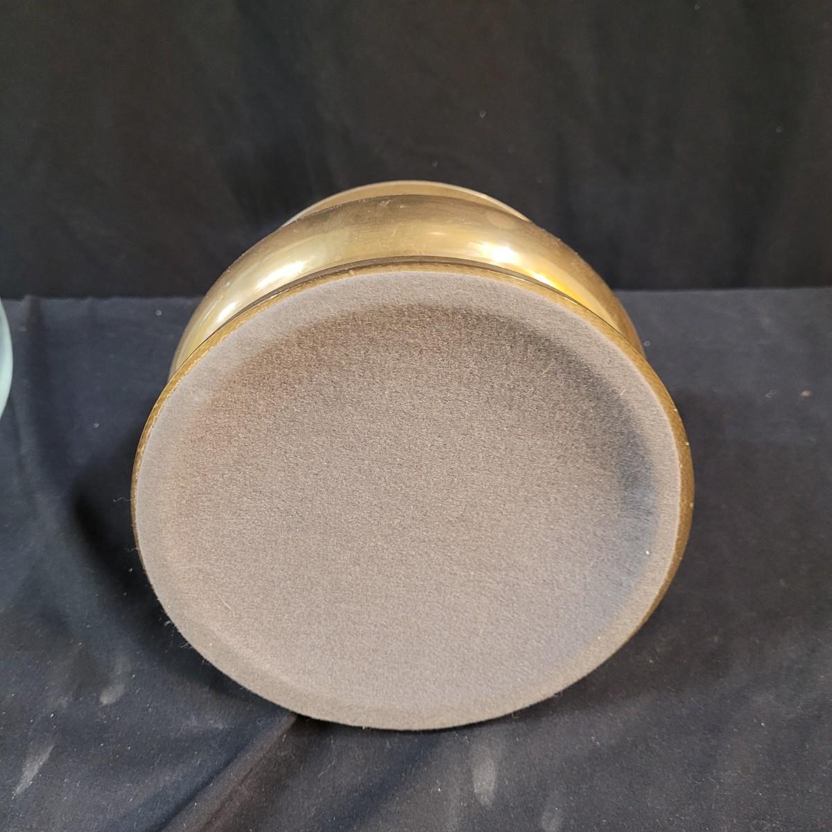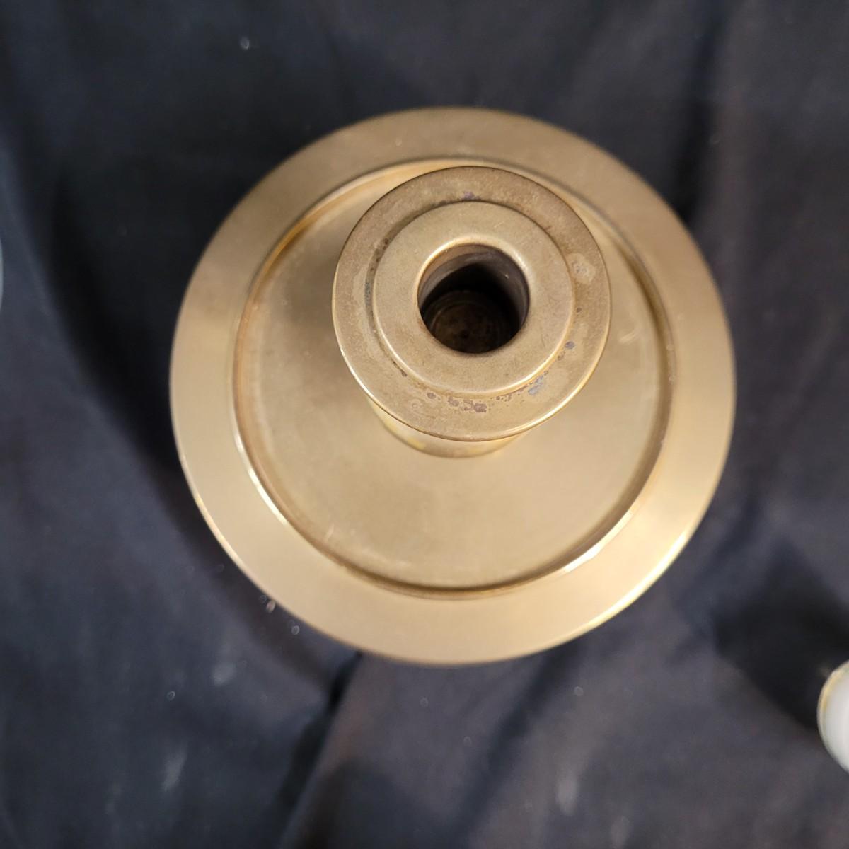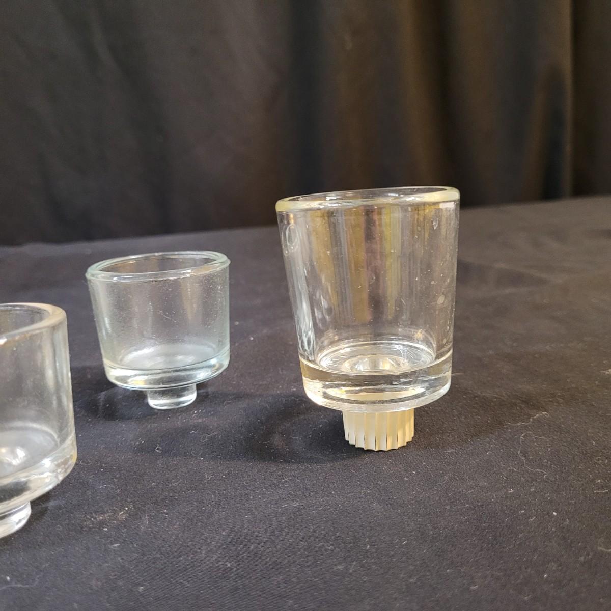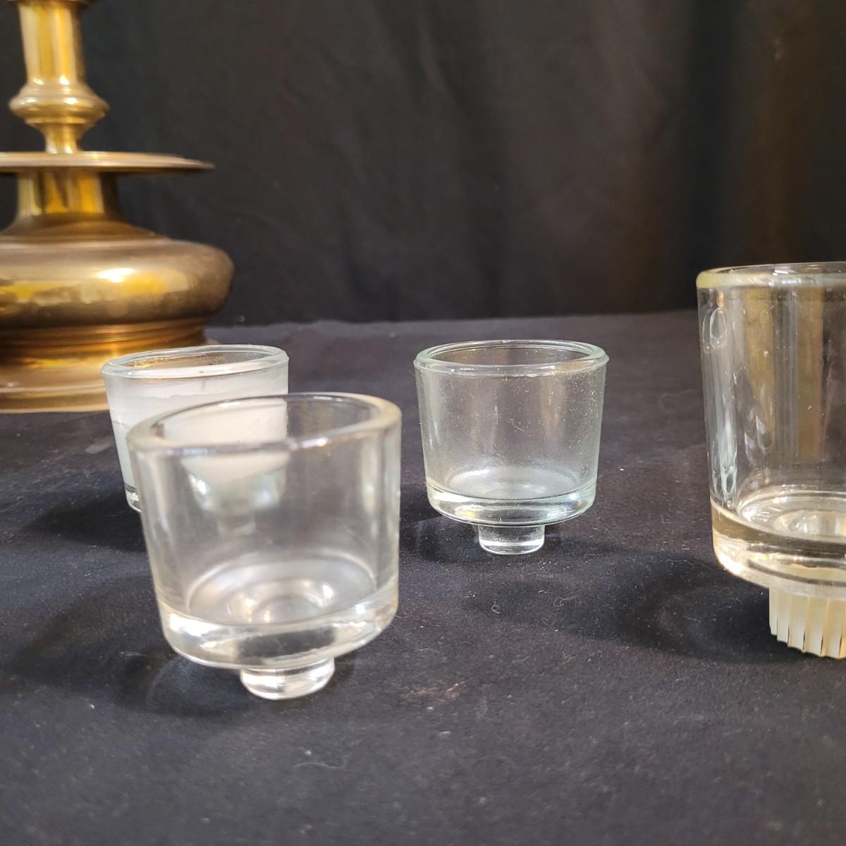 Sturdy, heavy brass votive candle holders with removable inserts. Each votive is same base size and all fit. Note that one votive is taller than the others. Bases measure approximately 7"DIA x9.5"H, globe 8"DIA at top x12"H. Shipping available.