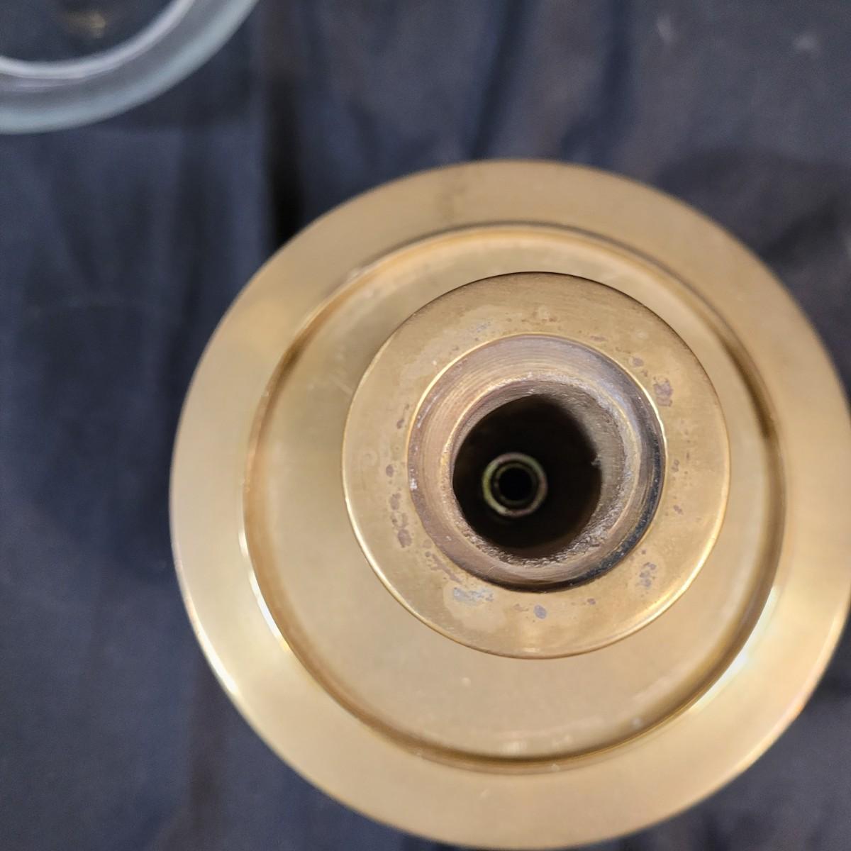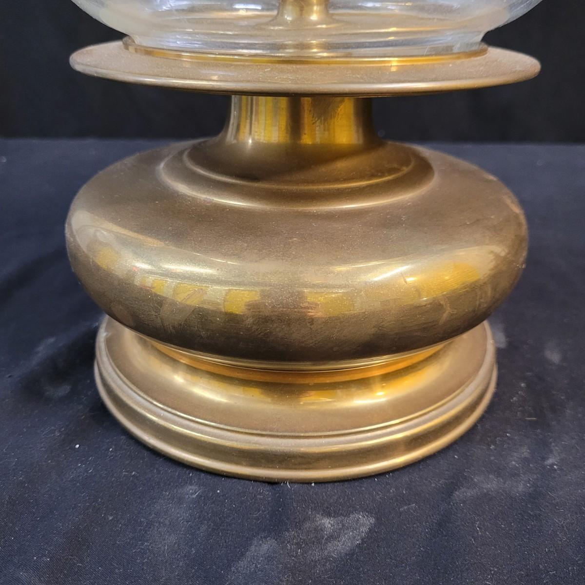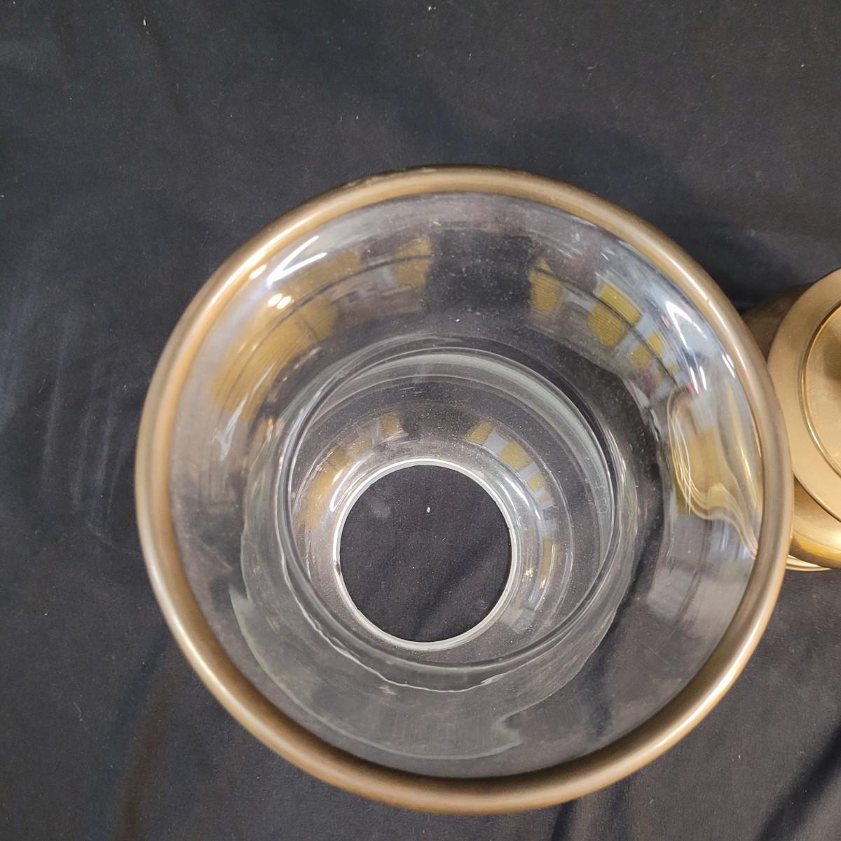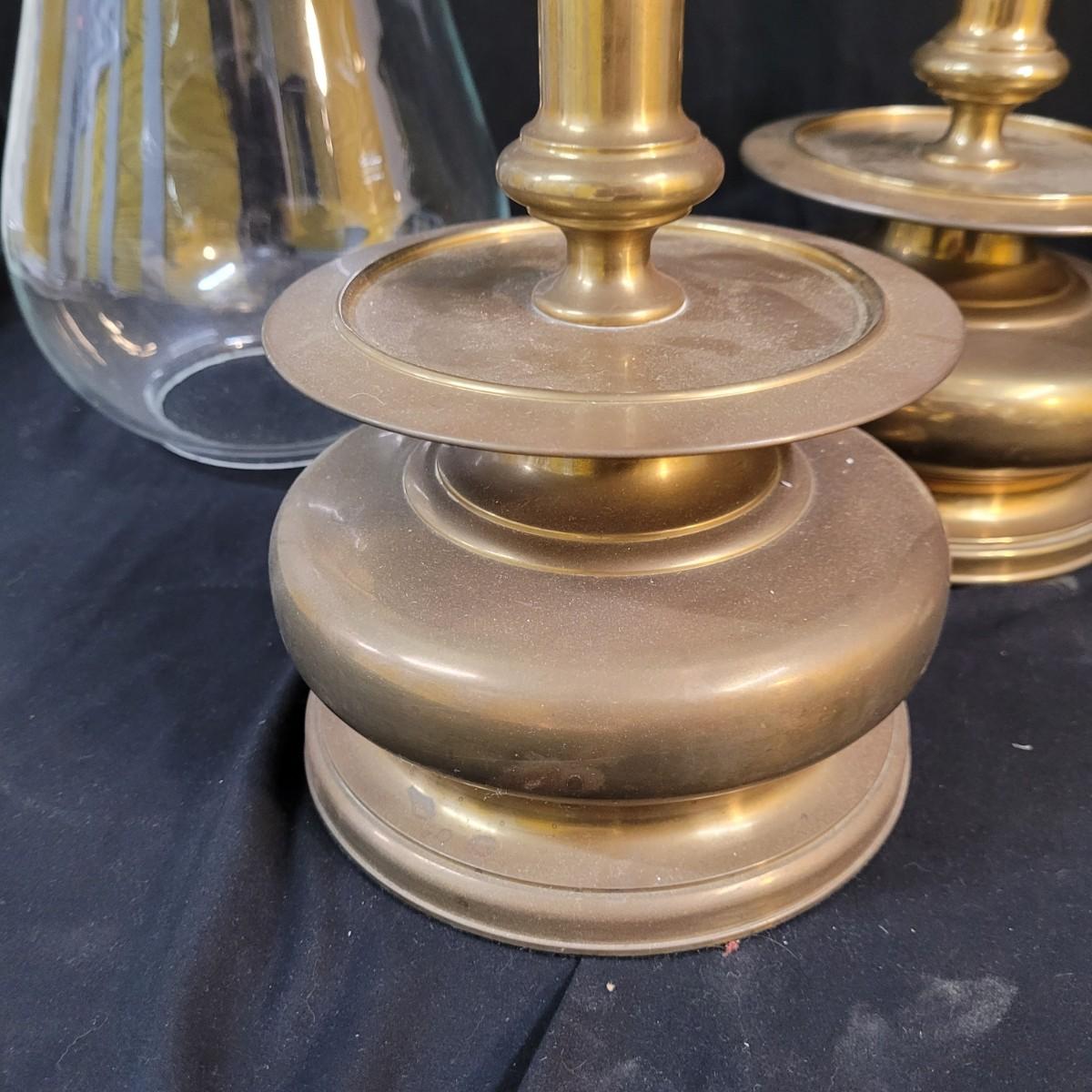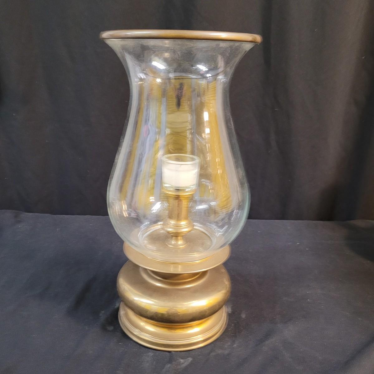 Two Brass Votive Candle Holders with One Glass Hurricane Globe (C-D-CE)