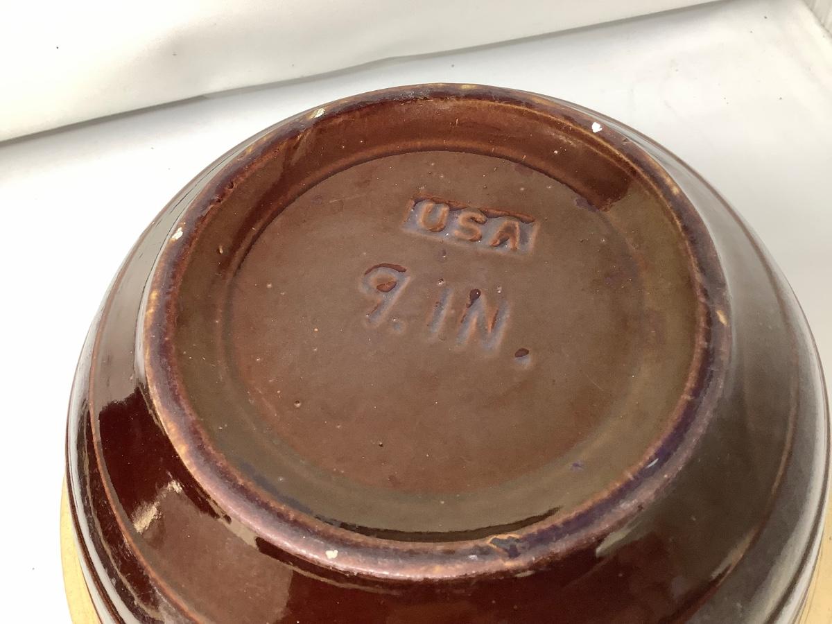You get two pottery 9” mixing bowl. One has chip see pictures.