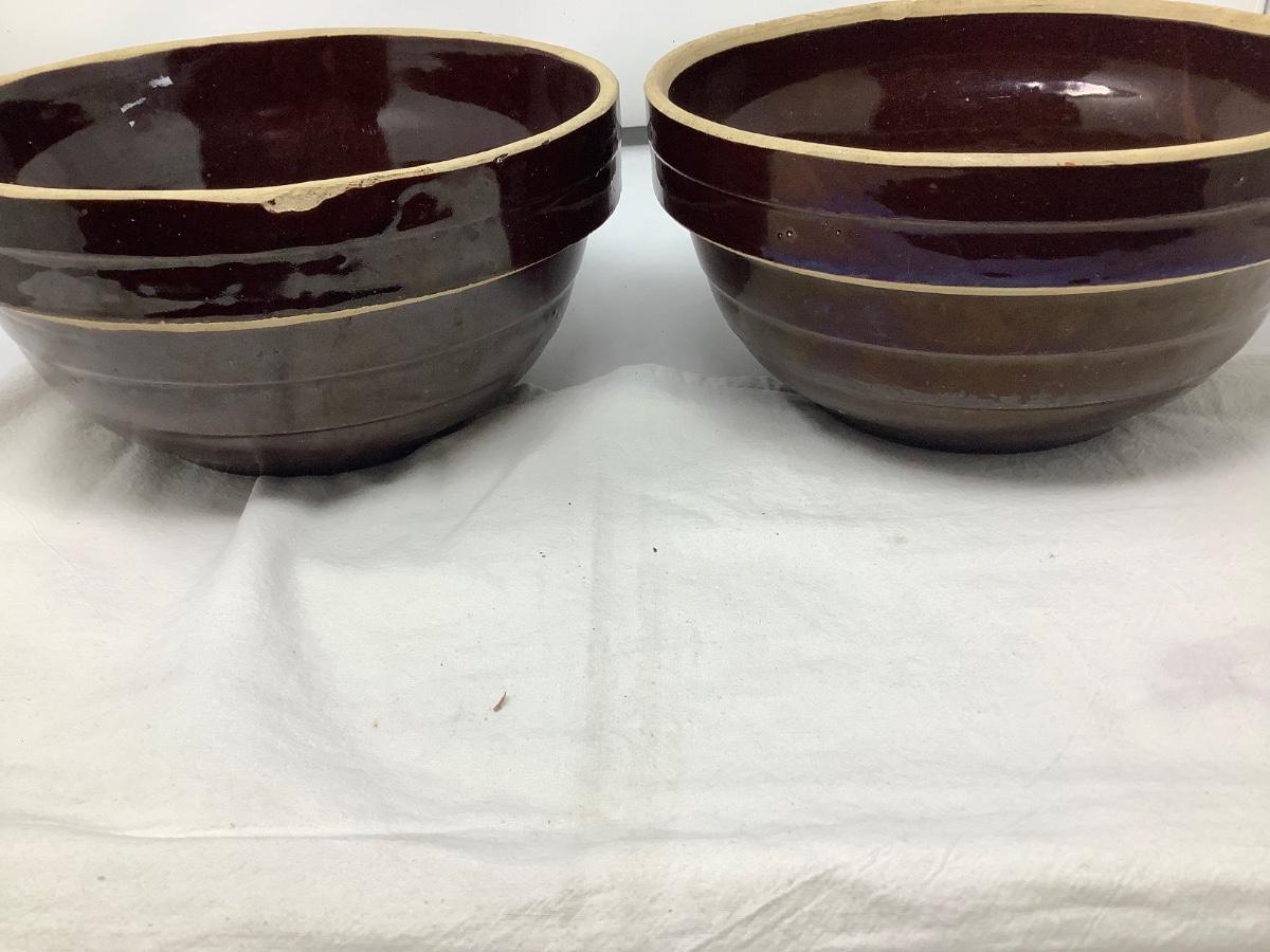 Two Brown Pottery Mixing Bowls Lot 1